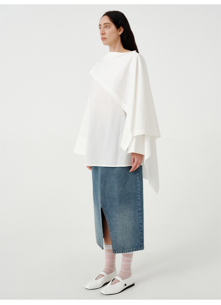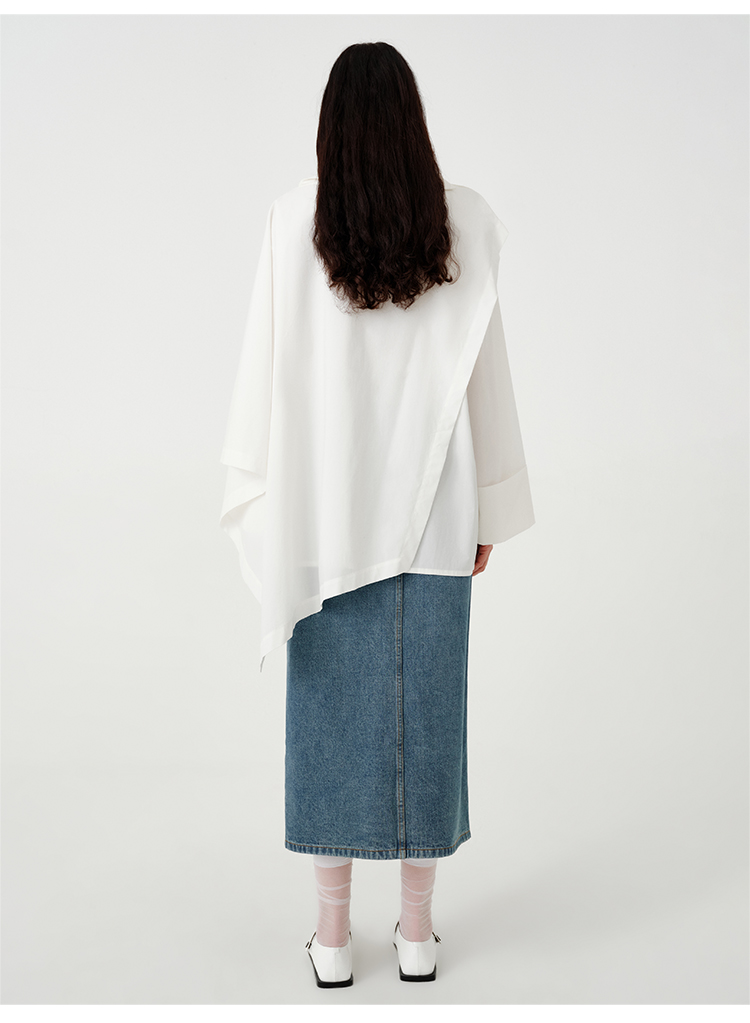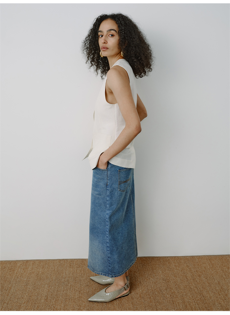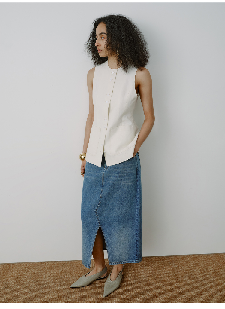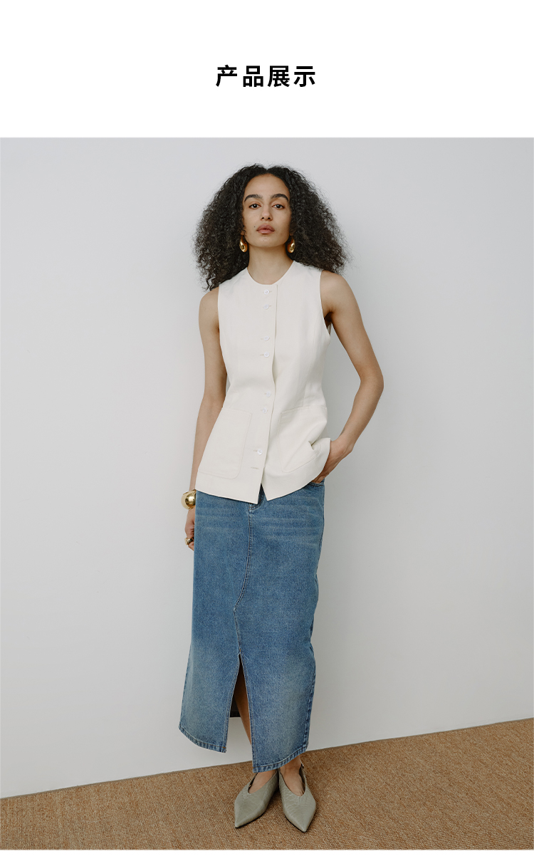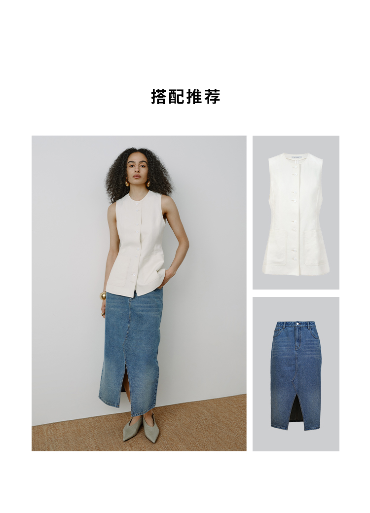 HIDEMI 水洗做旧猫须牛仔蓝开衩设计感H型半身裙