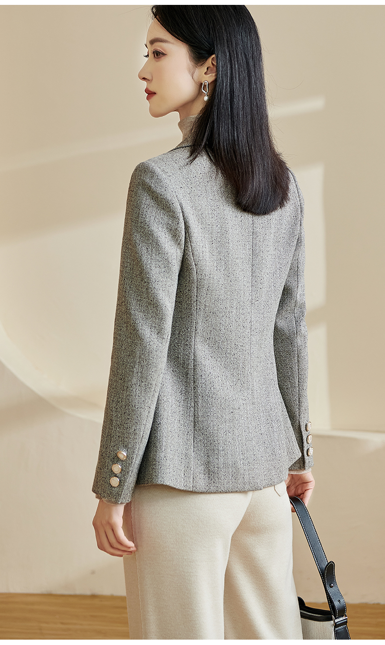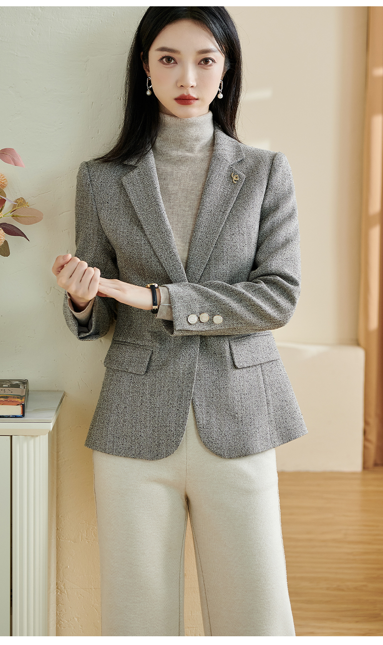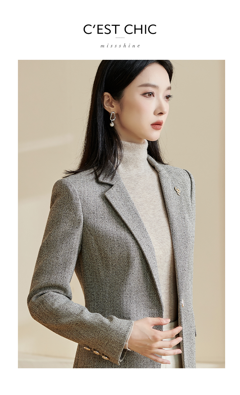 【S/L/XL】米思阳2024秋季新款通勤休闲西装肌理感收腰一粒扣灰色外套女3315
