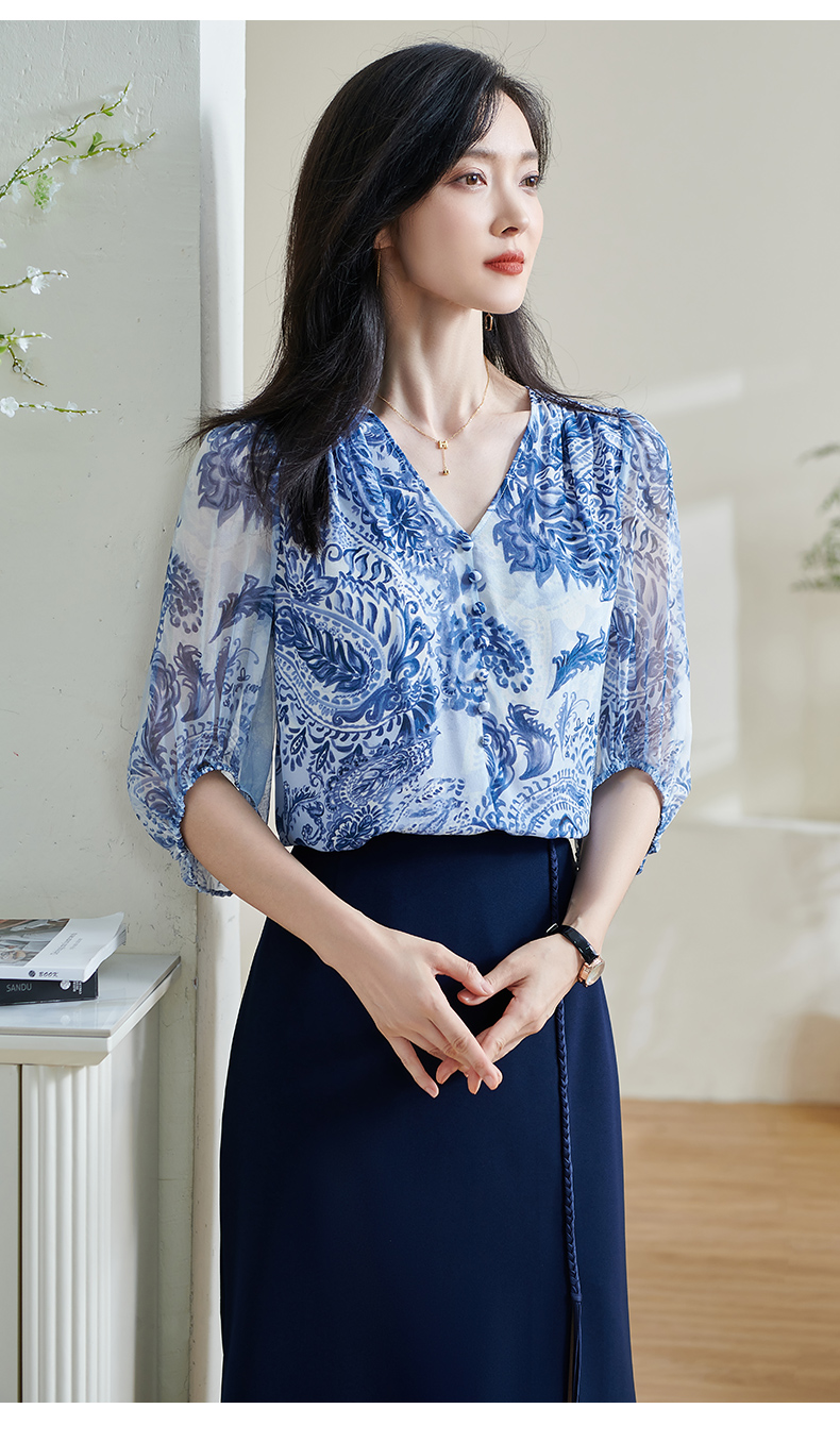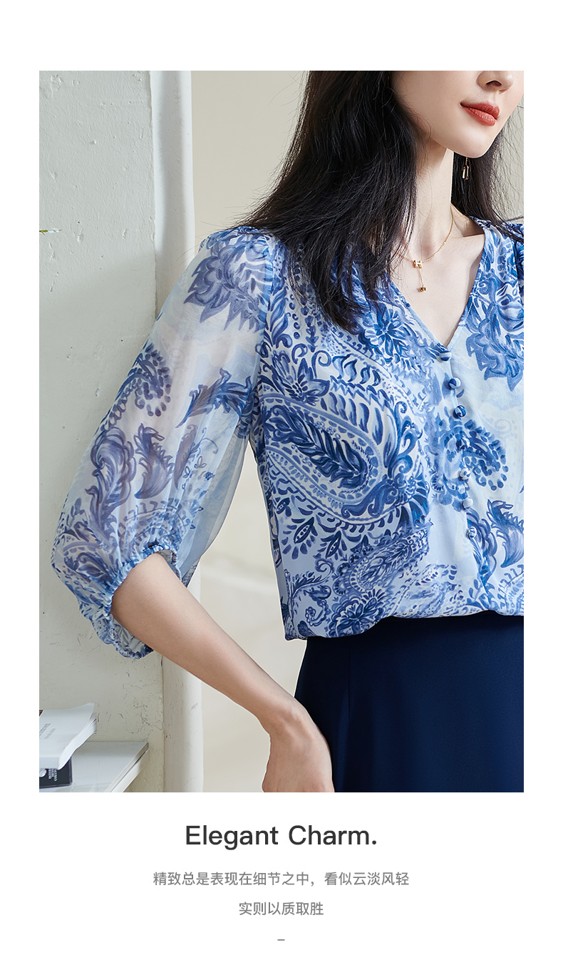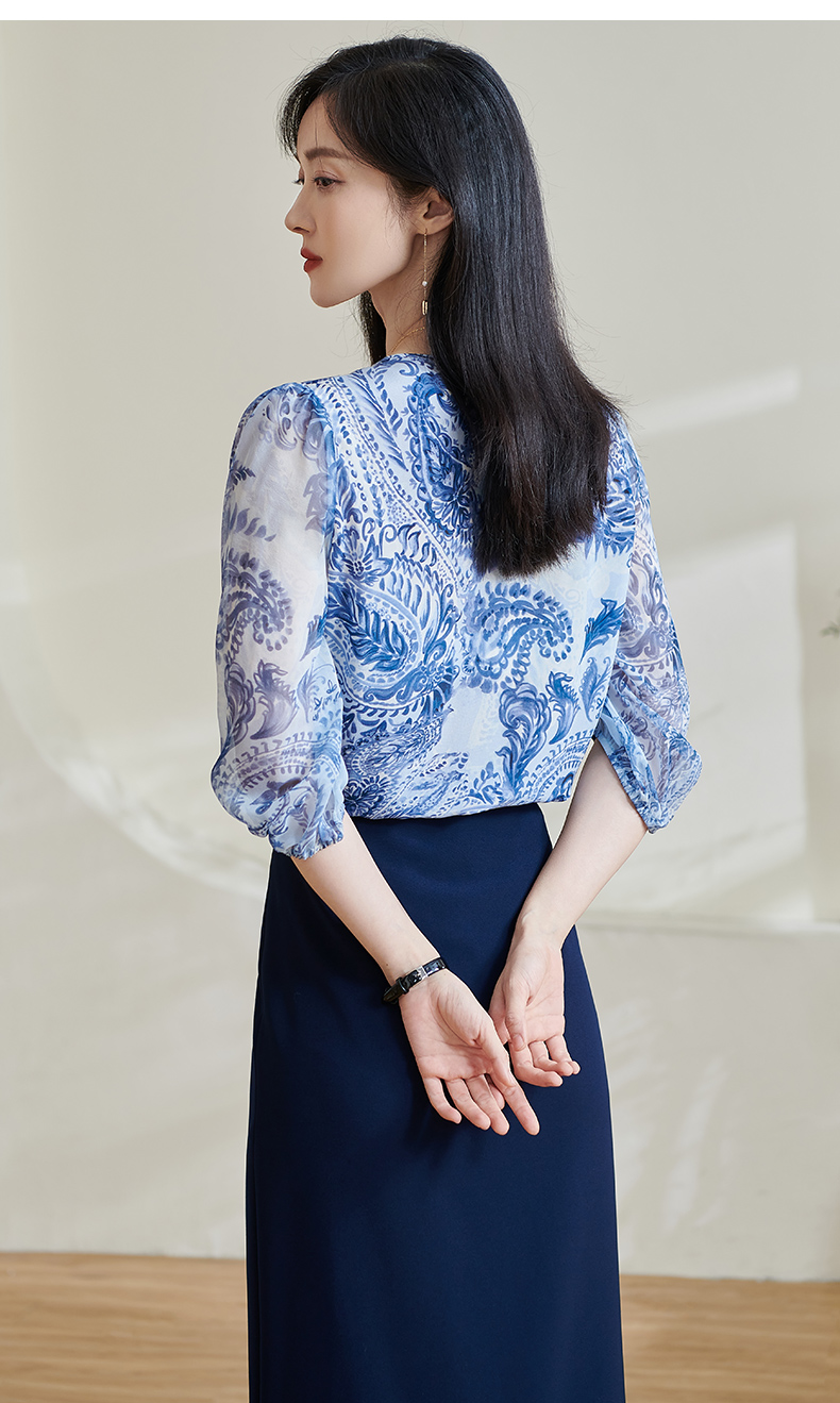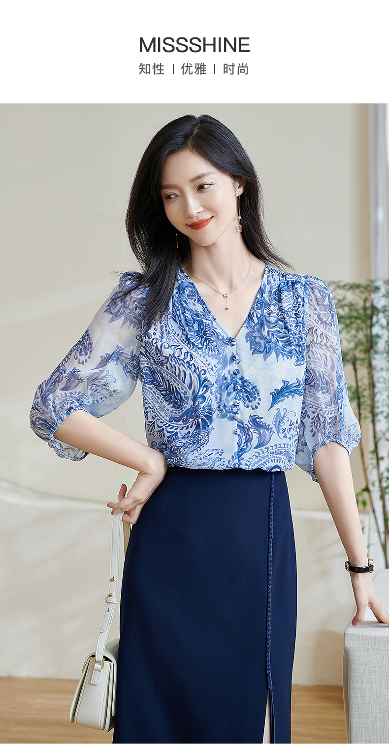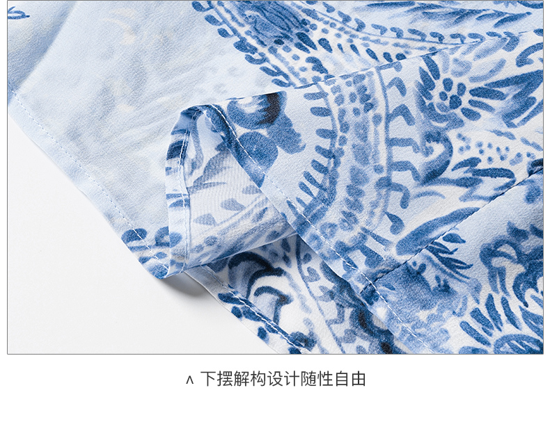 青瓷真丝衬衫 5A桑蚕丝双绉面料 柔润透气 上身若无物 米思阳2026春季新款设计感独特衬衫印花上衣女0803