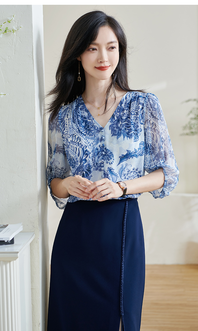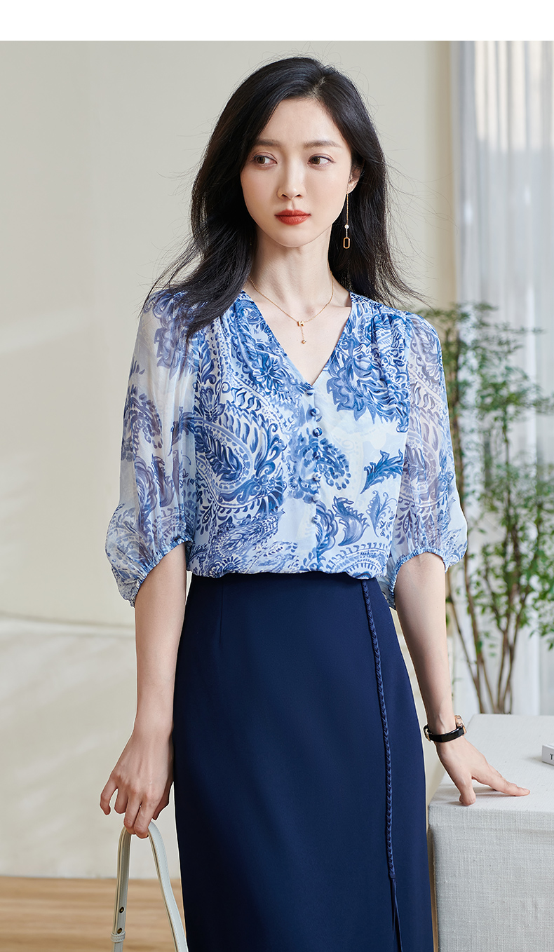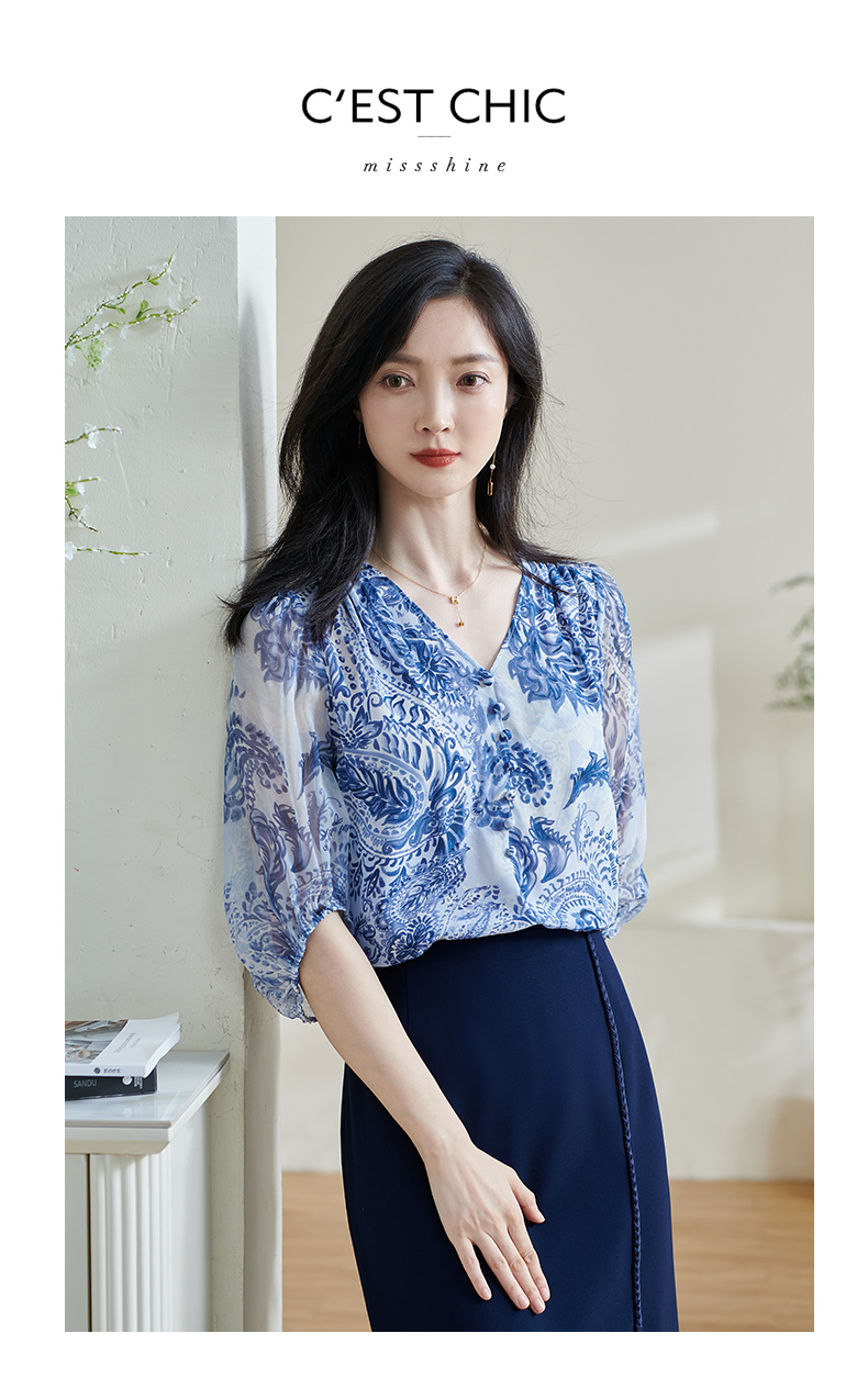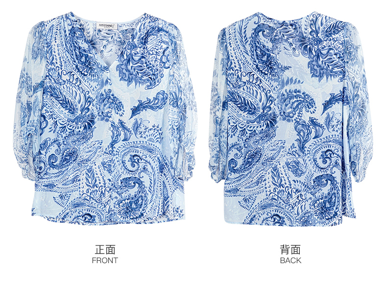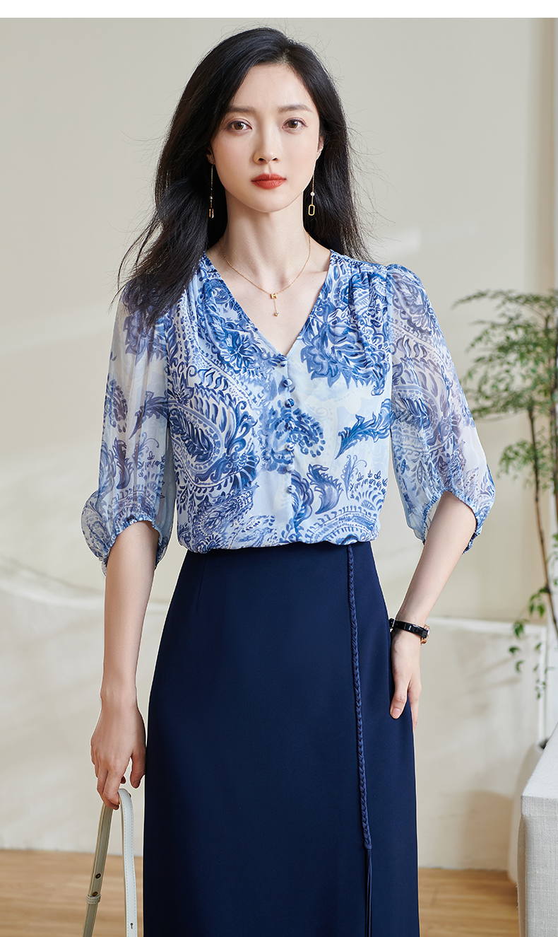 青瓷真丝衬衫 5A桑蚕丝双绉面料 柔润透气 上身若无物 米思阳2026春季新款设计感独特衬衫印花上衣女0803