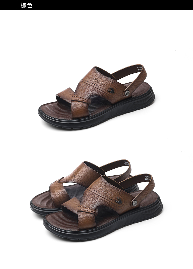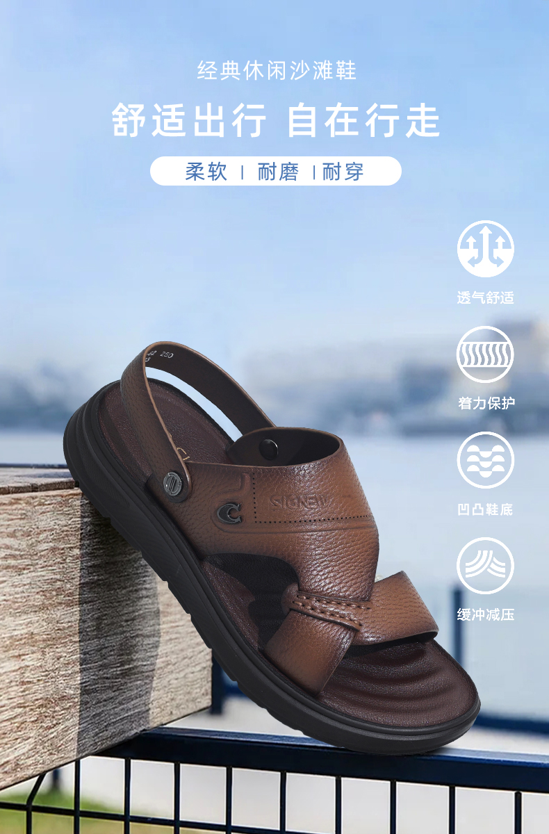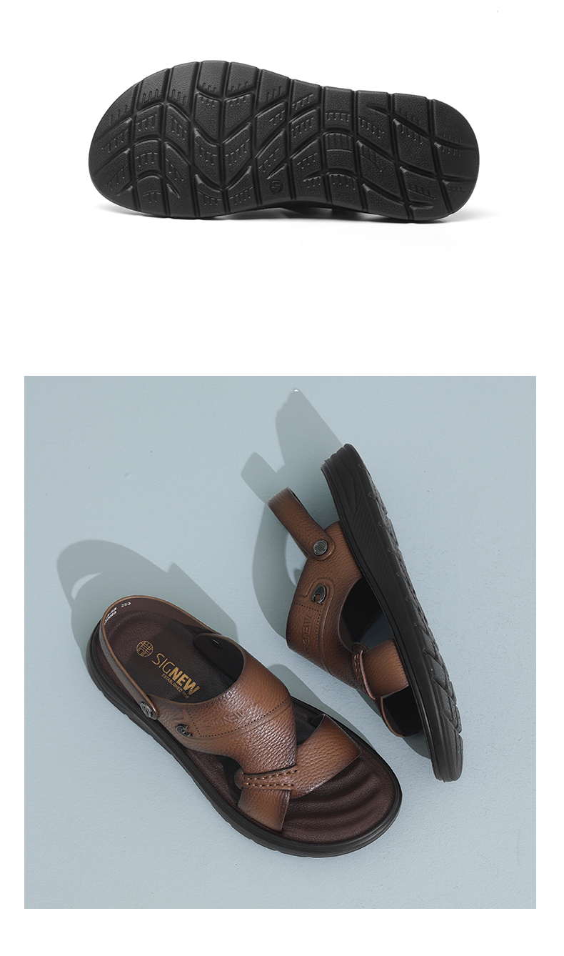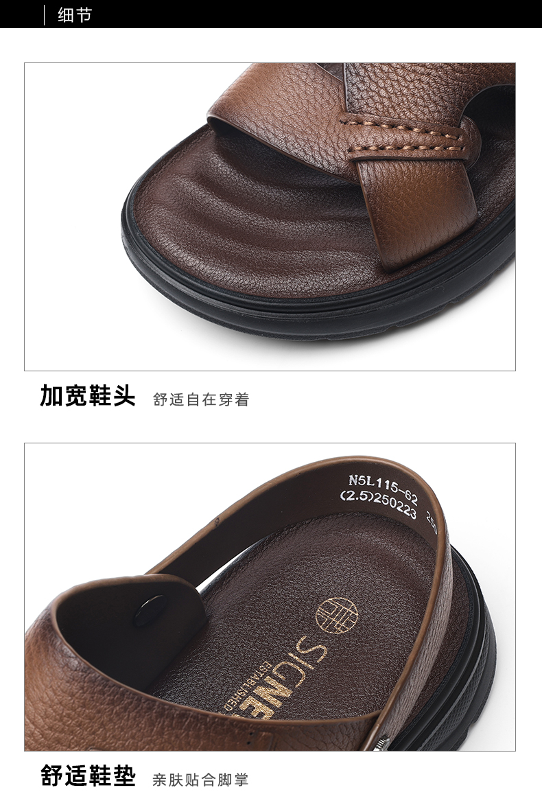 信诺真皮软底凉拖鞋男2025新款夏季舒适外穿沙滩鞋中老年爸爸鞋子N5L115-62