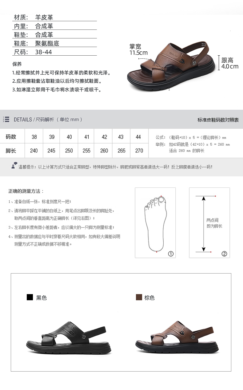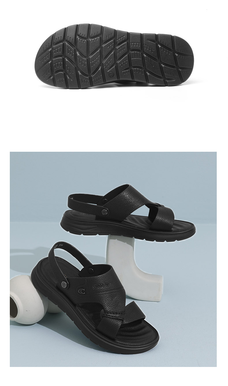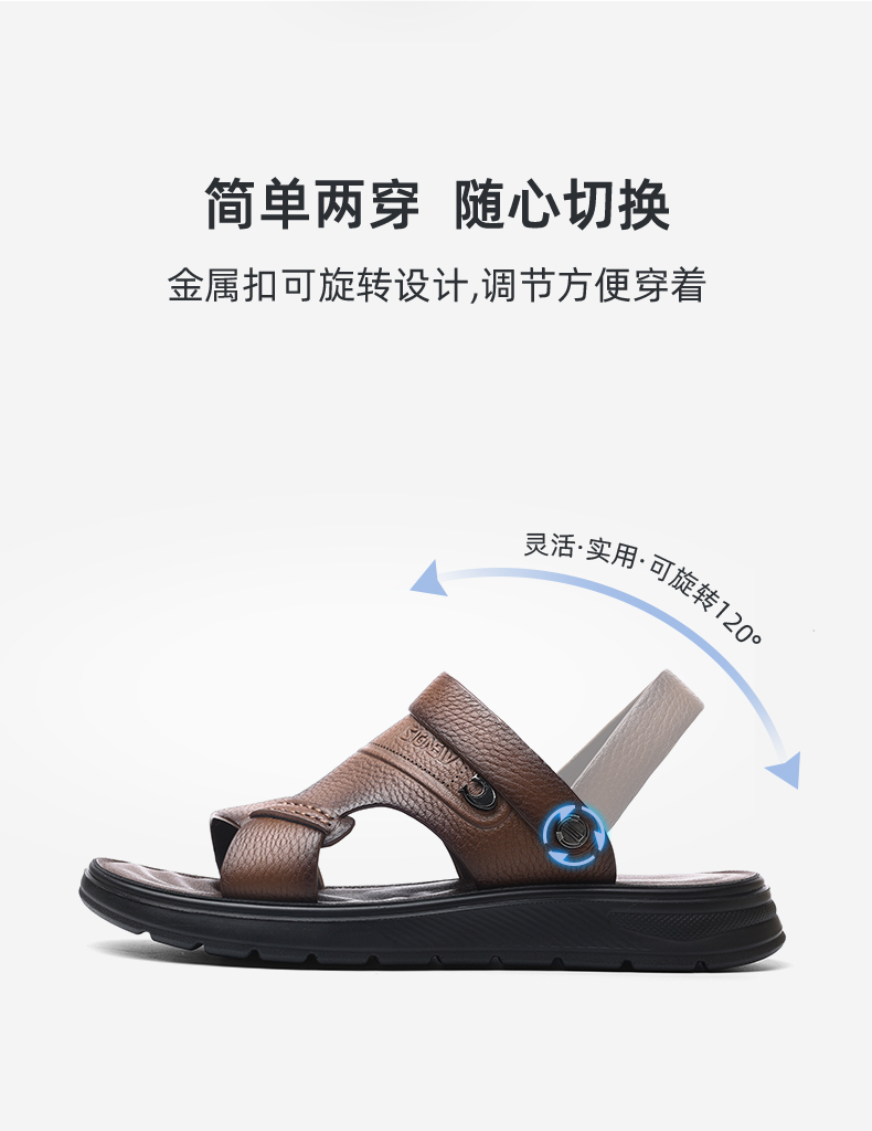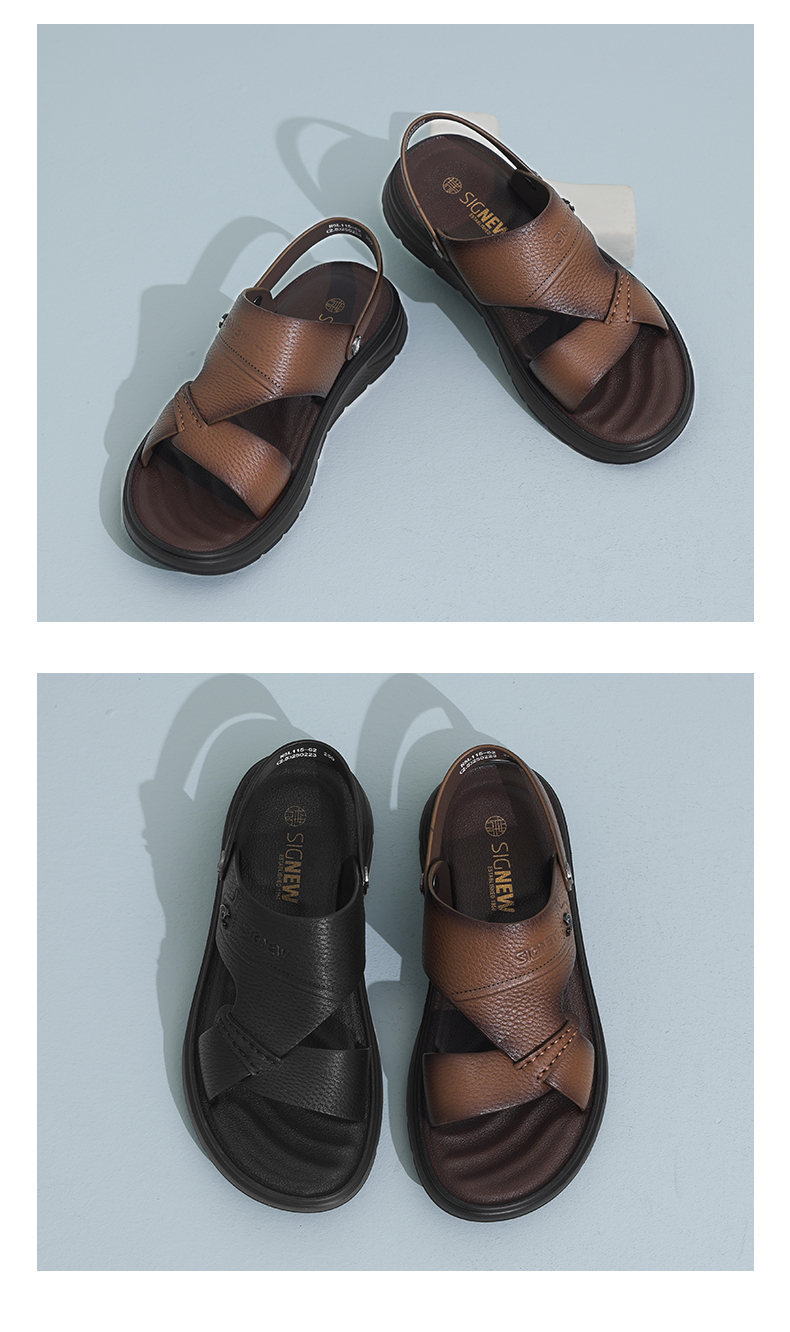 信诺真皮软底凉拖鞋男2025新款夏季舒适外穿沙滩鞋中老年爸爸鞋子N5L115-62
