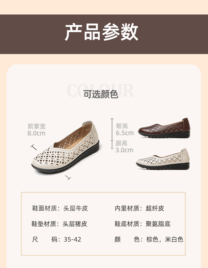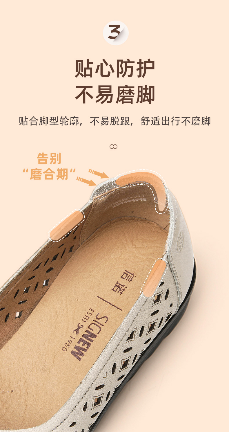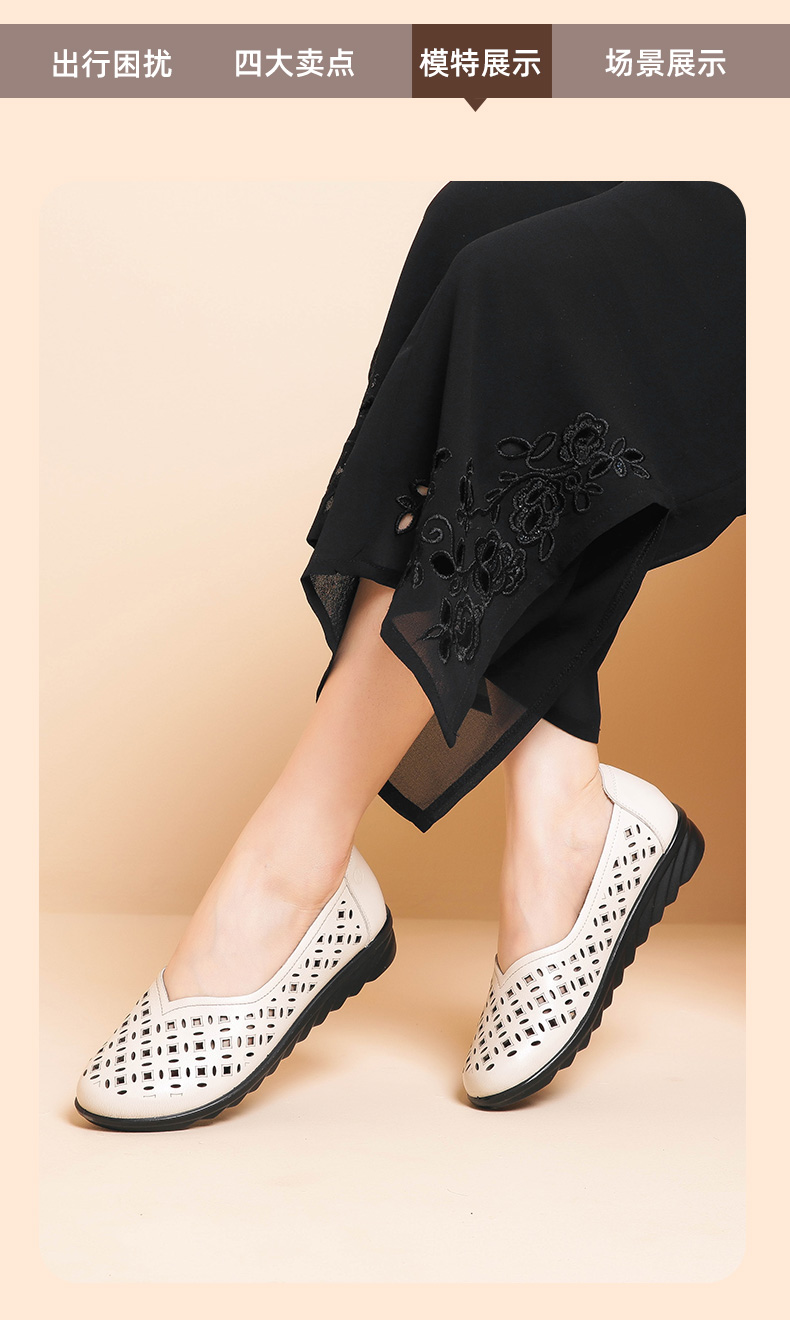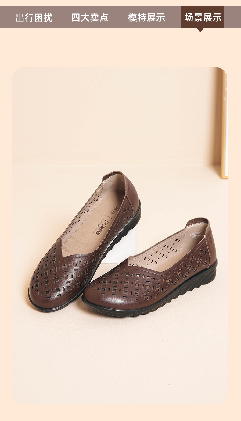 信诺 真皮透气女鞋 妈妈鞋夏款舒适平底轻便中老年人软底奶奶凉鞋22C8082-017