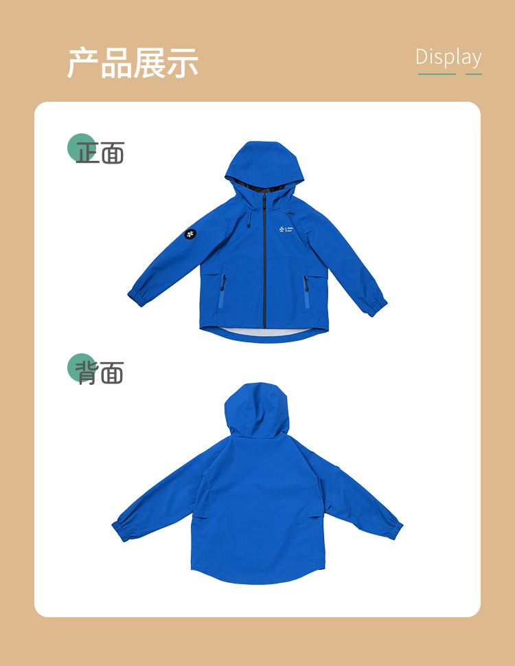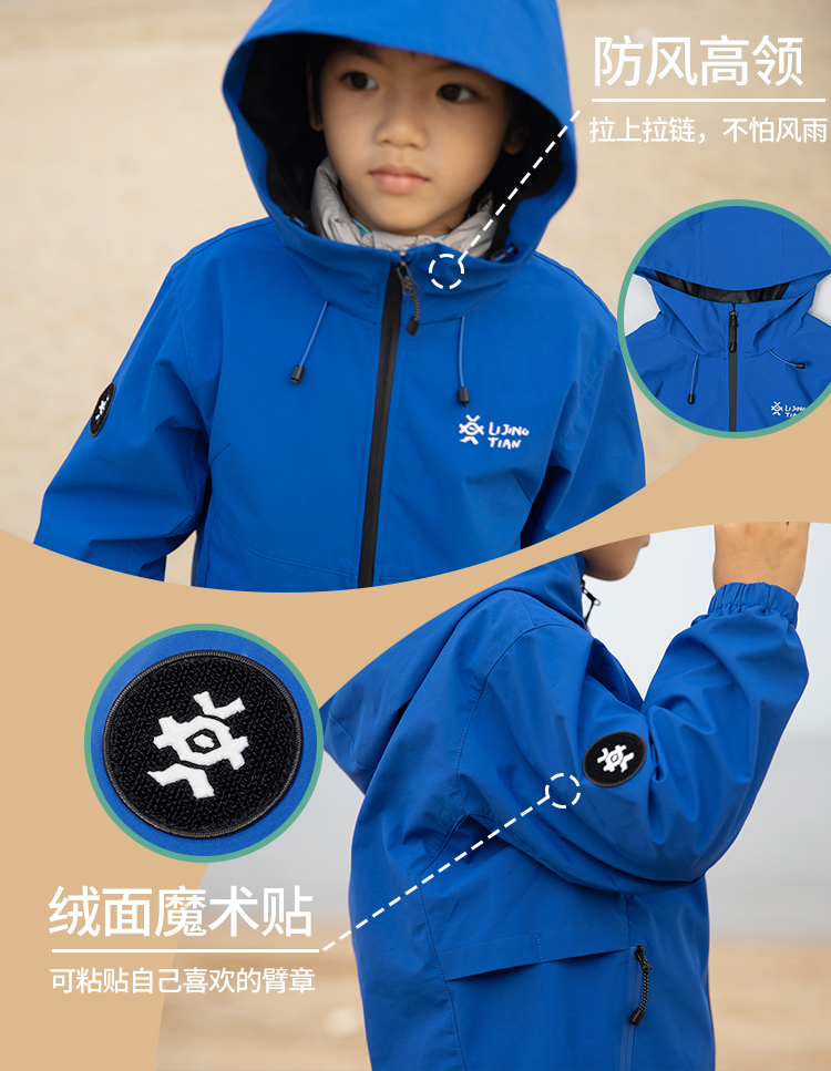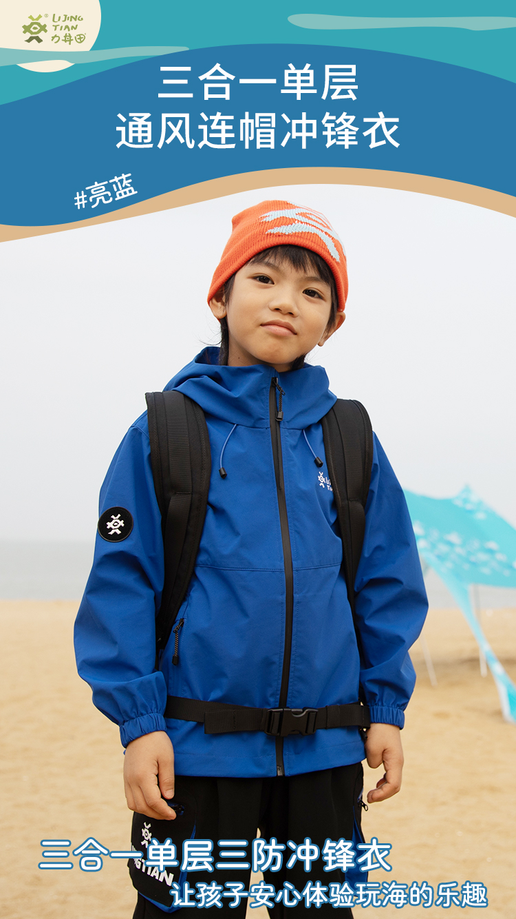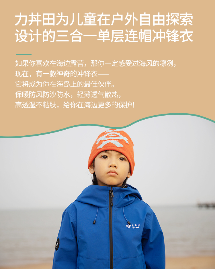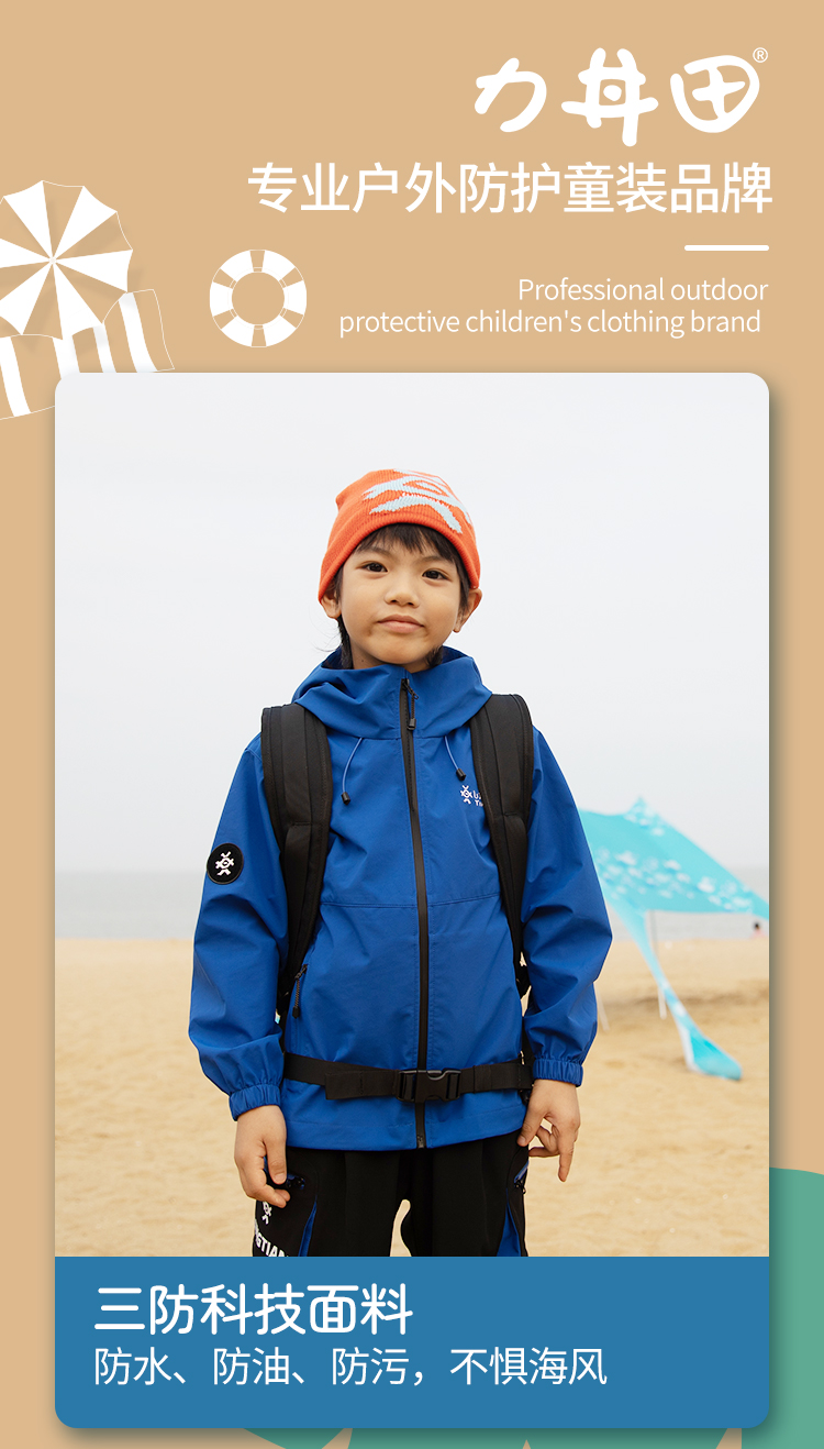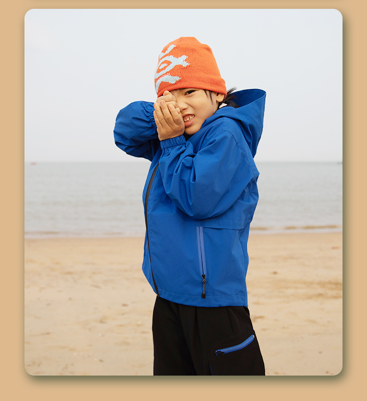 力丼田儿童户外三防单层通风连帽冲锋衣 特氟龙三防PHOBOL®CP-SLA L2341S055CBE