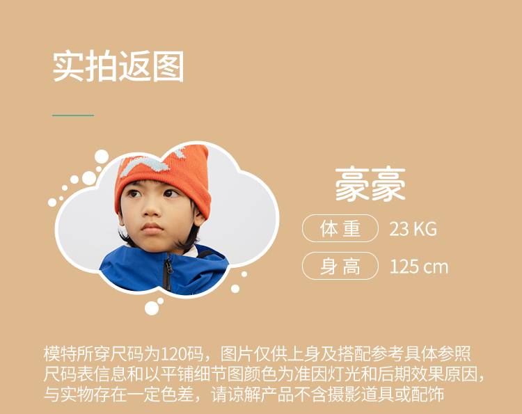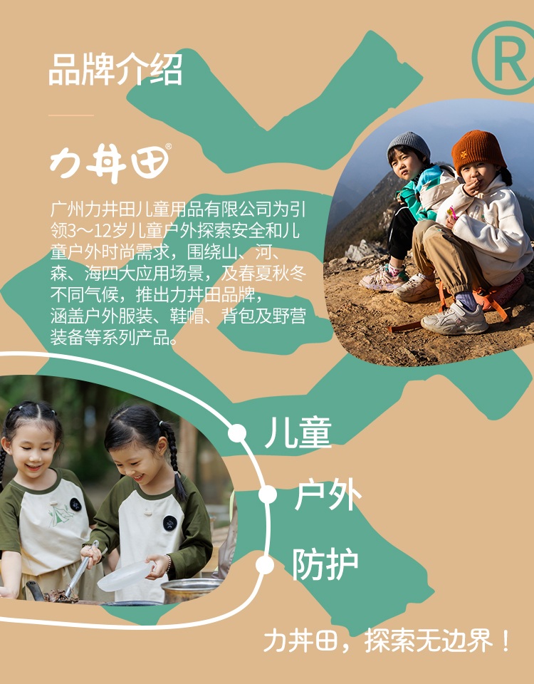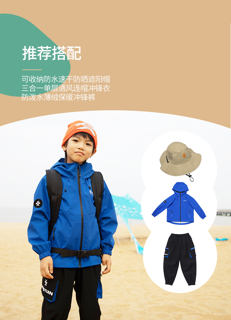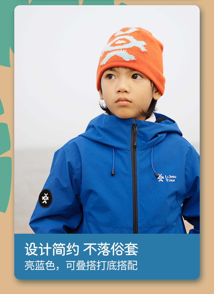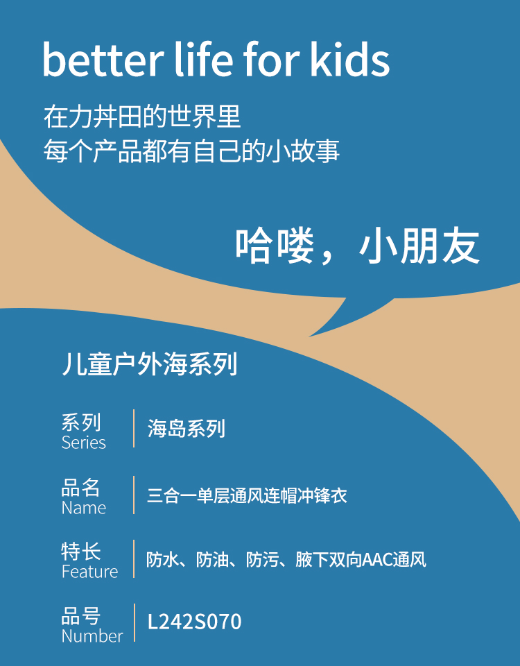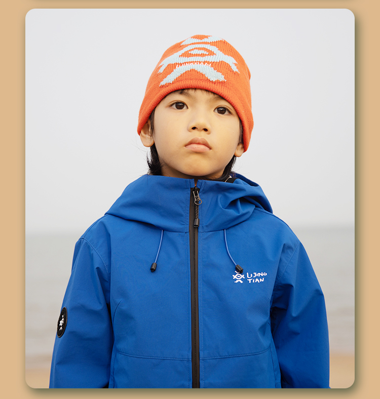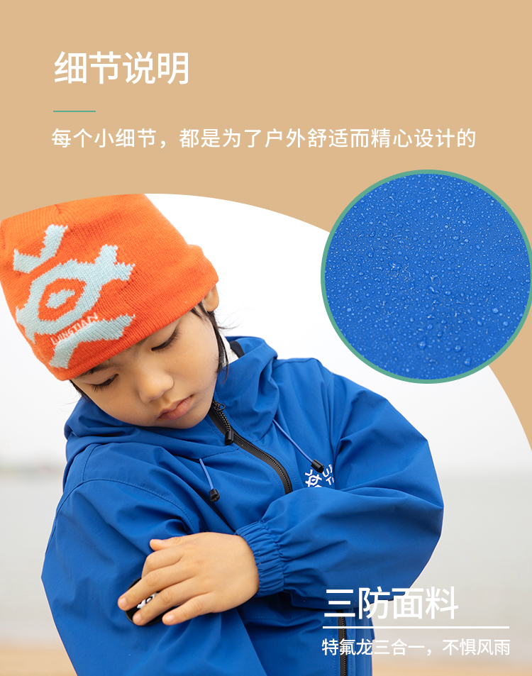 力丼田儿童户外三防单层通风连帽冲锋衣 特氟龙三防PHOBOL®CP-SLA L2341S055CBE
