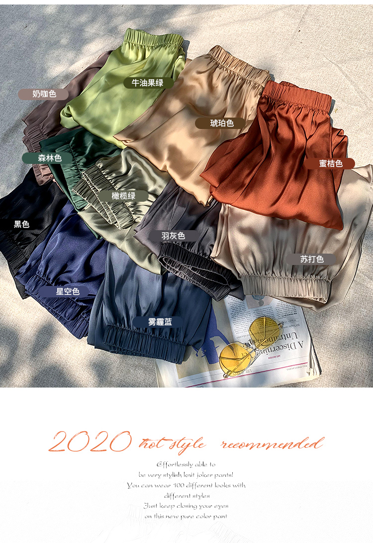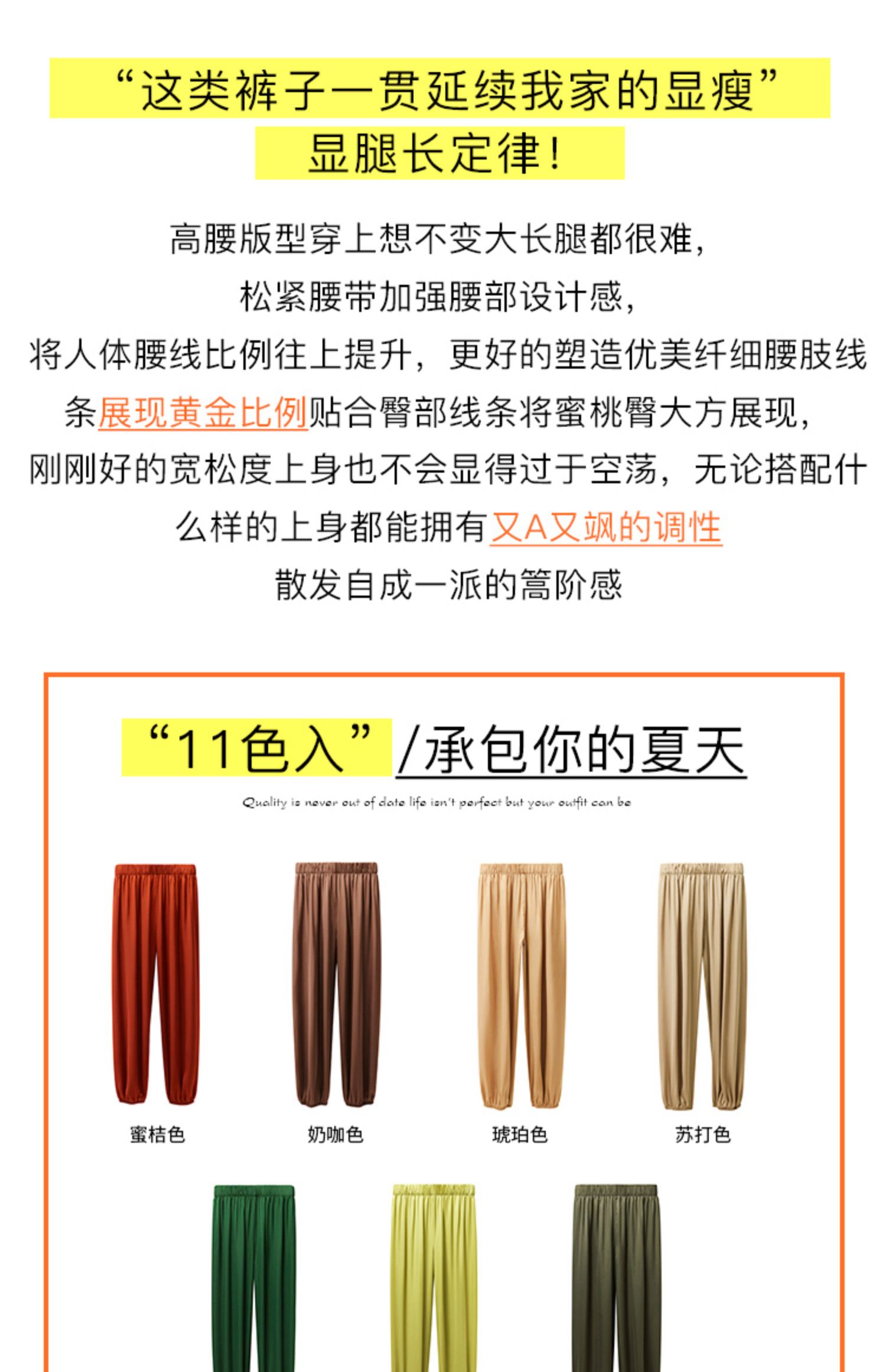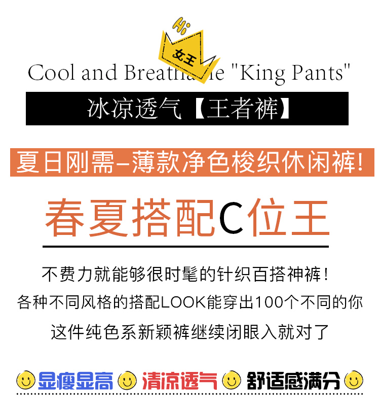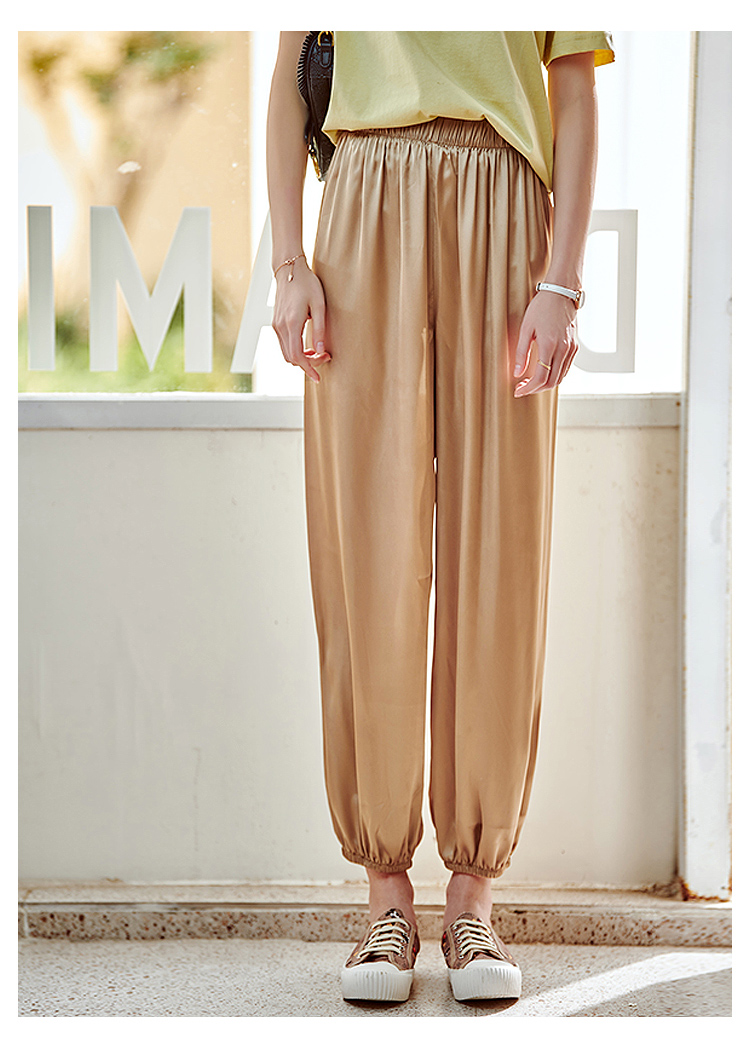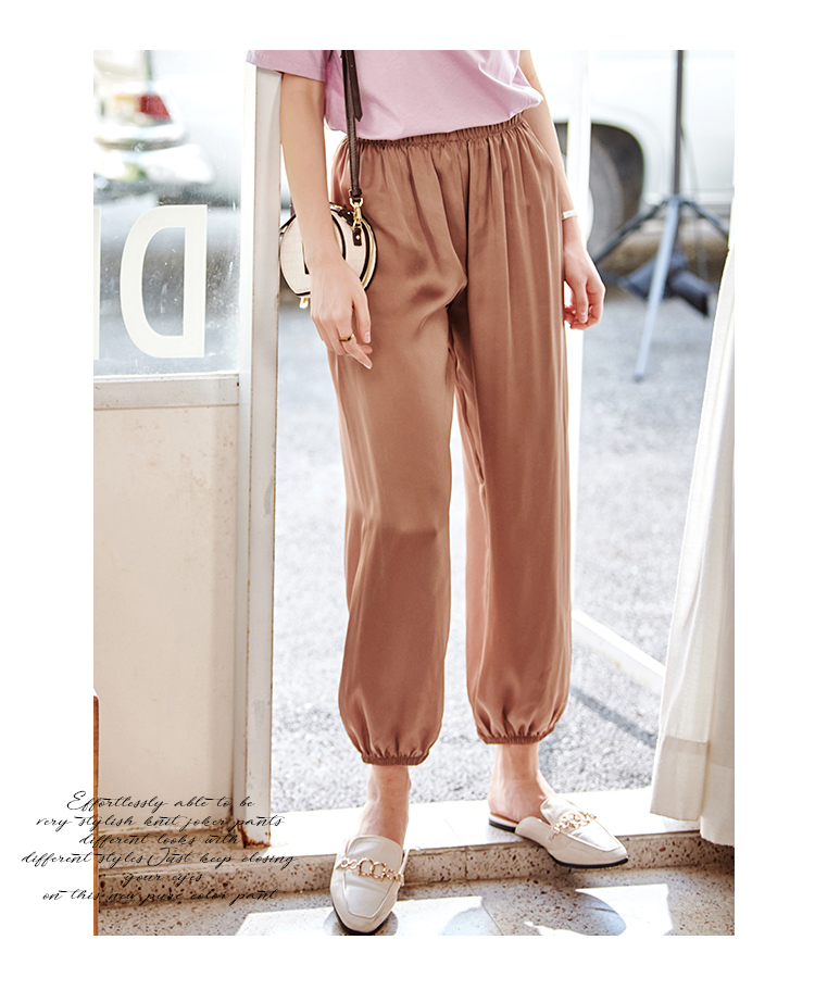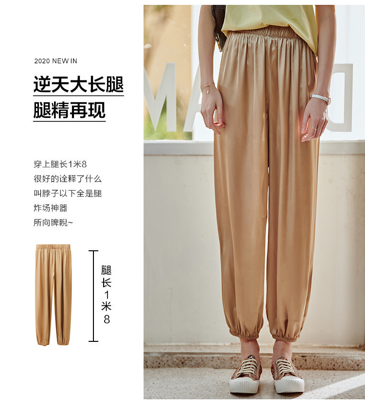 欧芮儿2021夏装新款高腰显瘦休闲裤女百搭纯色薄款松紧腰带束脚裤