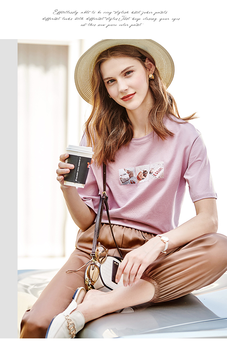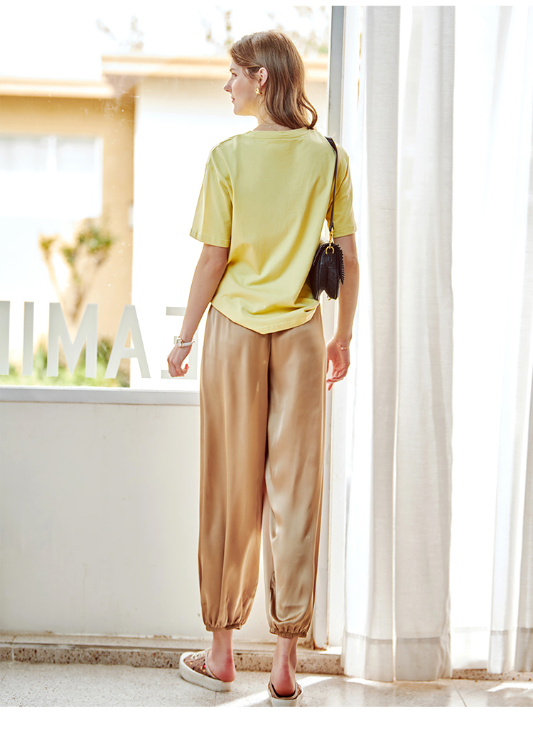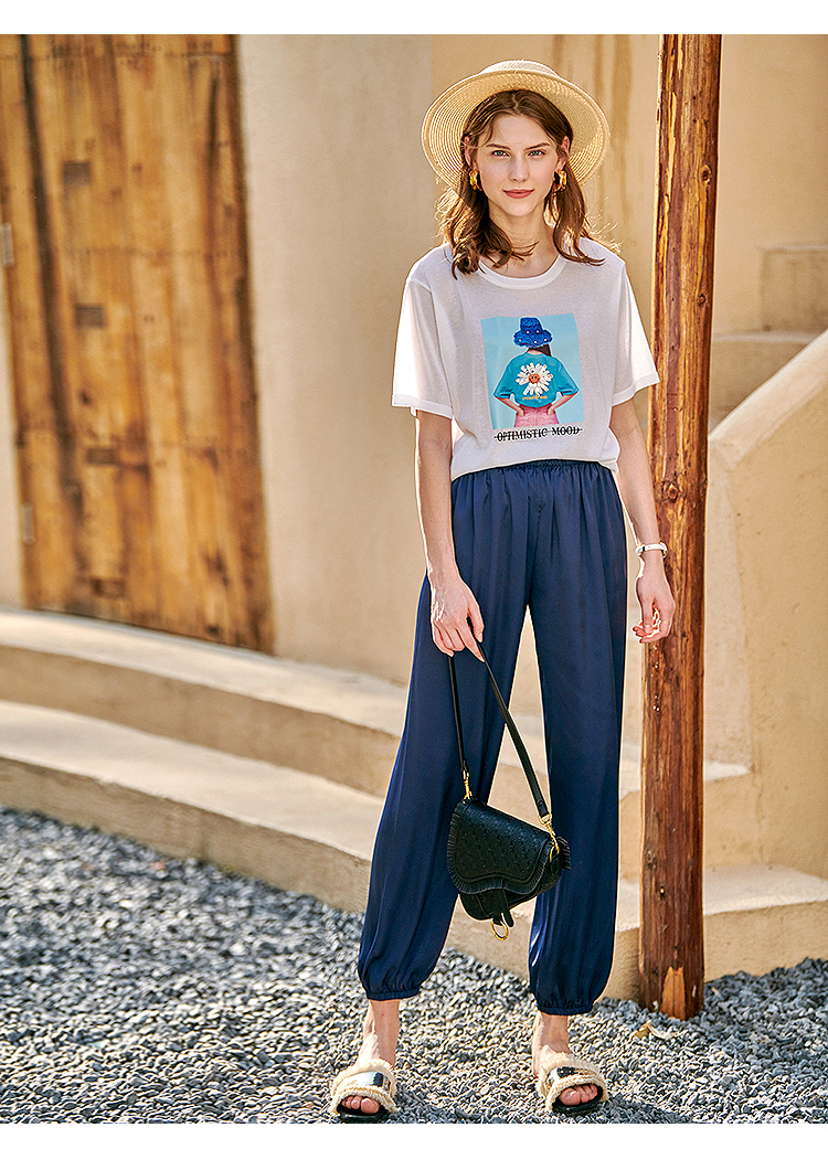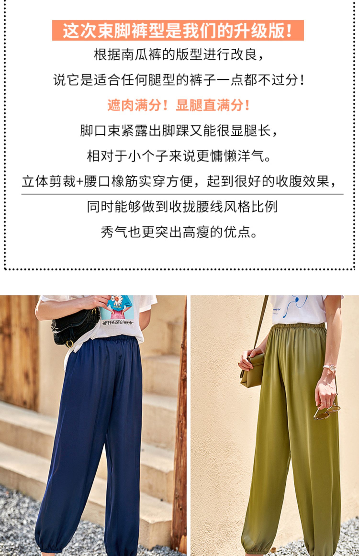 欧芮儿2021夏装新款高腰显瘦休闲裤女百搭纯色薄款松紧腰带束脚裤