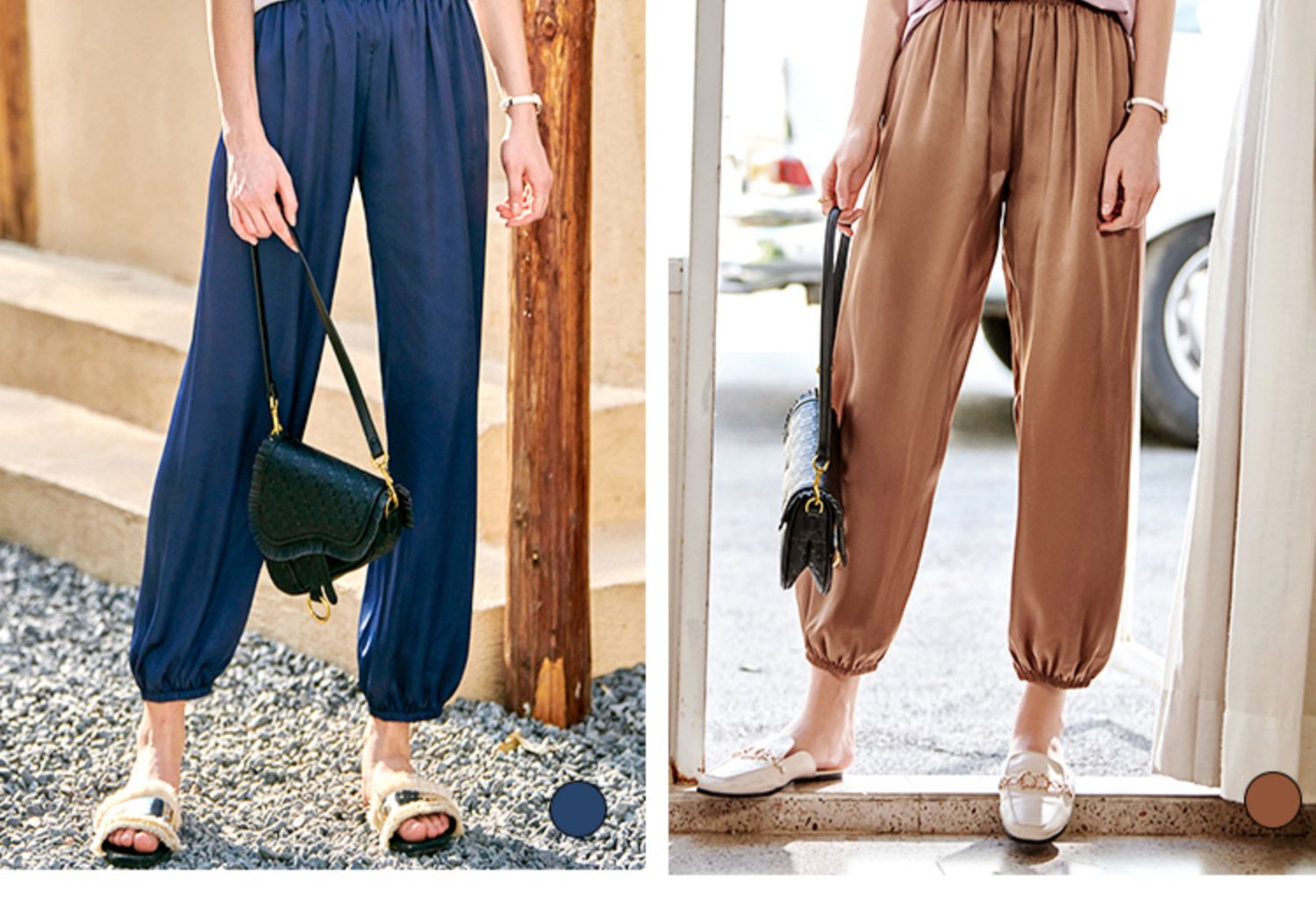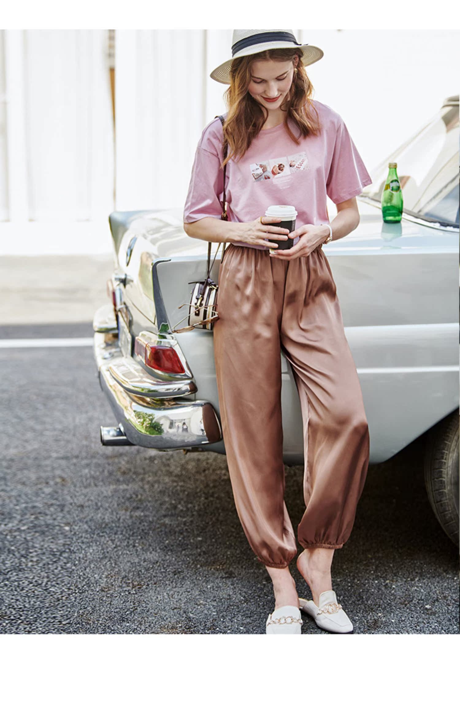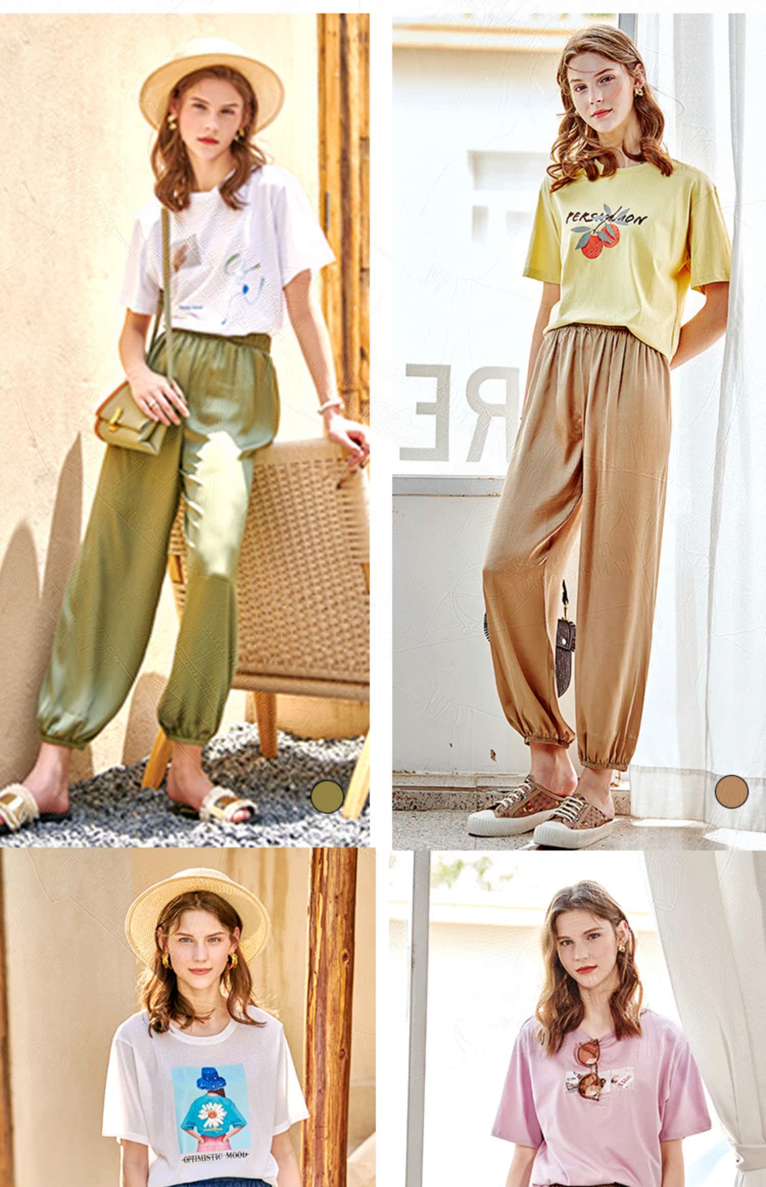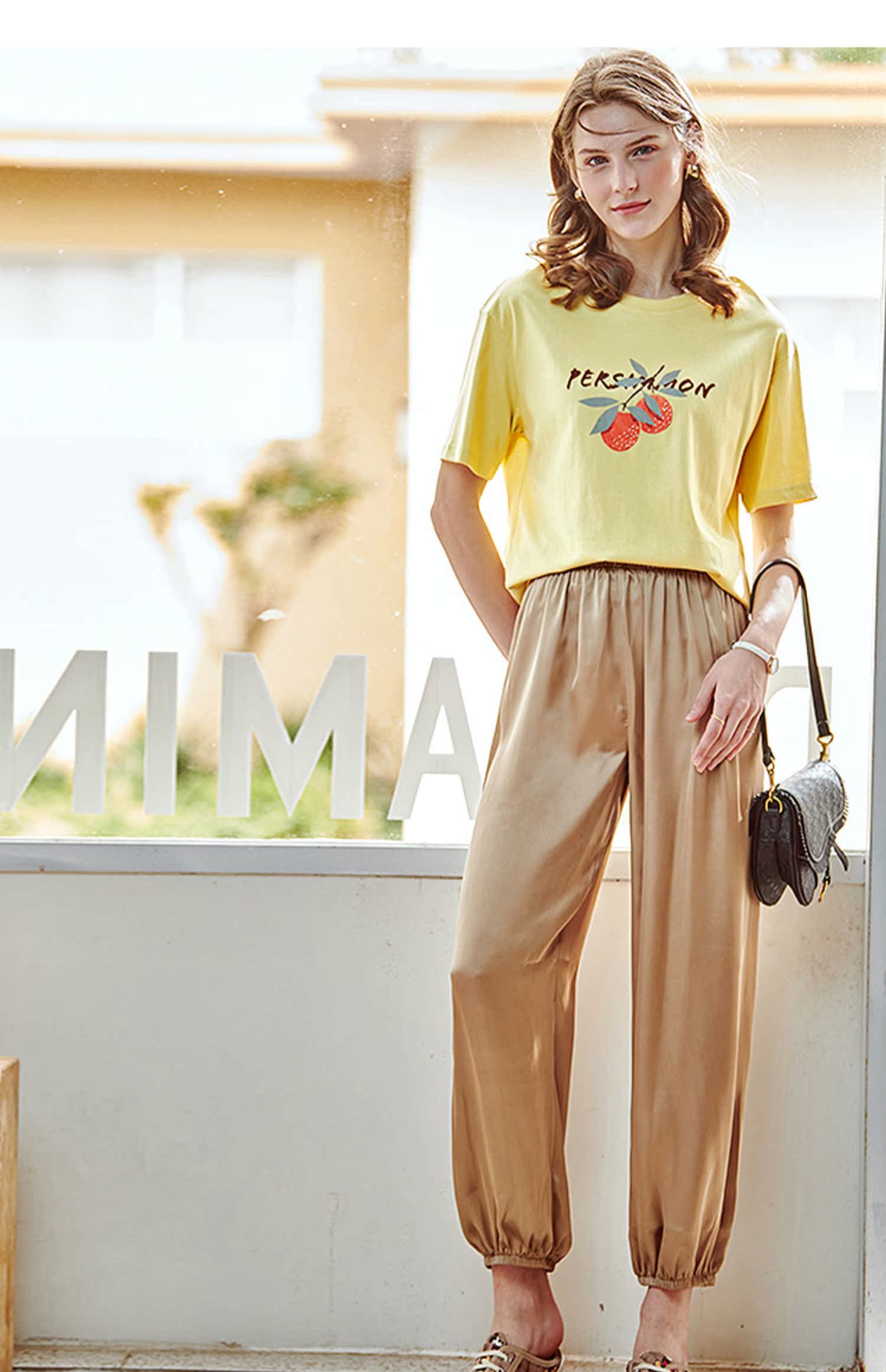 欧芮儿2021夏装新款高腰显瘦休闲裤女百搭纯色薄款松紧腰带束脚裤