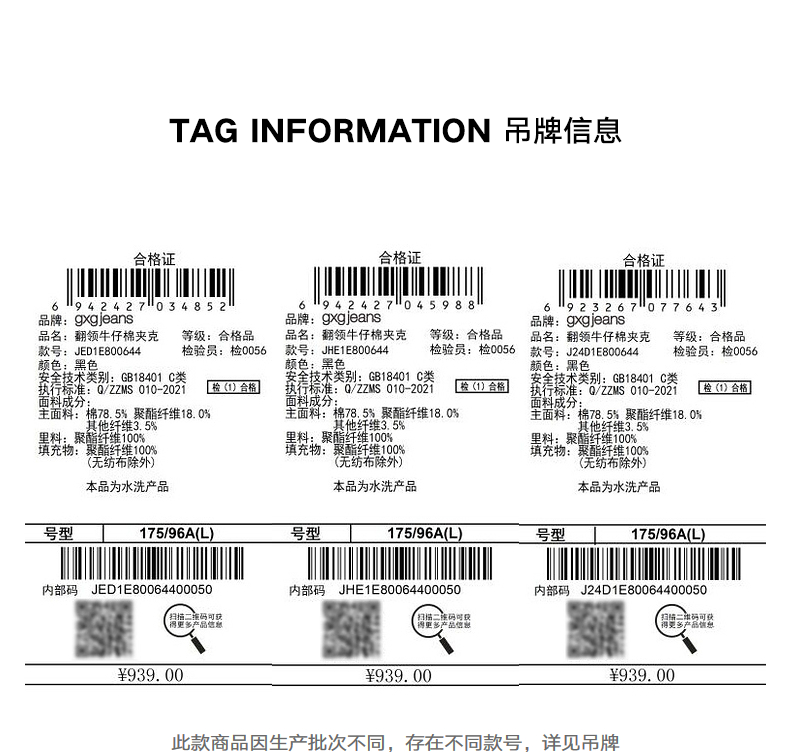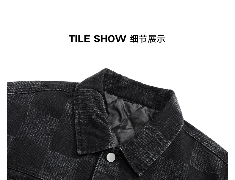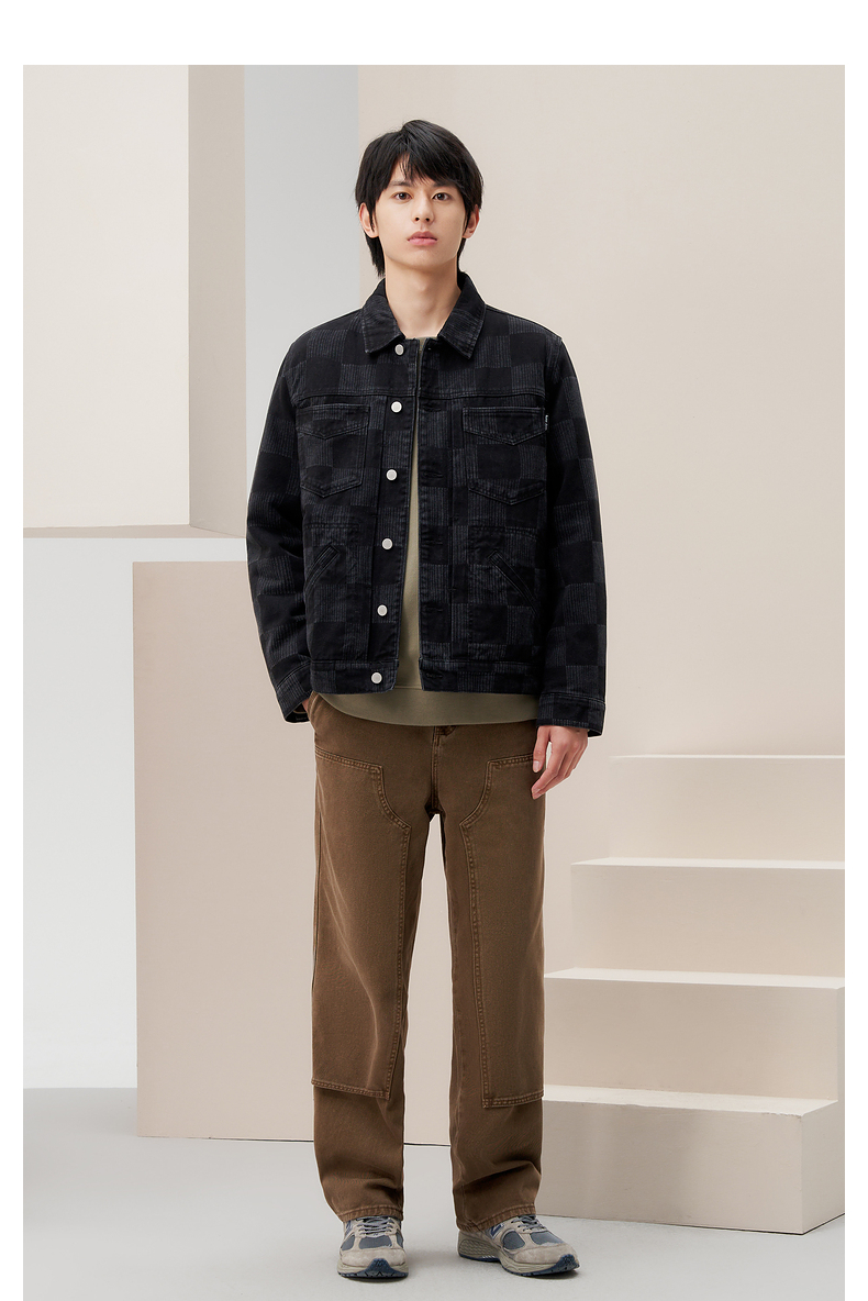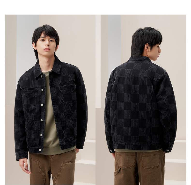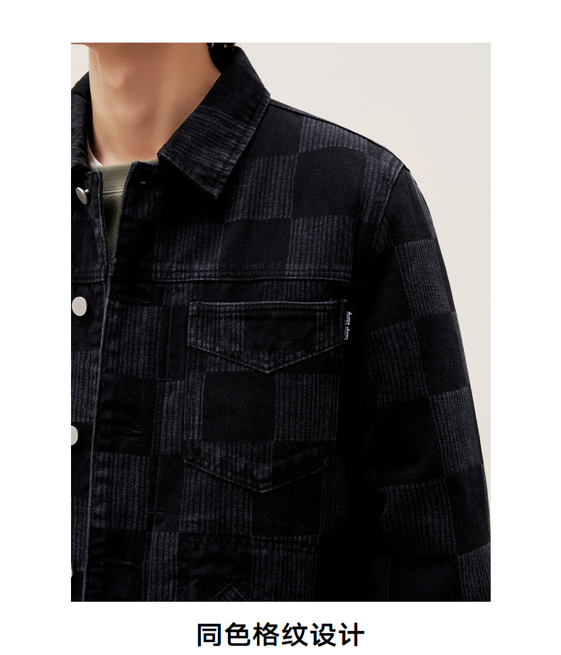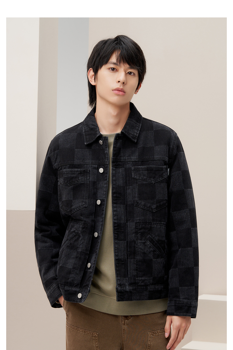 gxg.jeans男装 冬季热卖同色格纹设计翻领牛仔夹克JED1E800644