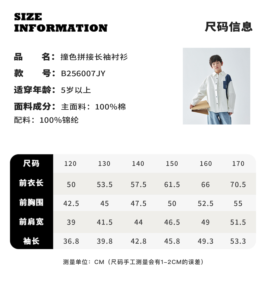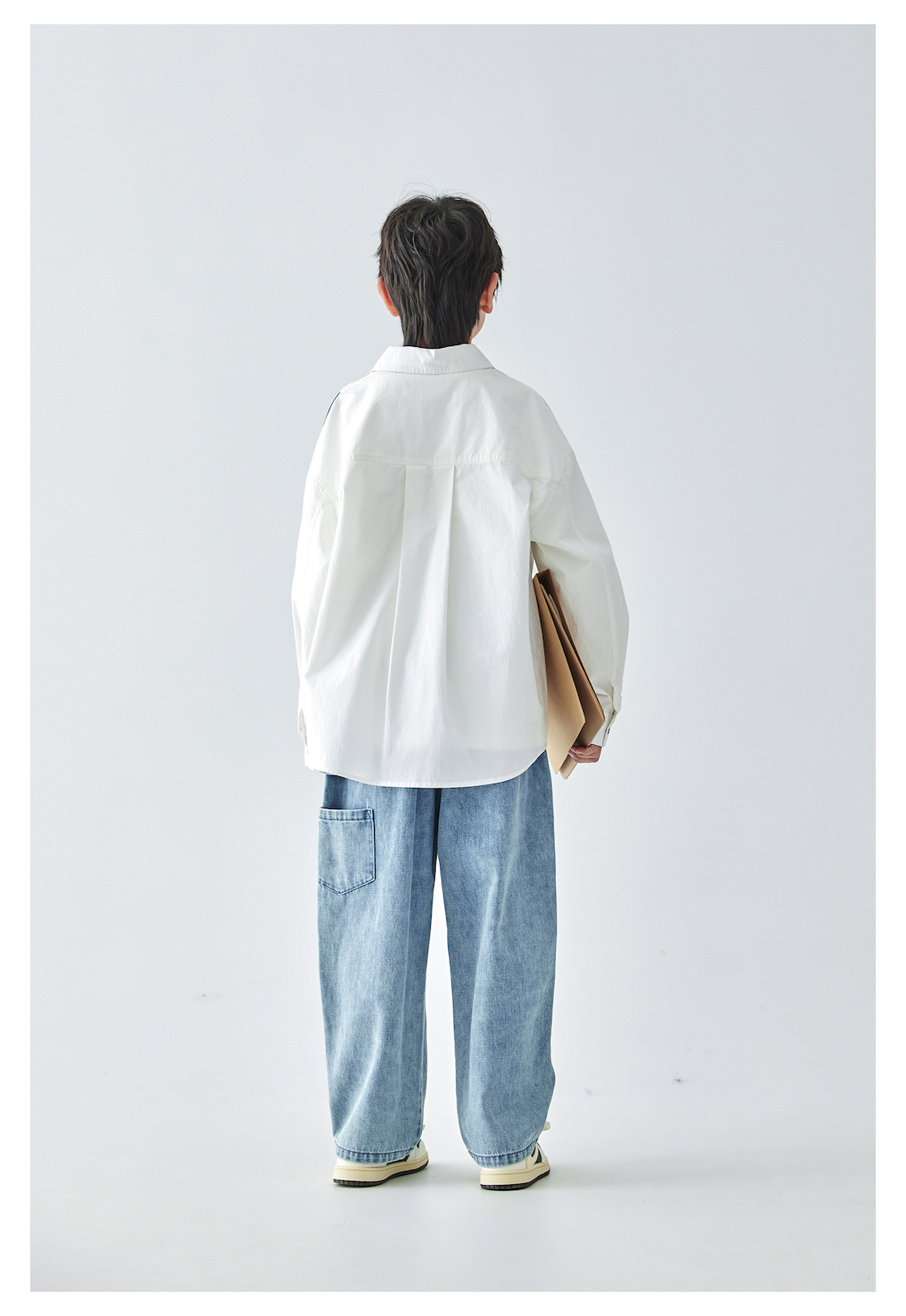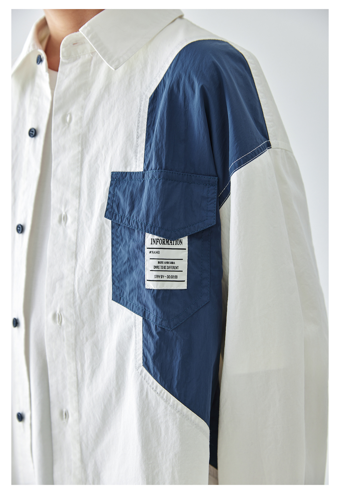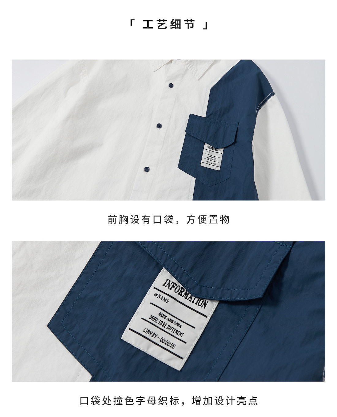 蓝汽水25年春季撞色拼接长袖衬衫男童全棉质感宽松休闲设计感衬衣