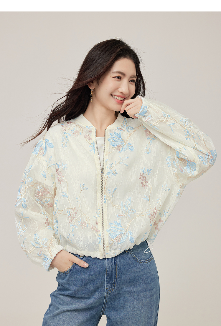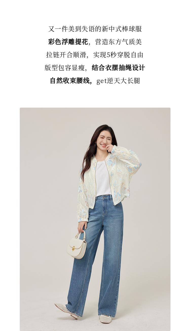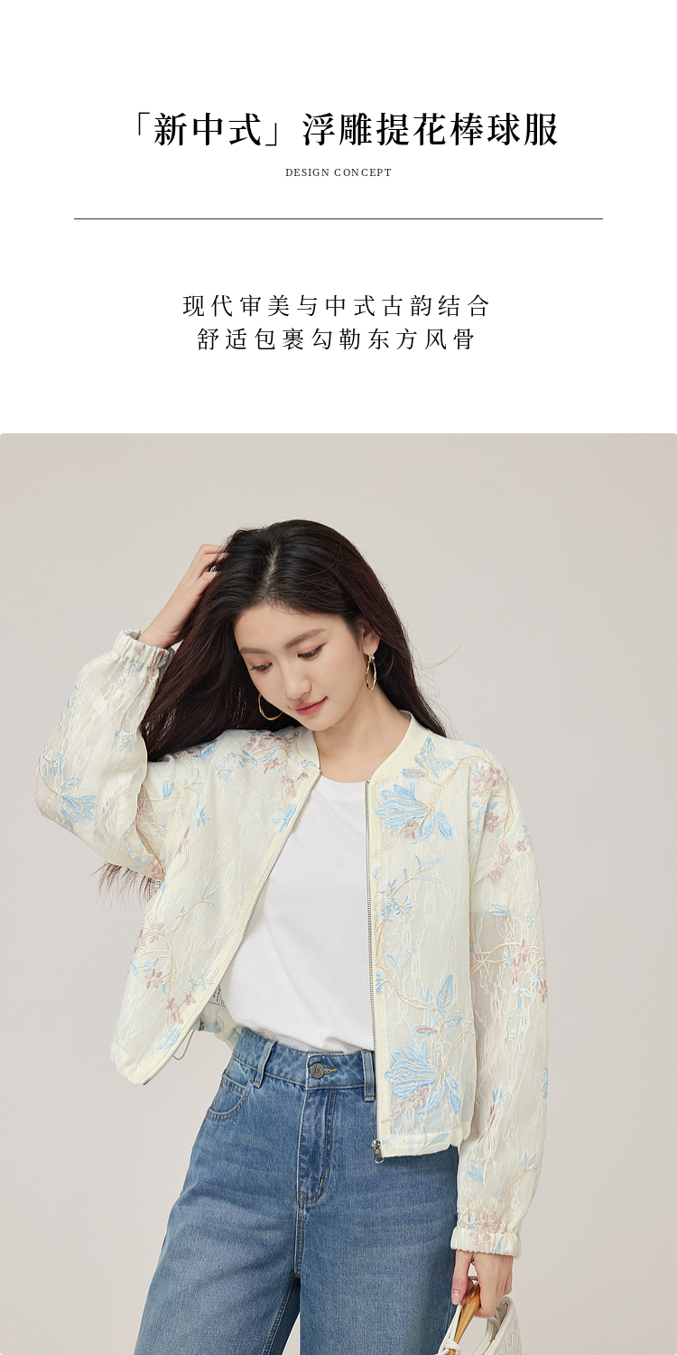 【08/06新品】熙世界新中式提花棒球服外套女短款气质国风刺绣上衣2025秋装新款