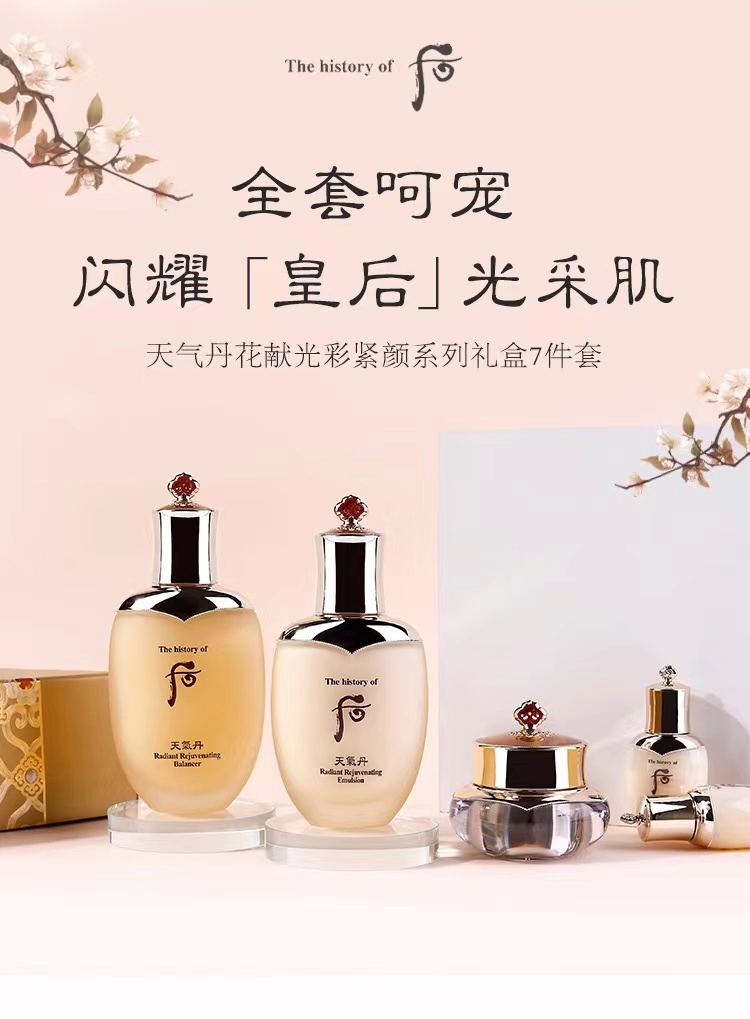 韩国whoo后 天气丹花献光彩紧颜系列礼盒 七件套 送礼袋