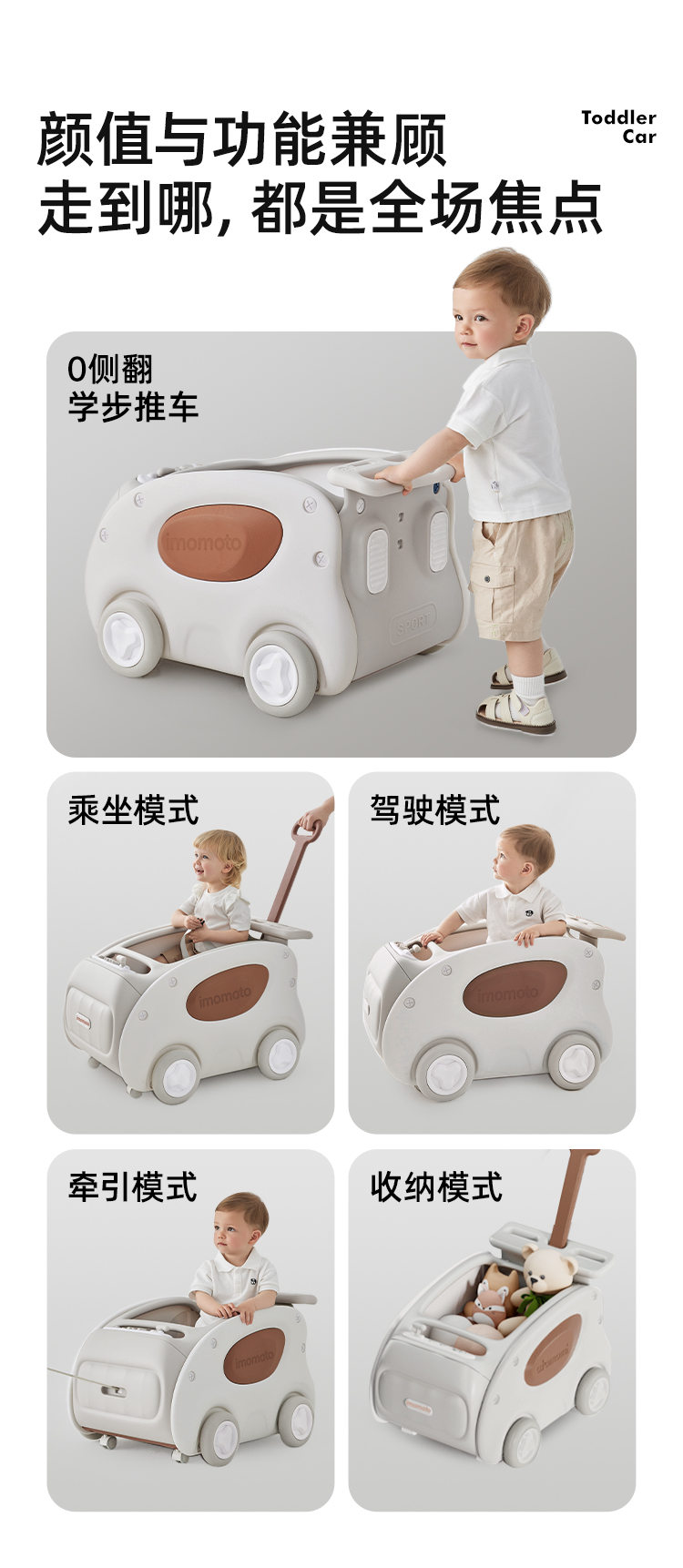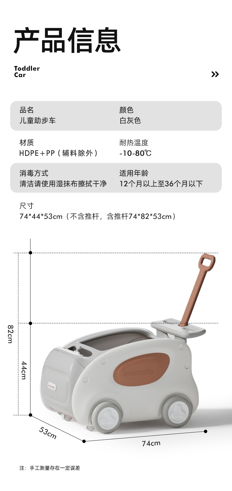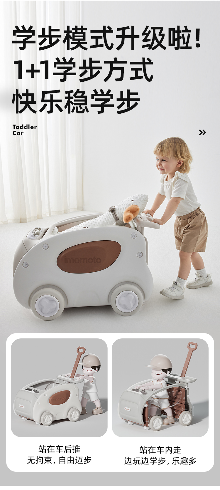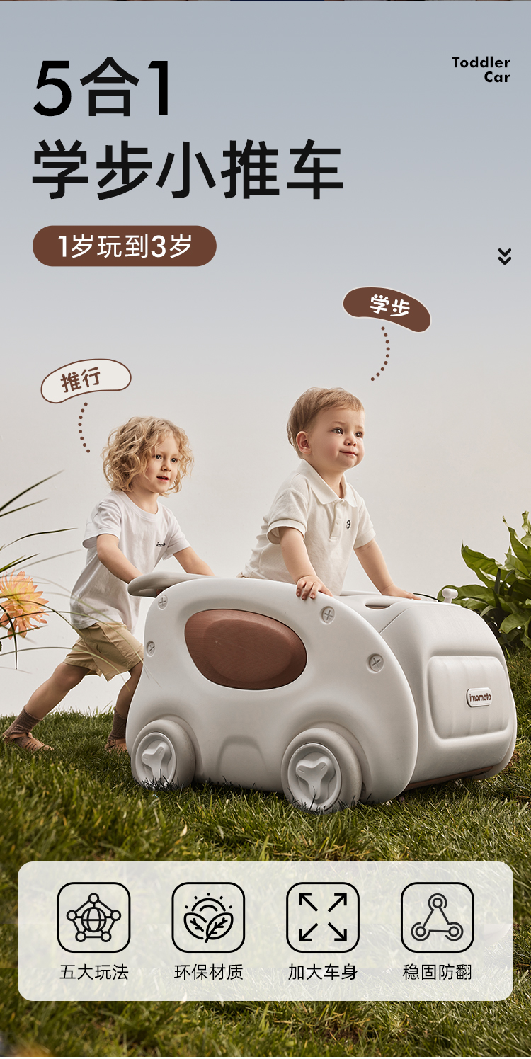 imomoto 宝宝学步车婴儿手推车防侧翻防o型腿学走路神器多功能儿童助步车