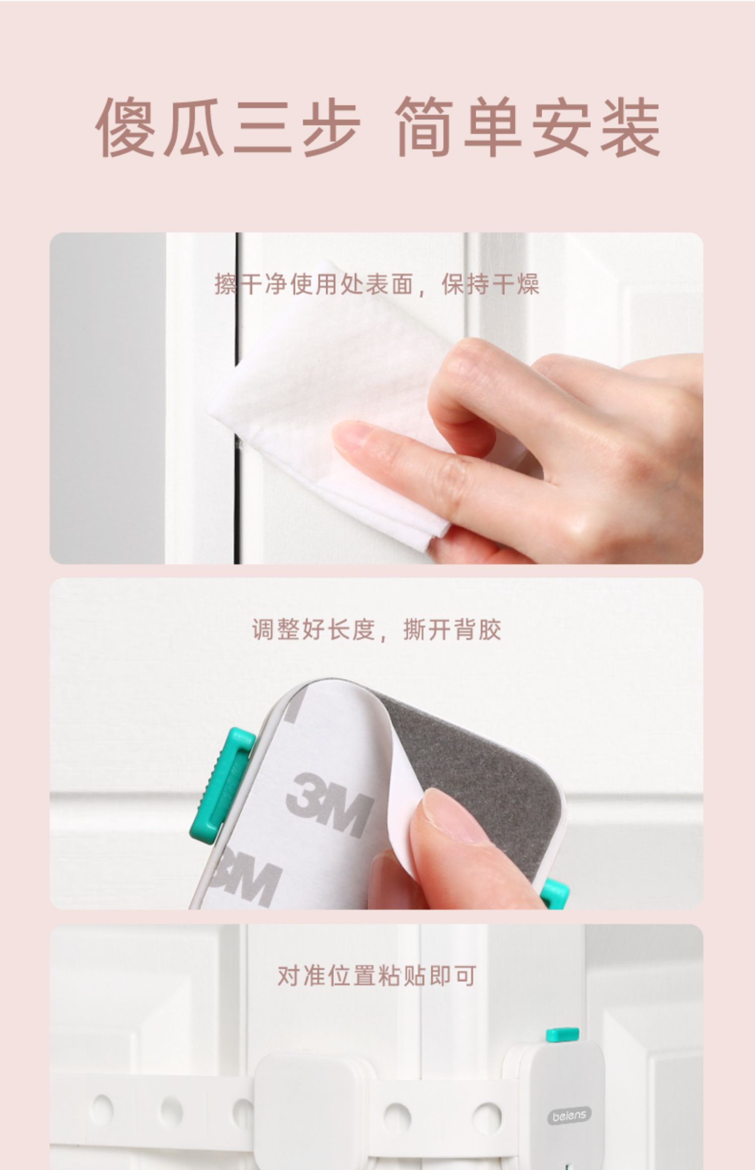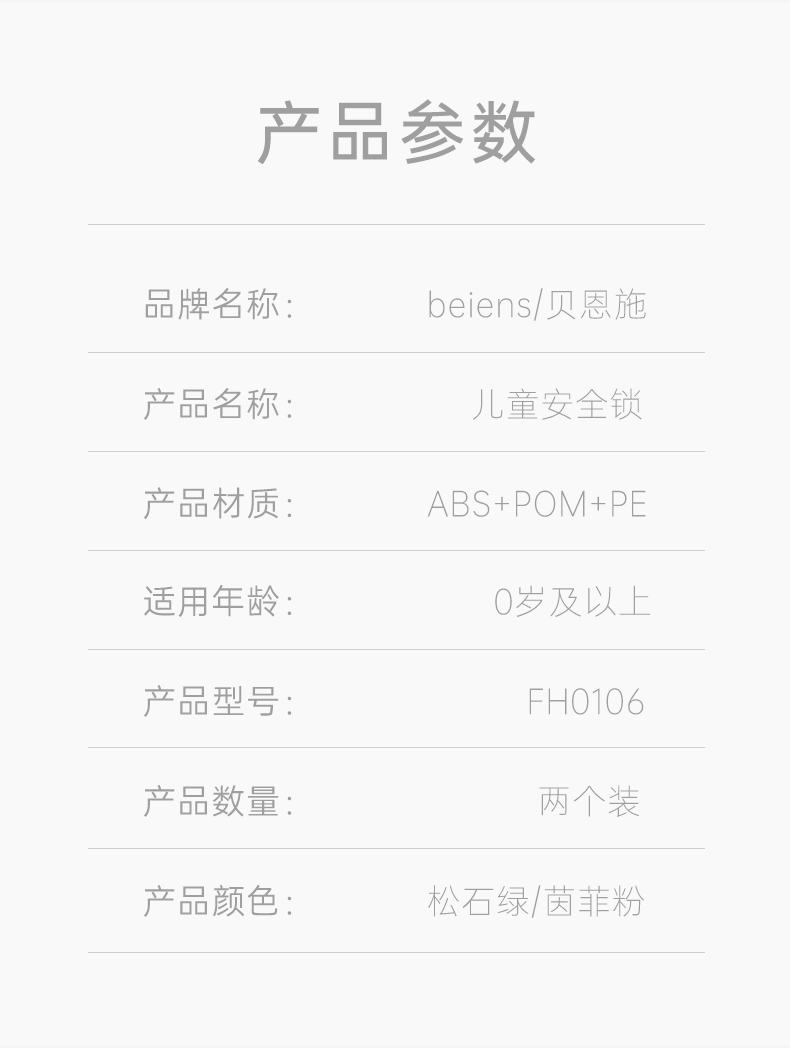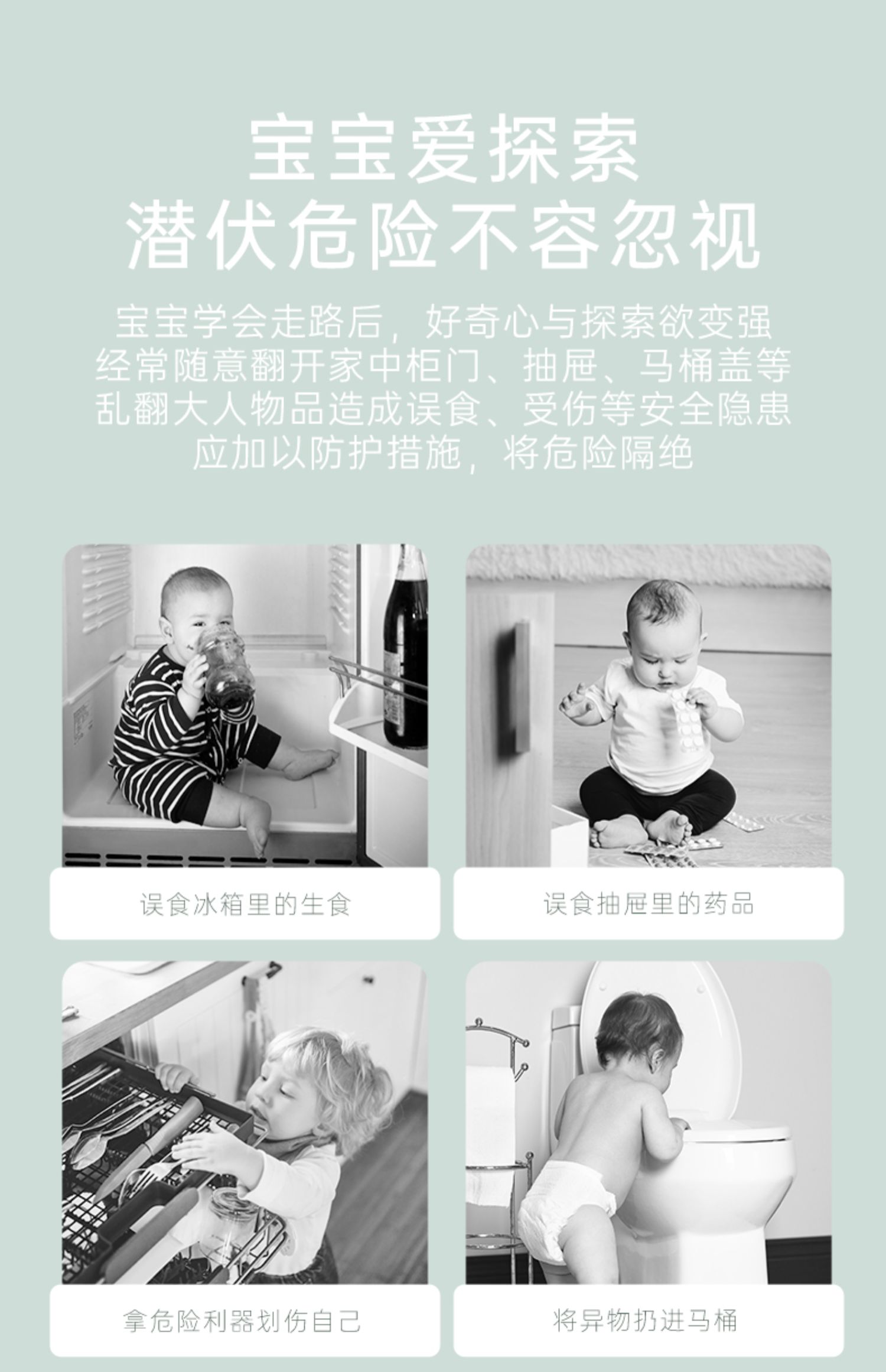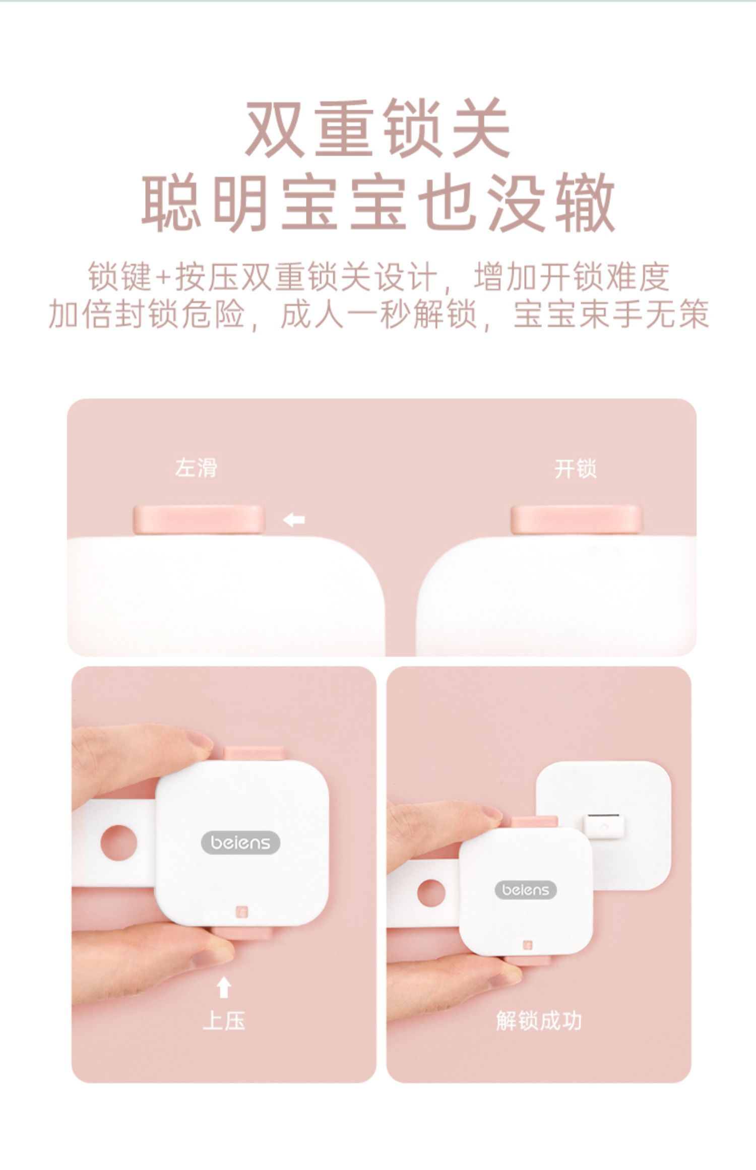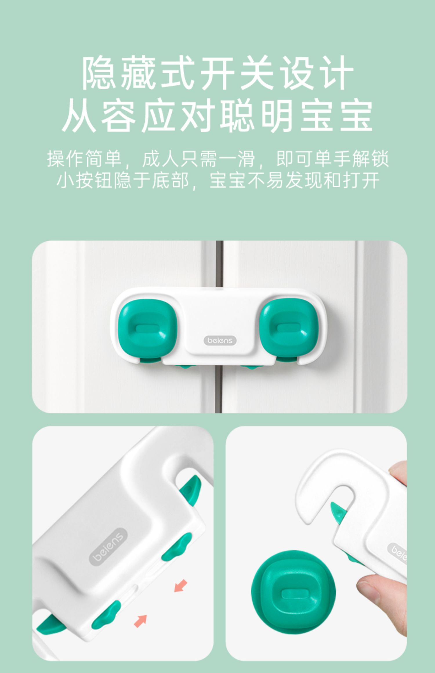贝恩施儿童安全锁 宝宝防夹手抽屉扣婴儿防开柜子柜门冰箱锁扣