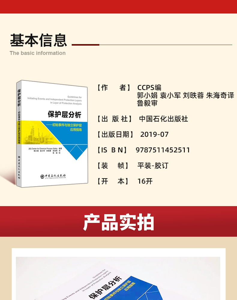 【旗舰店】保护层分析:初始事件与独立保护层应用指南 CCPS 美国 化工过程安全中心 化工过程 安全管理 保护层分析 中国石化出版社