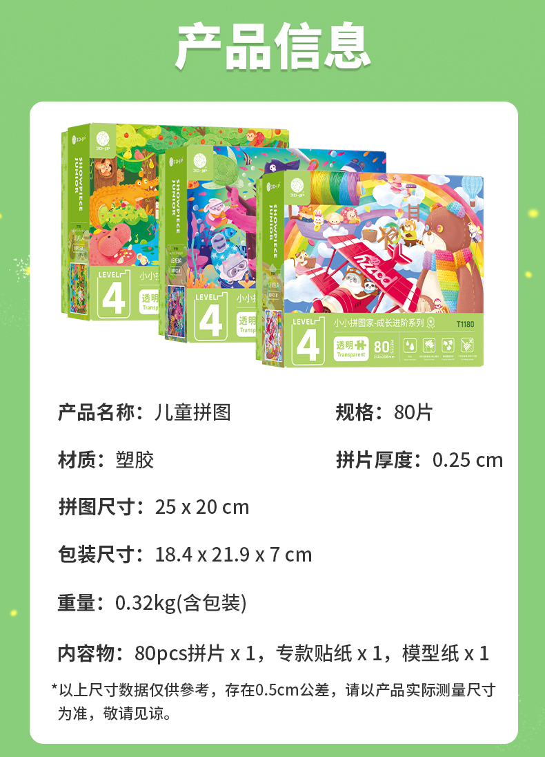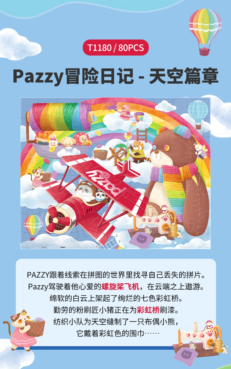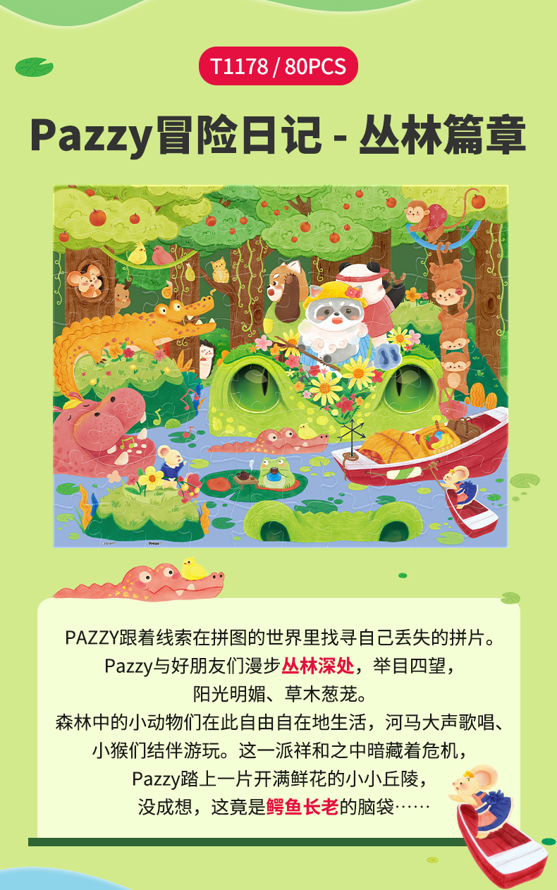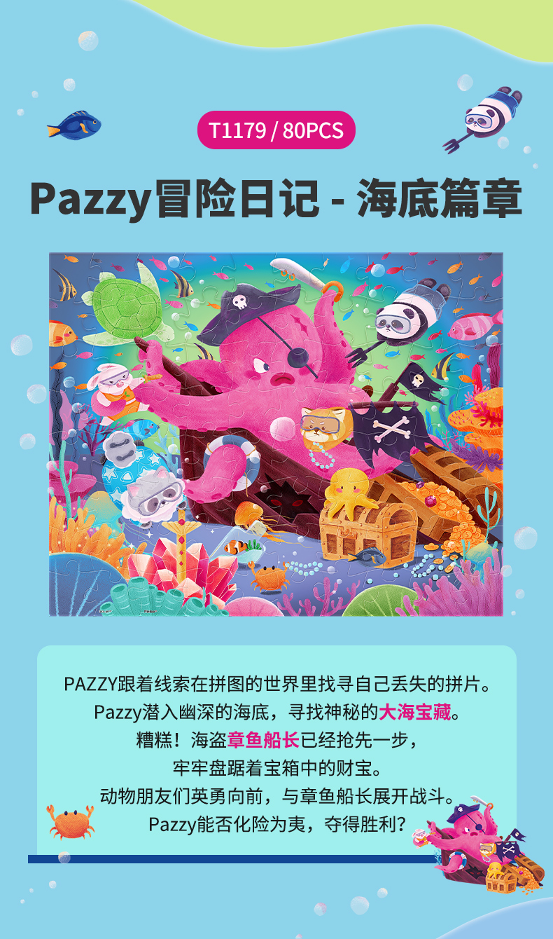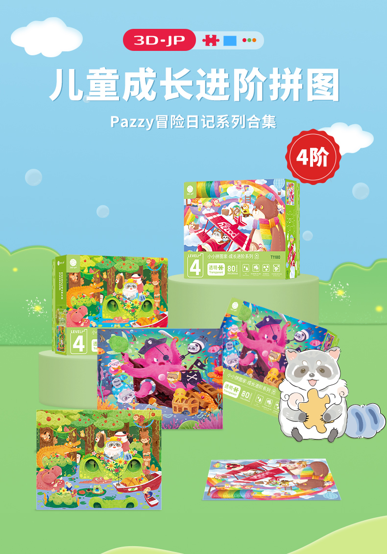 80片 儿童平面塑料拼图 Pazzy冒险日记系列 T1178/T1179/T1180