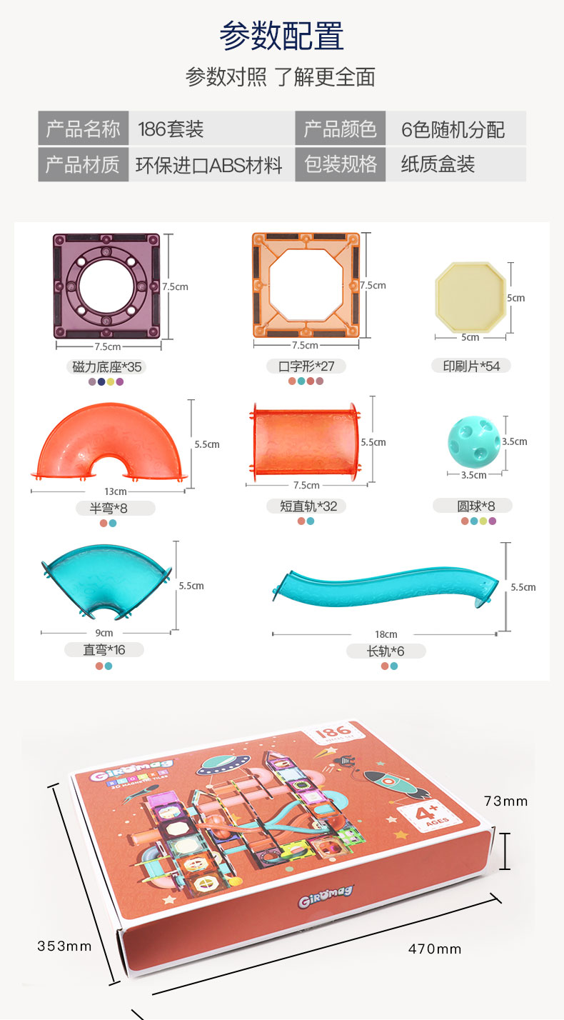 Giromag新品2021磁力轨道80pcs/110pcs套装/186pcs套装