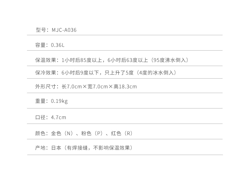 虎牌日本制不锈钢真空杯/MJC-A036保温杯泡茶杯水杯