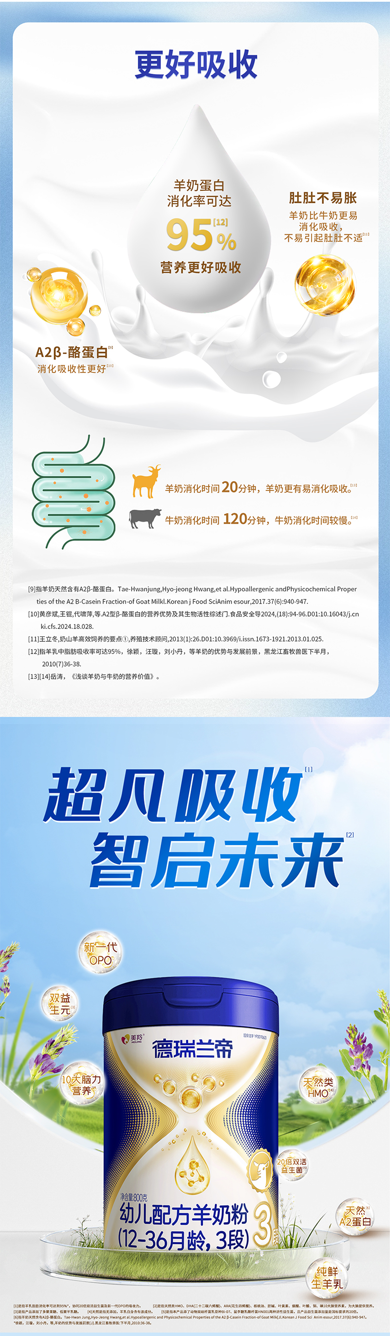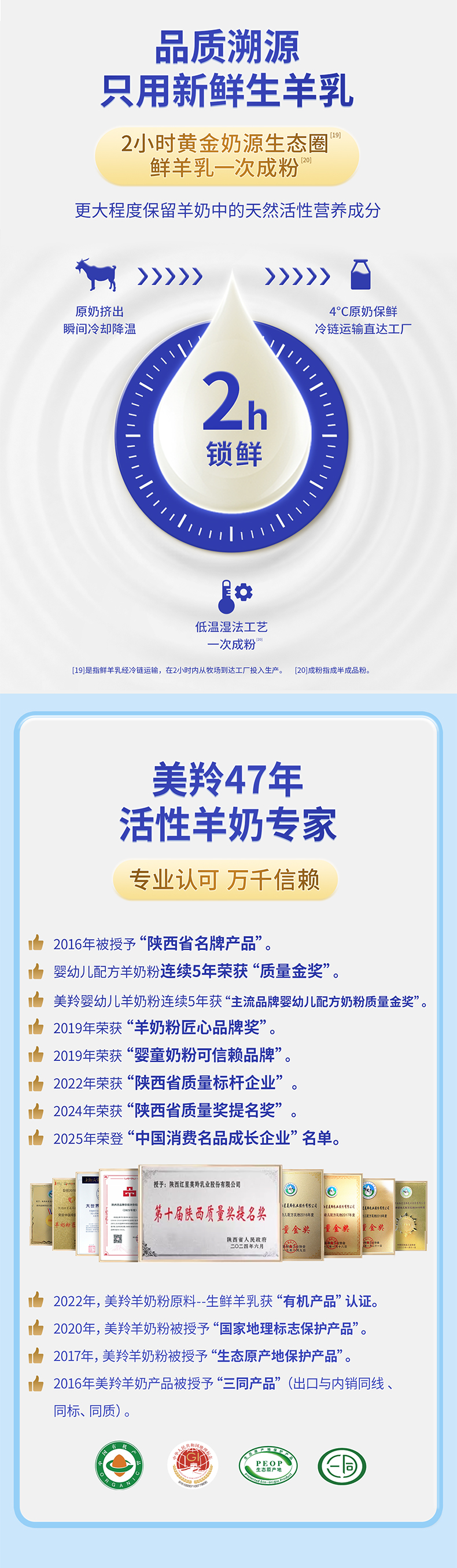 美羚羚恩贝贝婴幼儿1段,2段,3段配方羊奶粉800g*6罐