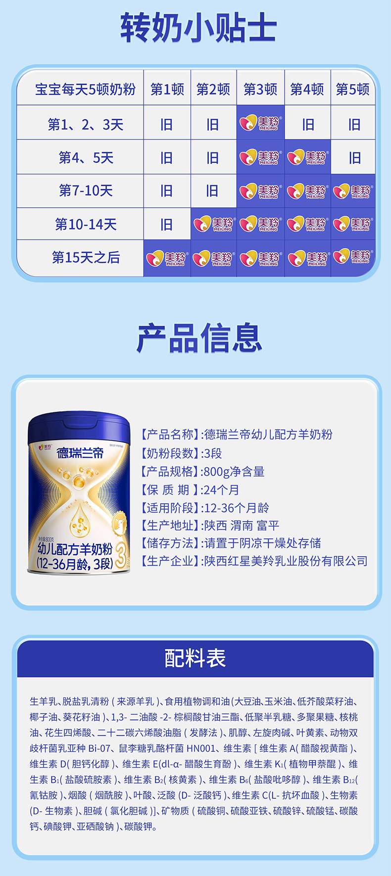 【会员专享】美羚德瑞兰帝婴幼儿1段,2段,3段配方羊奶粉400g罐