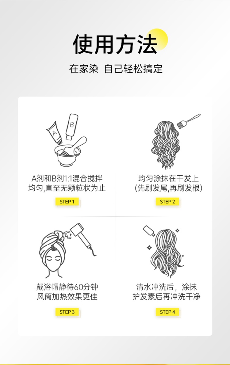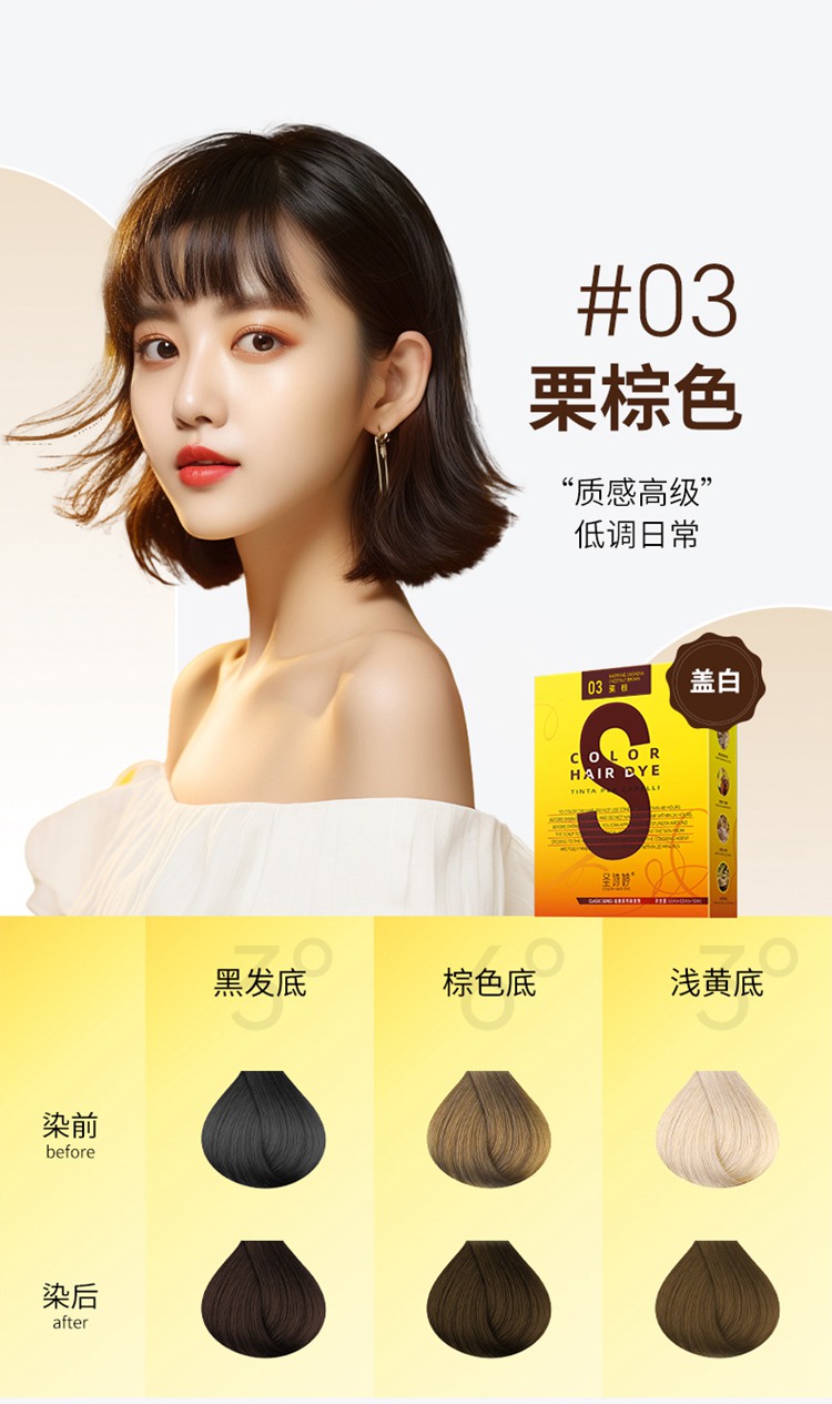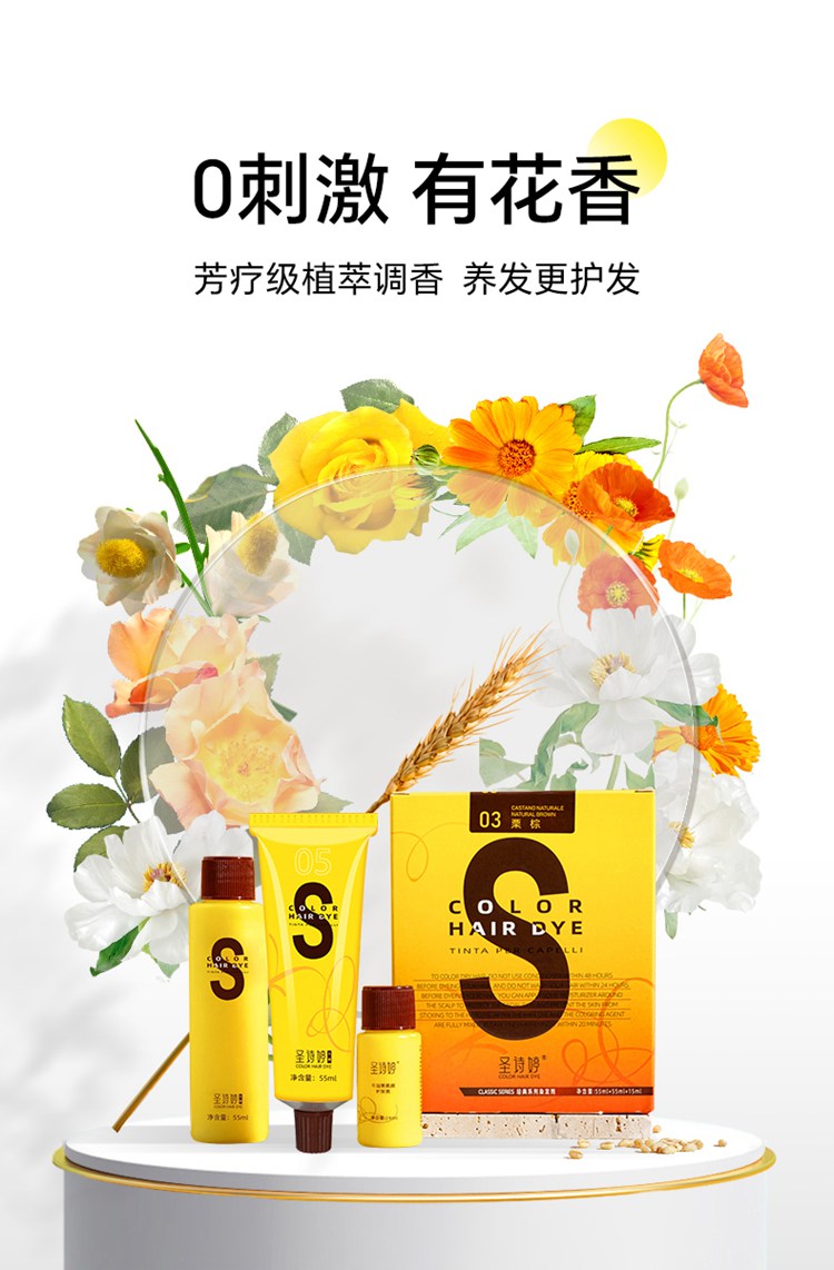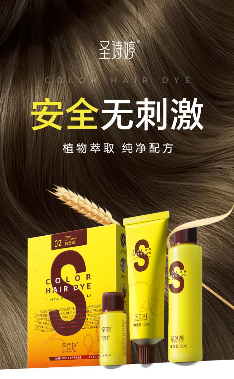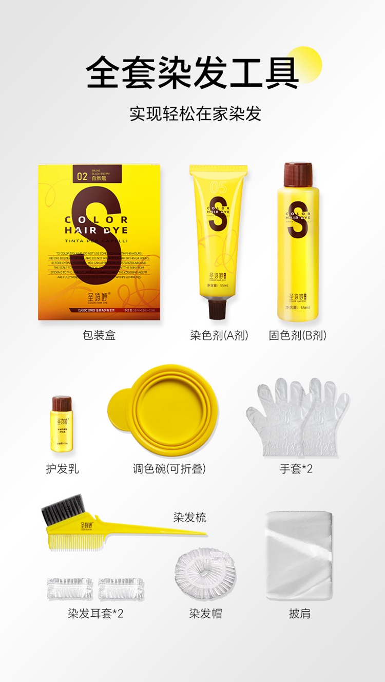 圣诗婷小黄盒经典染发膏纯植物不刺激盖白安全(赠:染发工具8件套+护发素15ml*2)