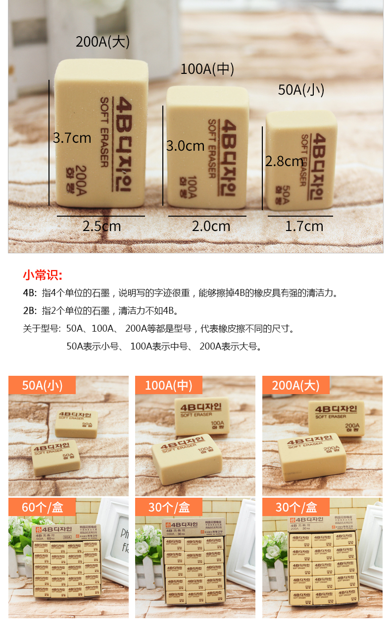 南韩花郎4B橡皮200AHL