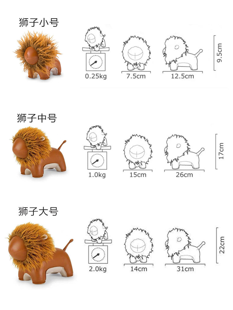 Zuny 动物手工缝制狮子摆件 狮子座礼物 生日礼物 家居摆件