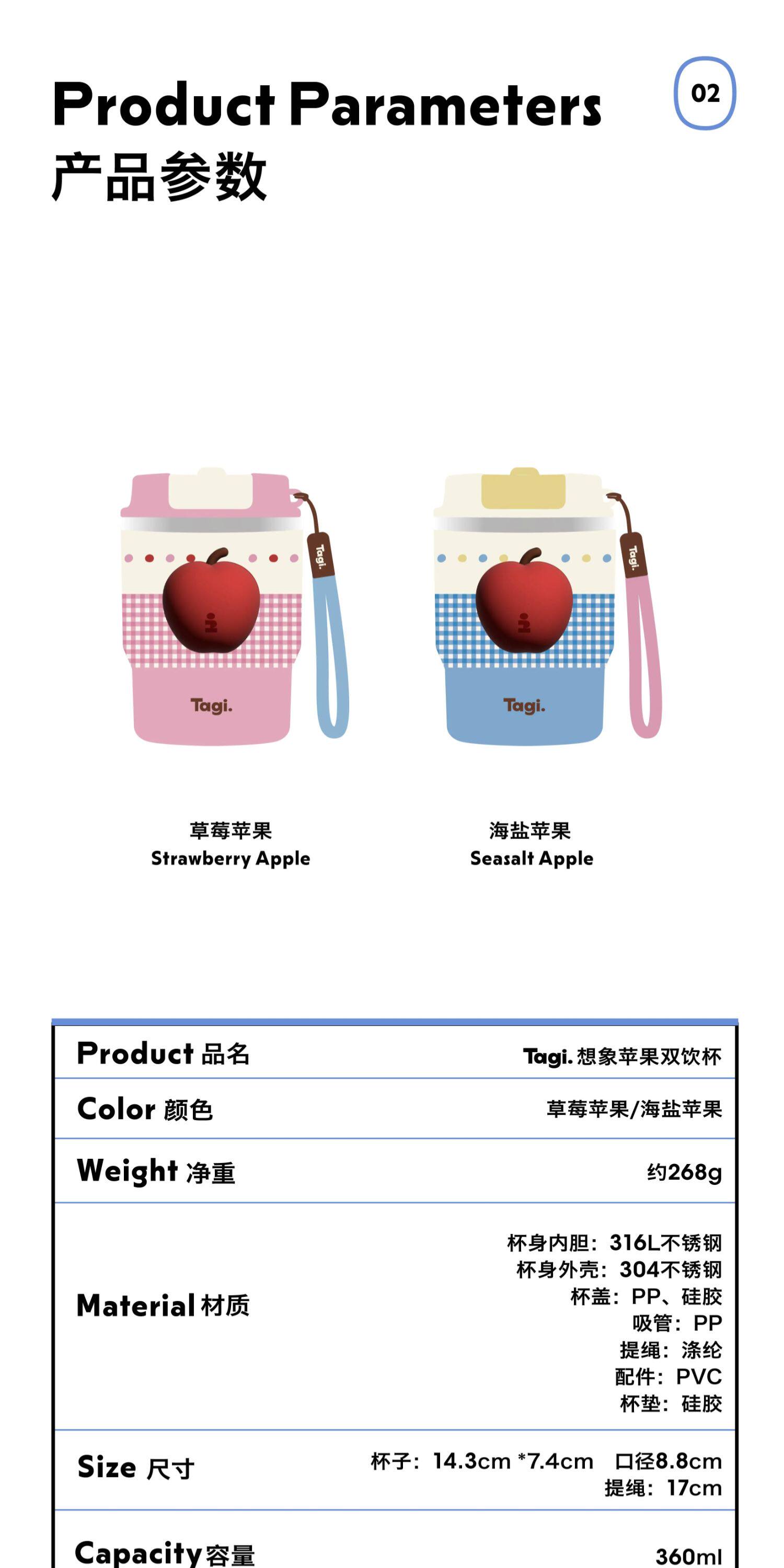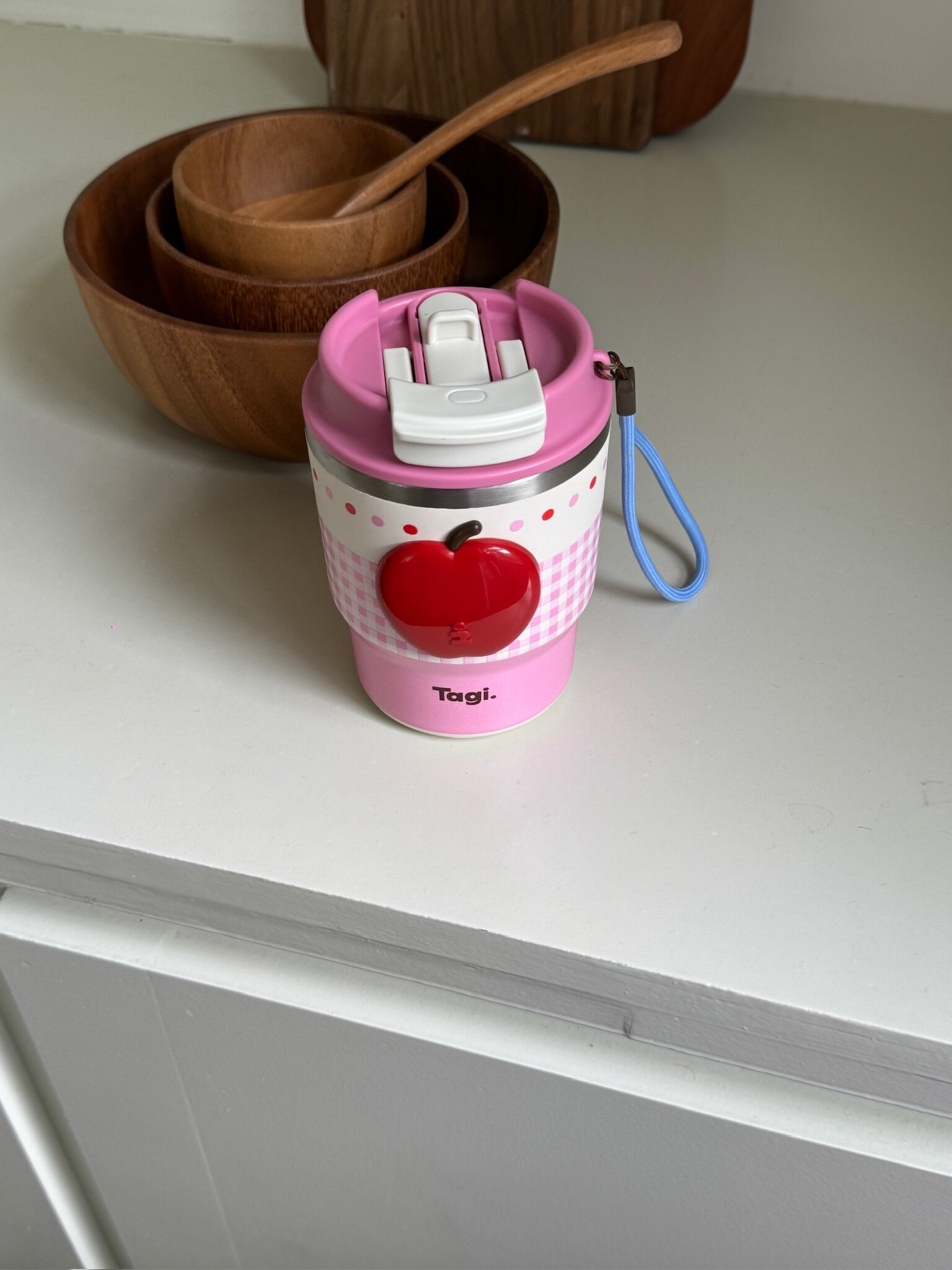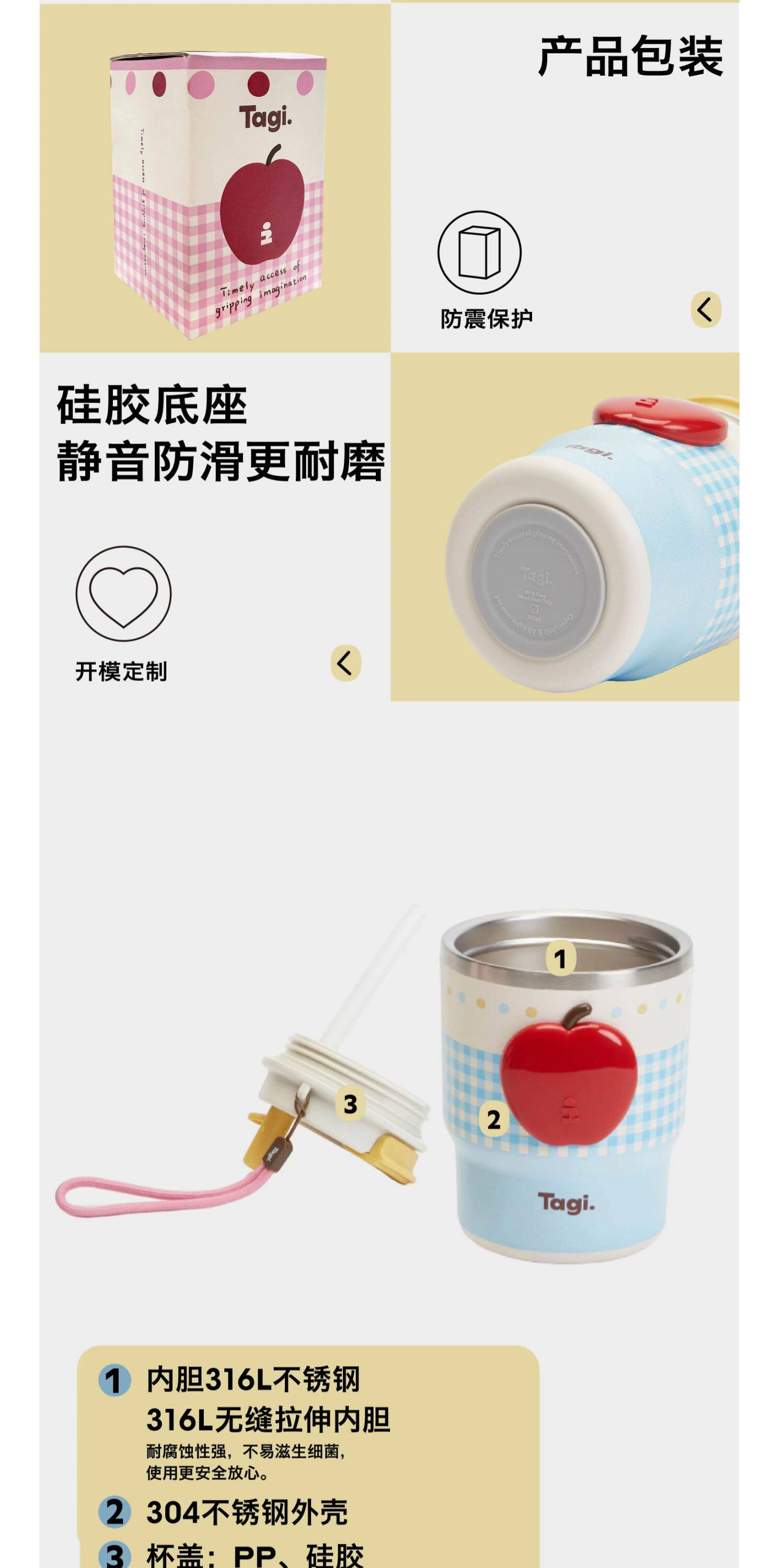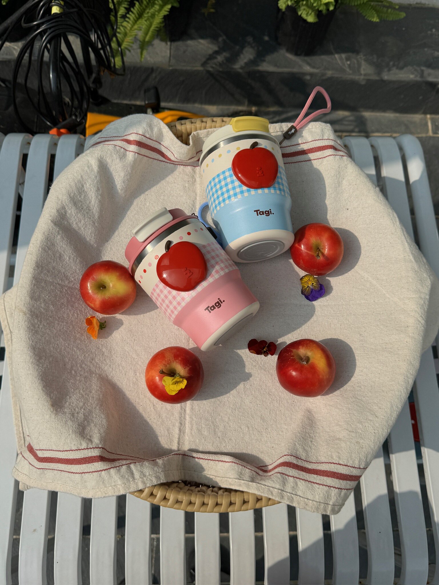 Tagi 想象苹果双饮吸管杯 便携手拎不锈钢随行水杯高颜值保温杯