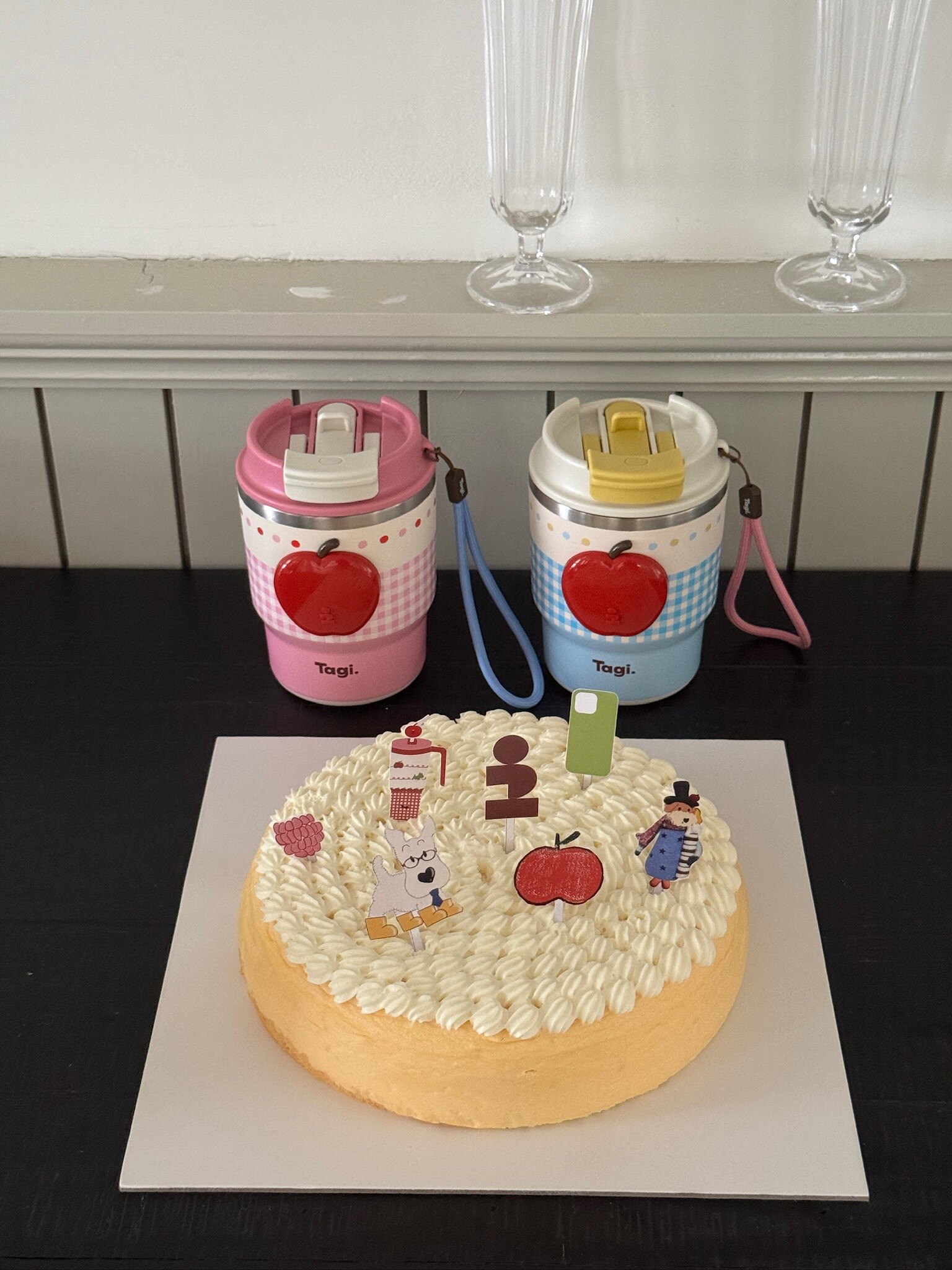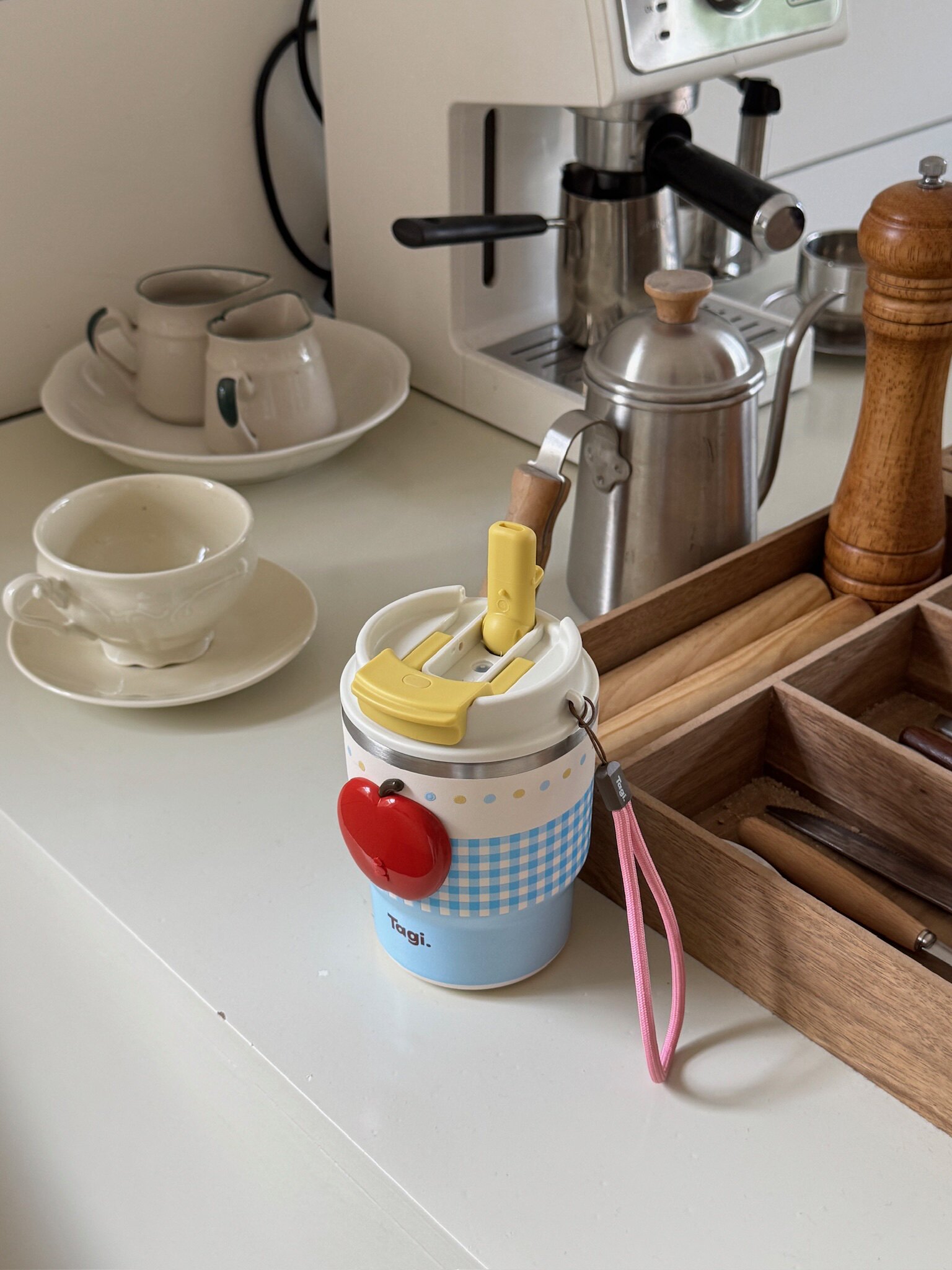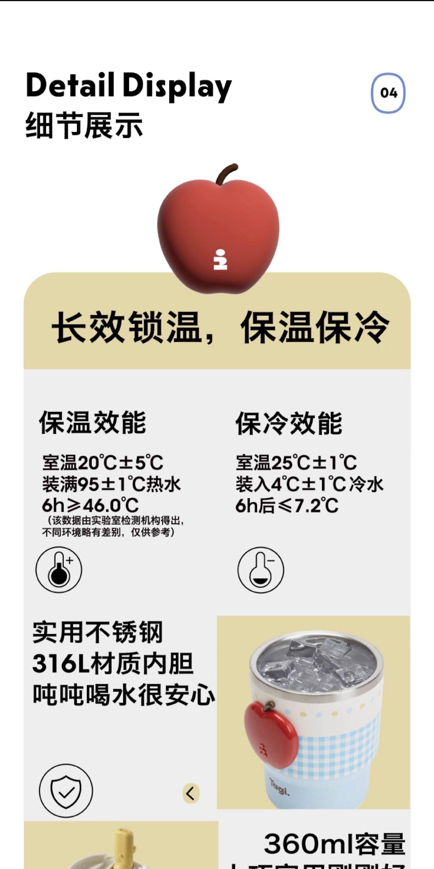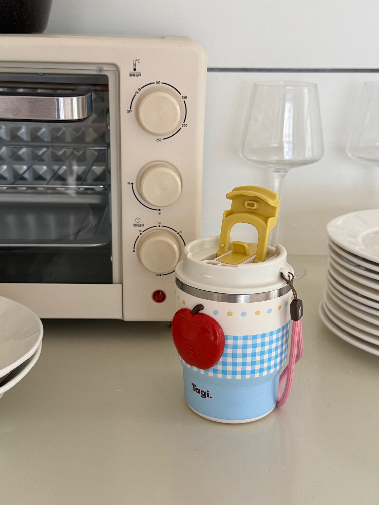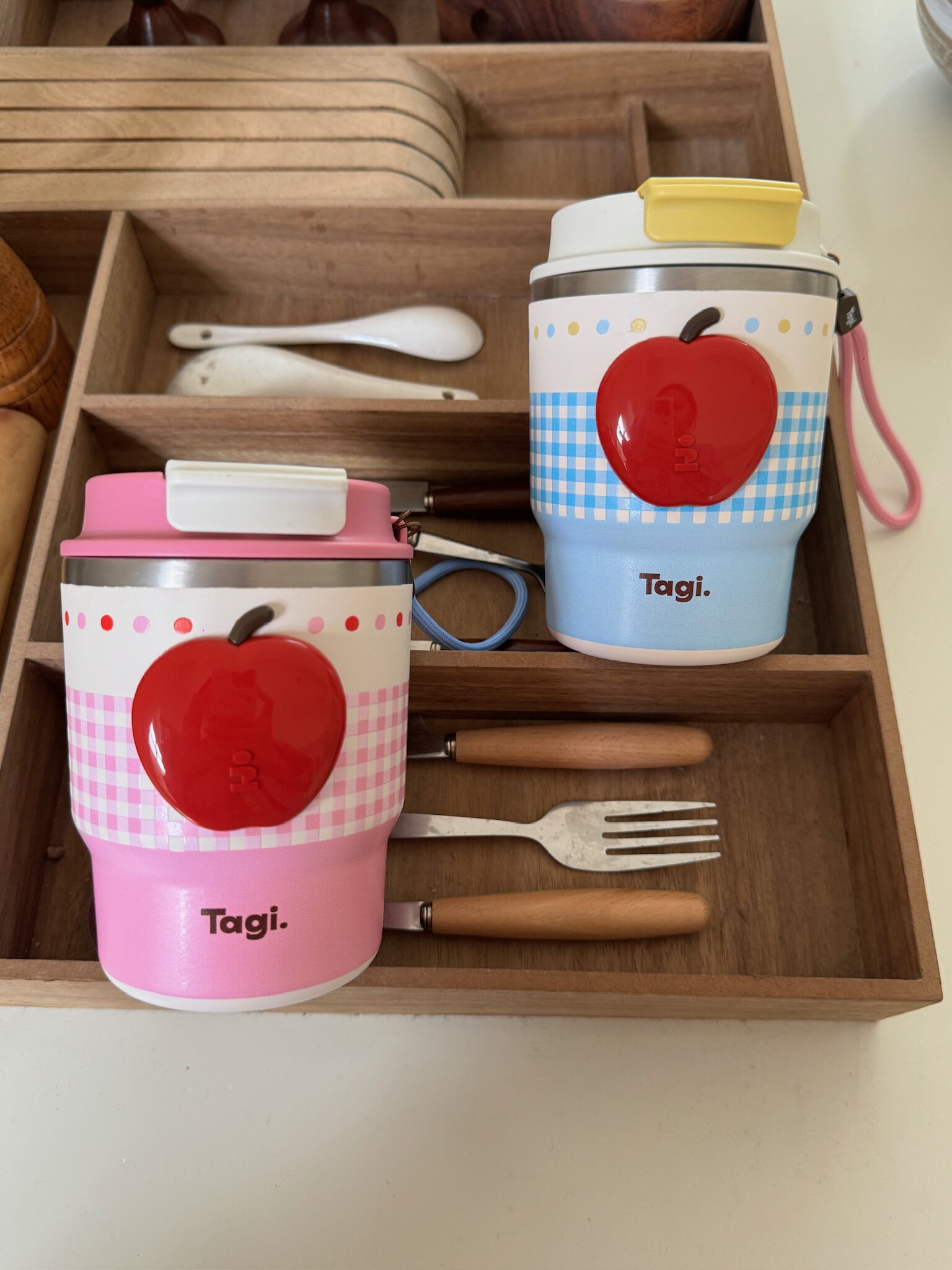 Tagi 想象苹果双饮吸管杯 便携手拎不锈钢随行水杯高颜值保温杯