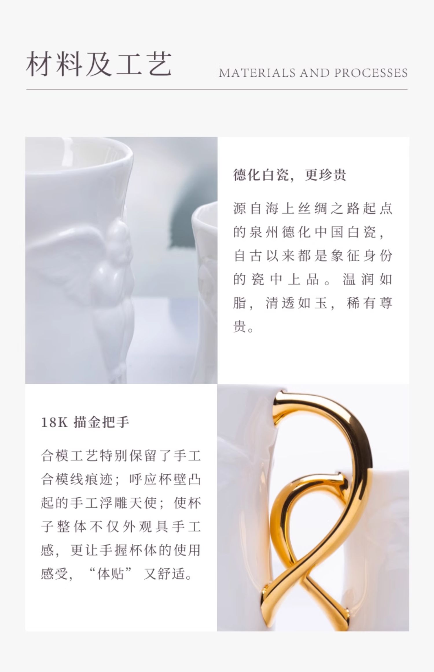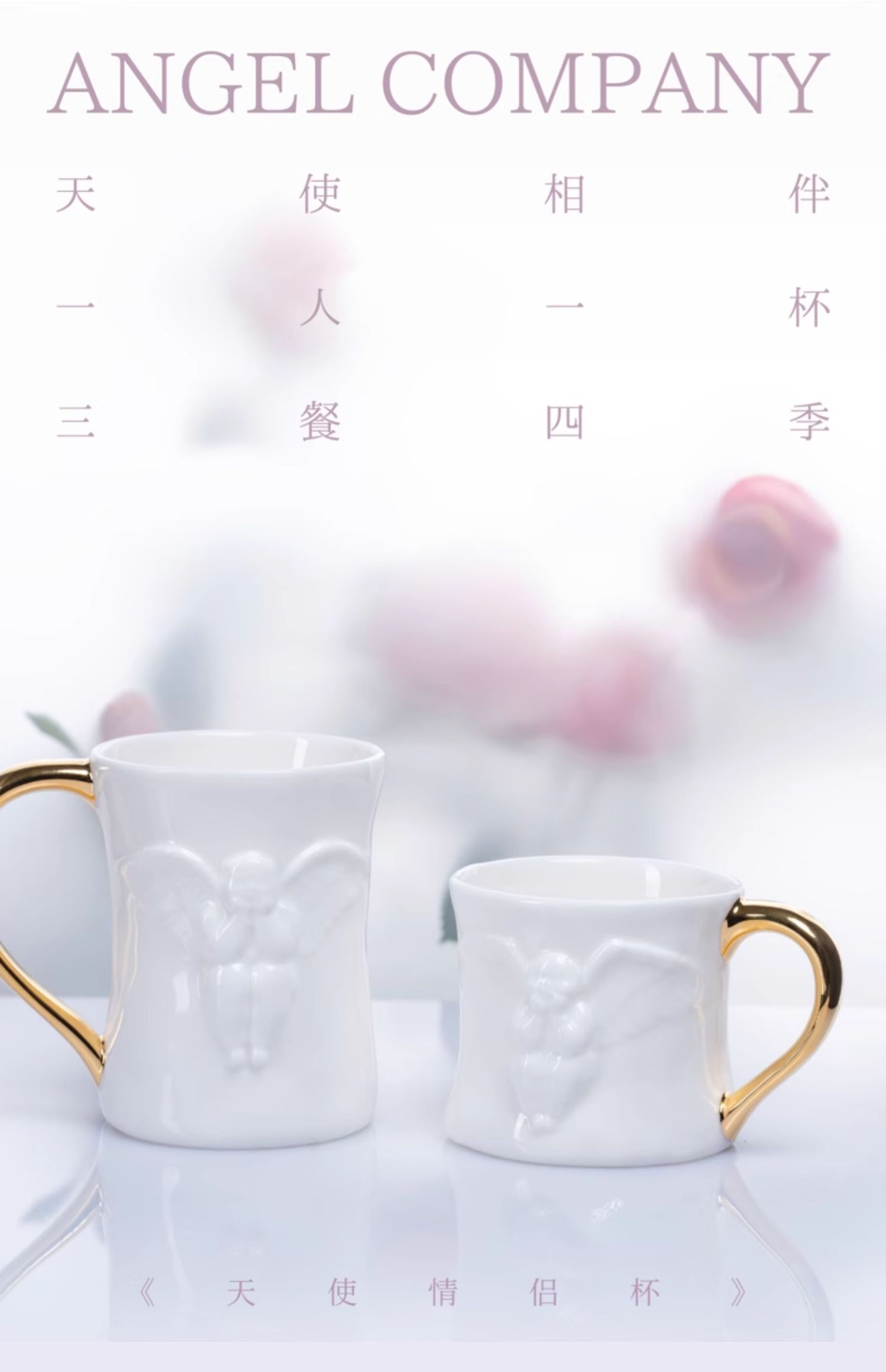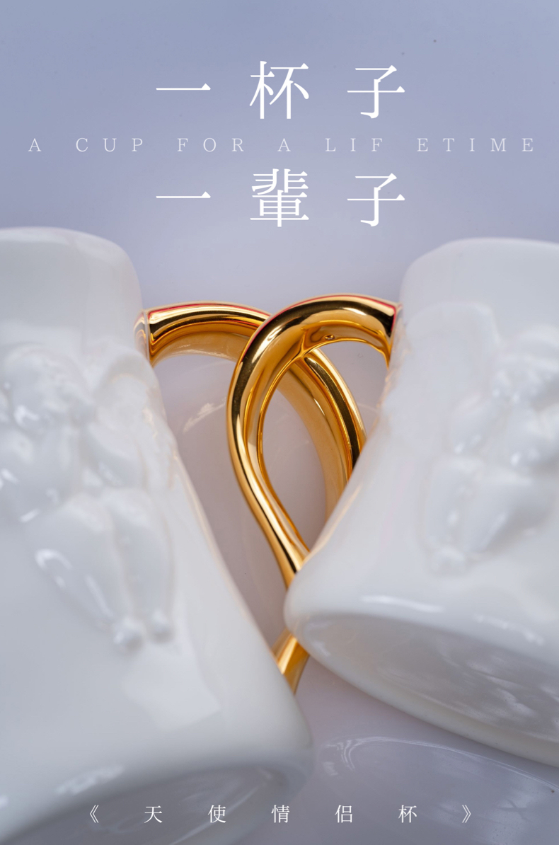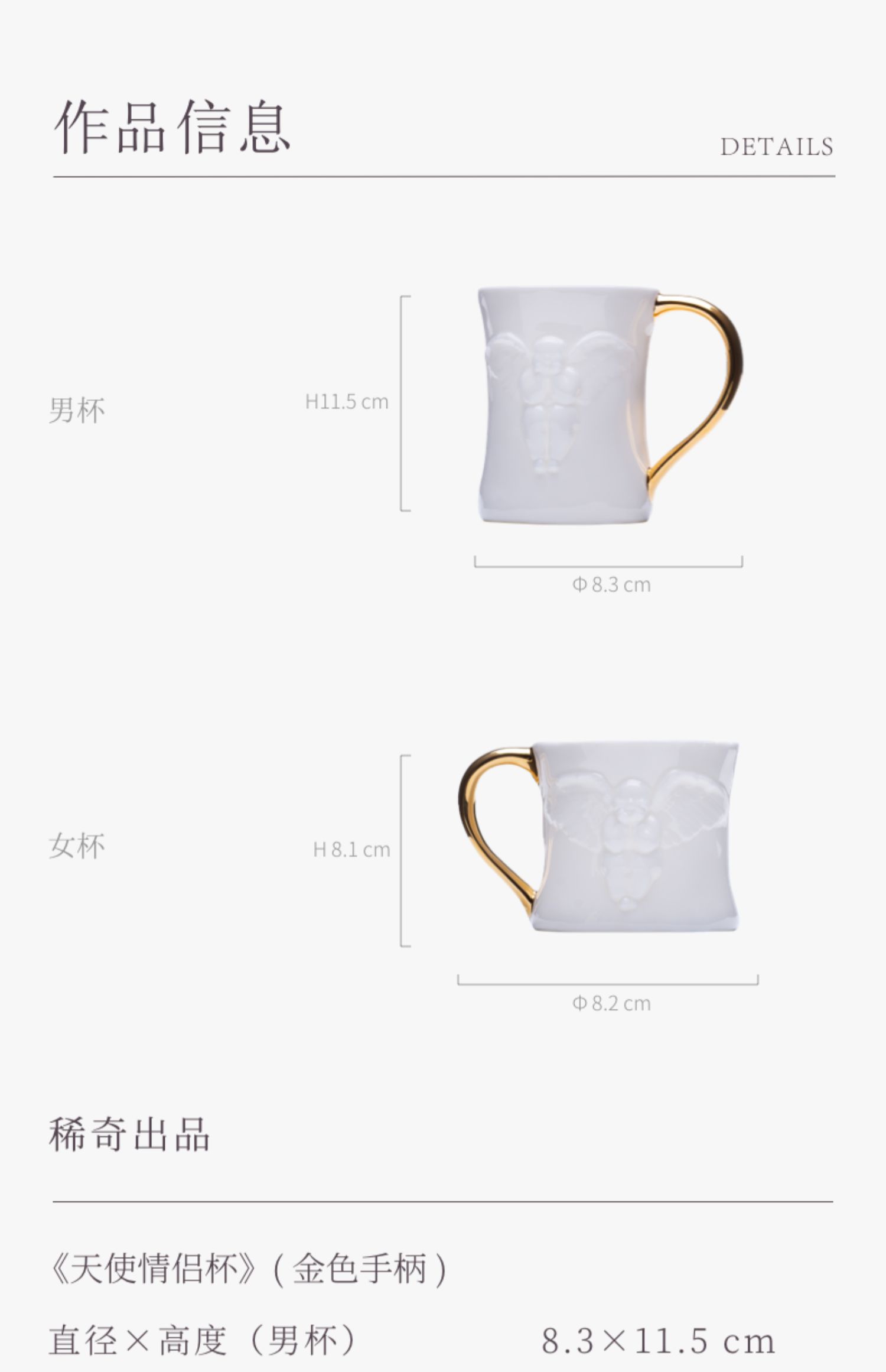 稀奇艺术 天使情侣杯 金色手柄2只礼盒装