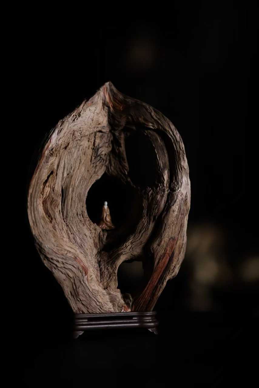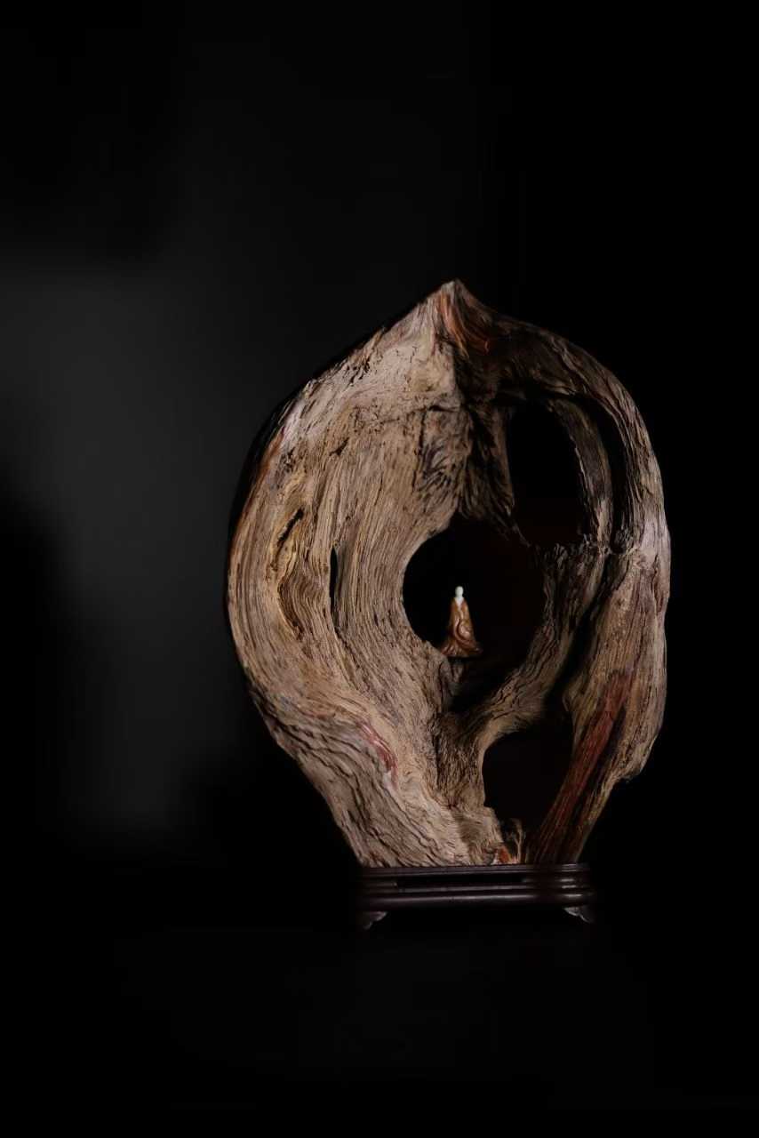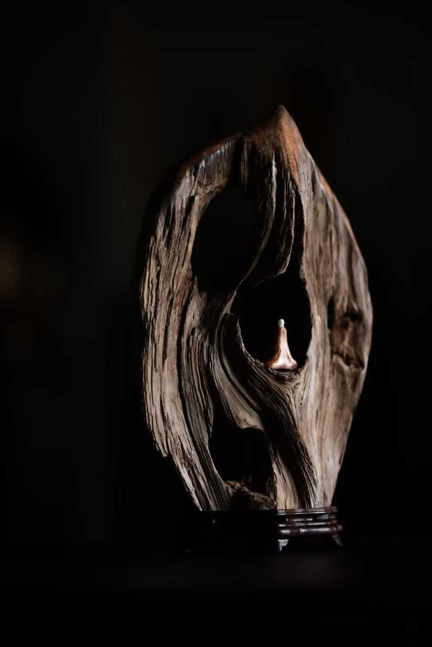 木纹如山势逶迤,鹿角琢无相之境。肌理似水波流转,空容万象而不执。供于茶席书房,观空即有,照见本心自在。