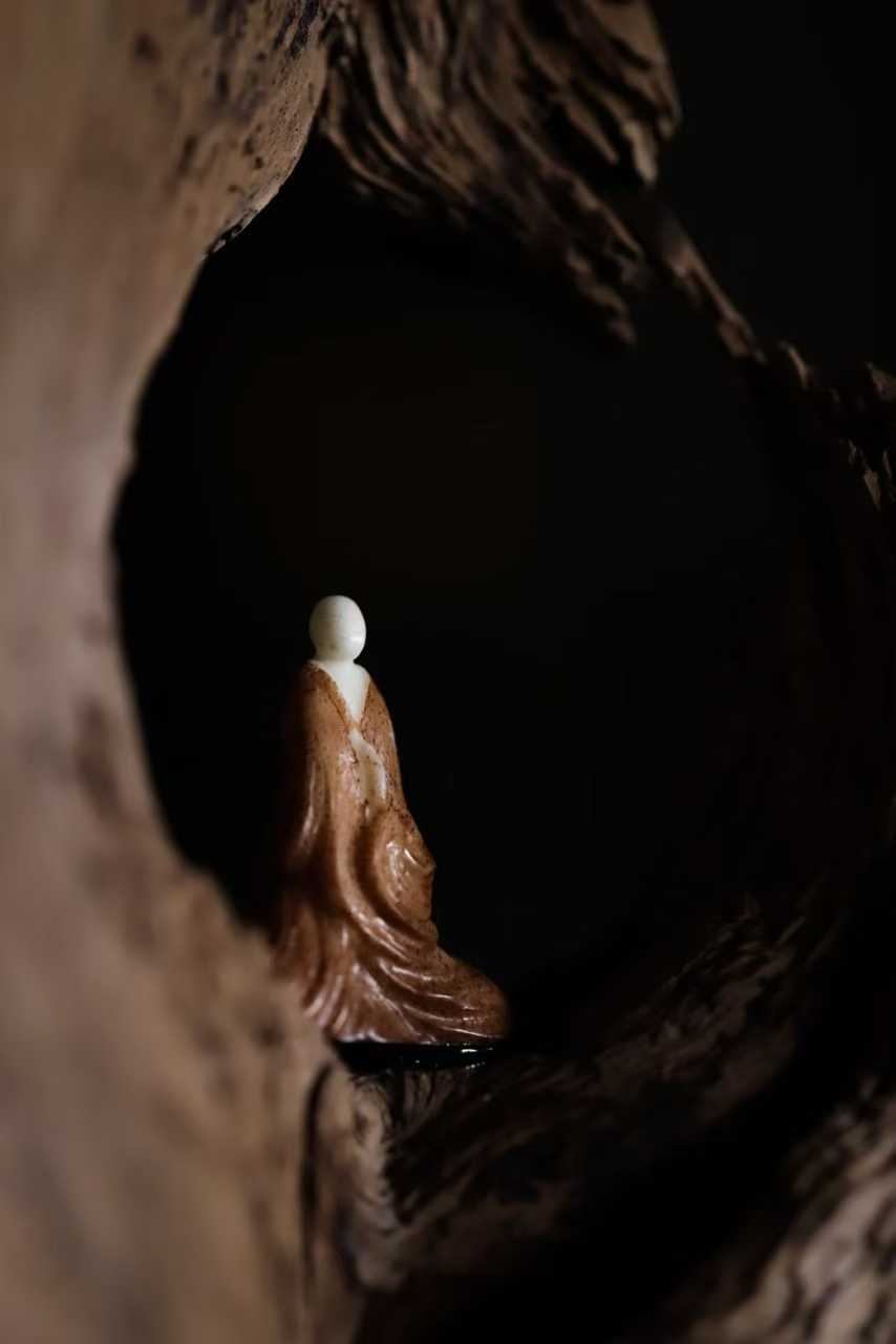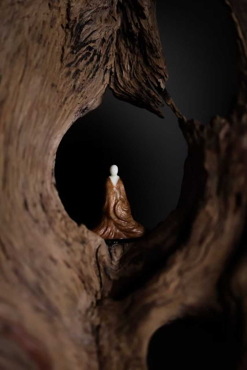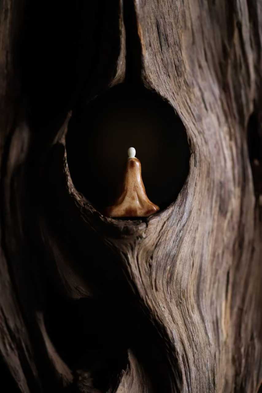 木纹如山势逶迤,鹿角琢无相之境。肌理似水波流转,空容万象而不执。供于茶席书房,观空即有,照见本心自在。
