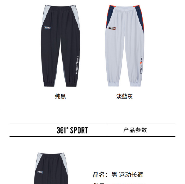361度宽松男裤新品2022春学生休闲裤拼色男子运动长裤552219017b