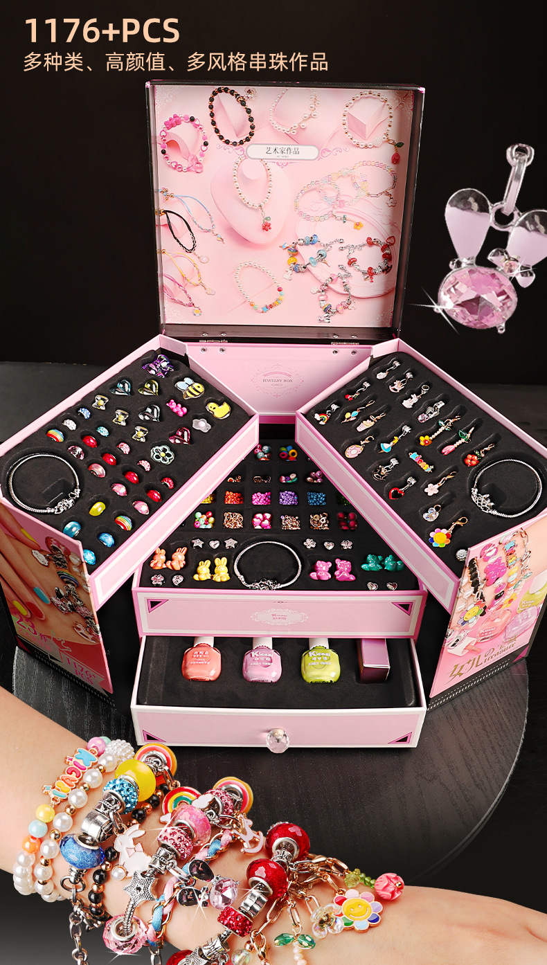 凯卡西女儿的宝藏公主首饰盒水晶串珠手项链礼盒儿童生日六一礼物
