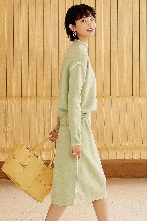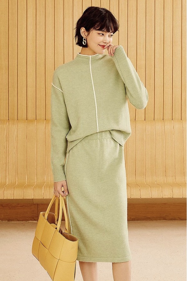 Y.SING衣香丽影 气质休闲款针织上衣半裙套装 15386