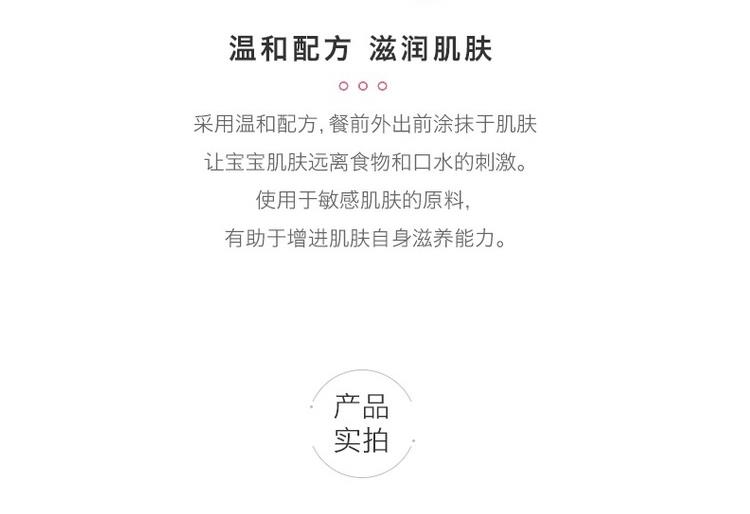 植物精华萃取的天然膏体,保护宝宝的唇周肌肤,拒绝由于食物与口水的侵蚀所带来的肌肤问题,保护宝宝的每一处皮肤~