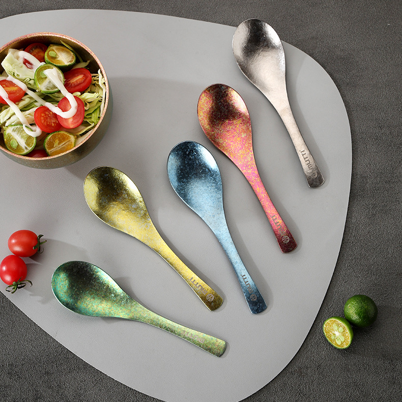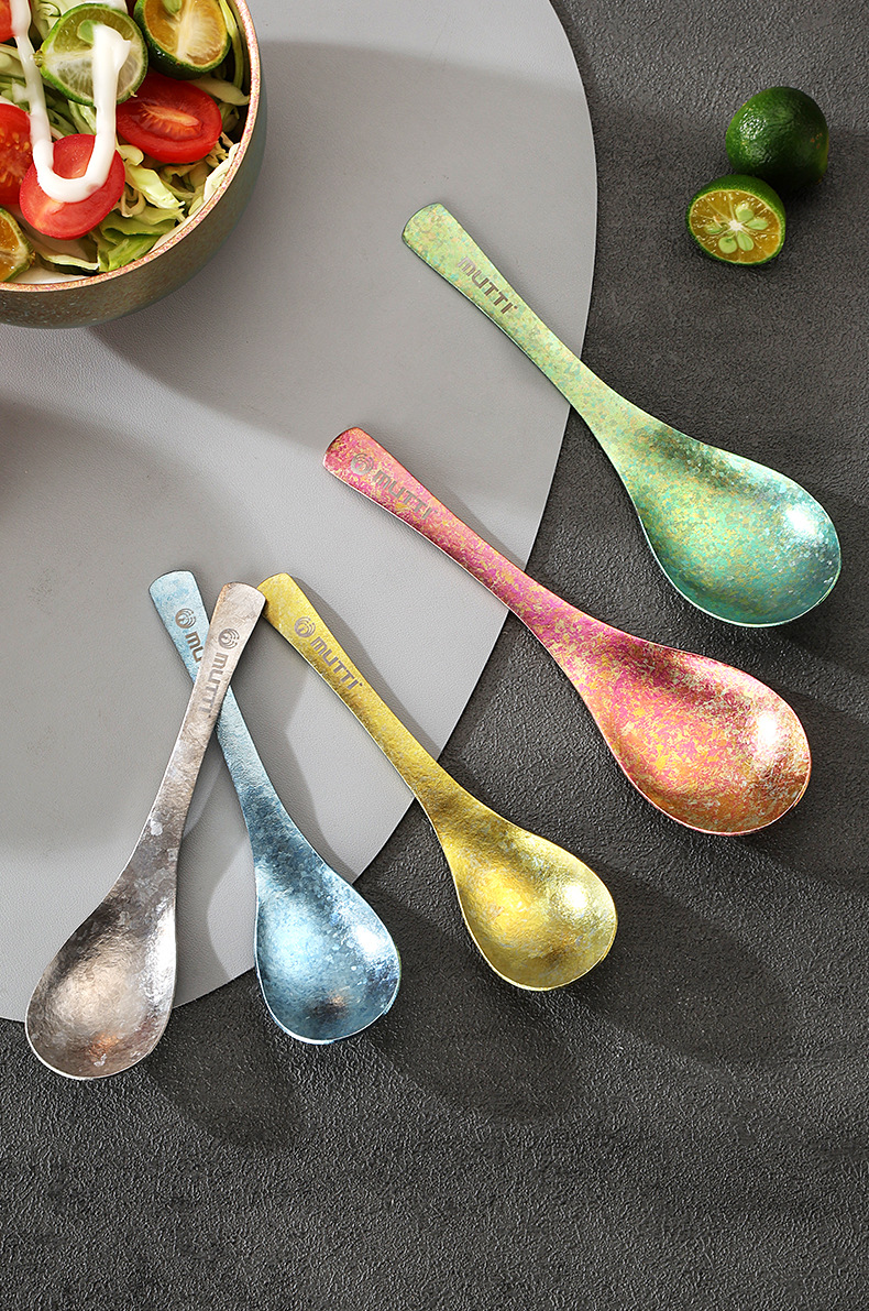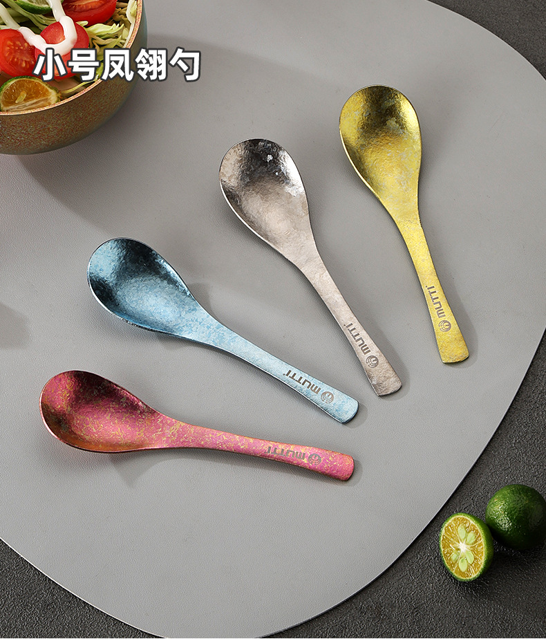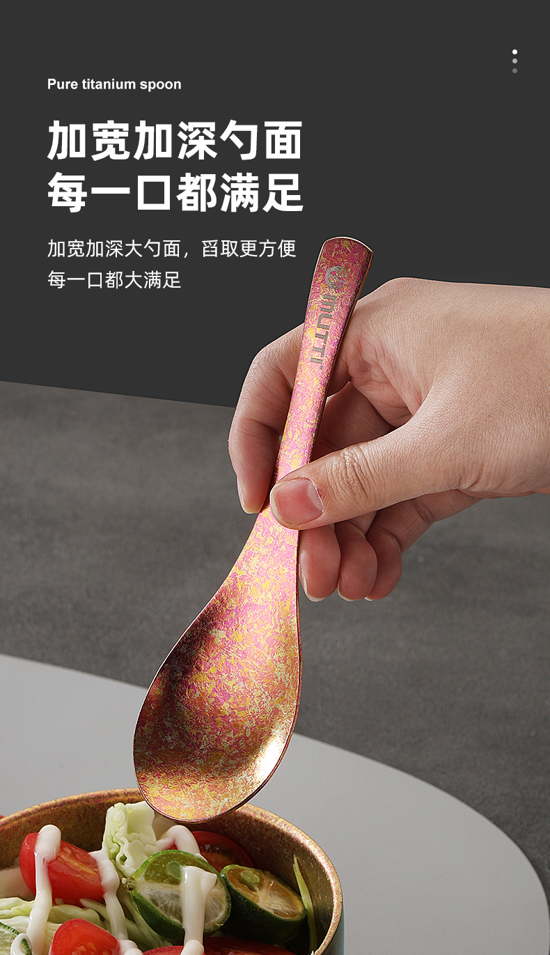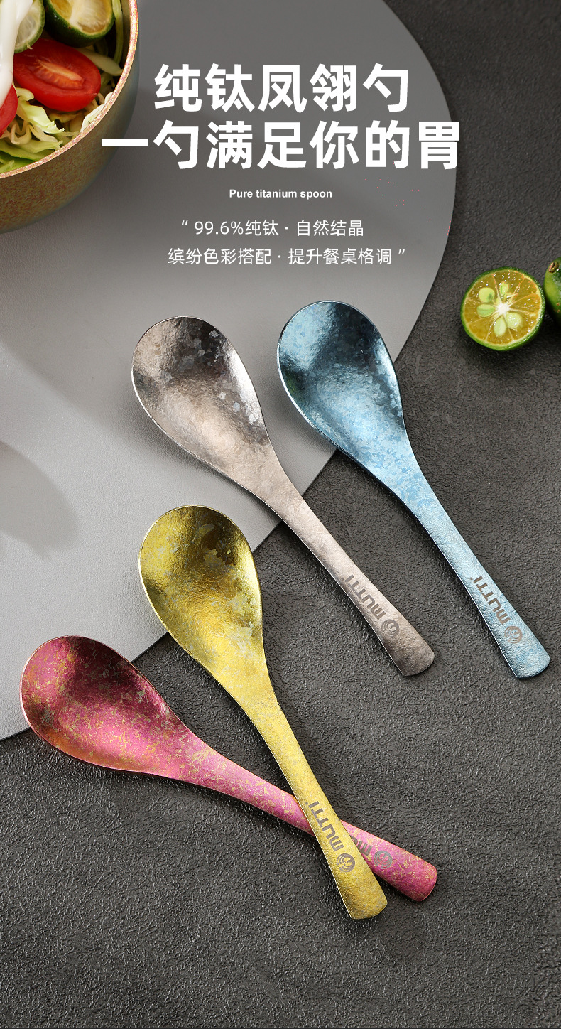 【积分兑换】全钛汤勺中式冰花家用露营汤匙钛合金调羹便携吃饭勺餐具