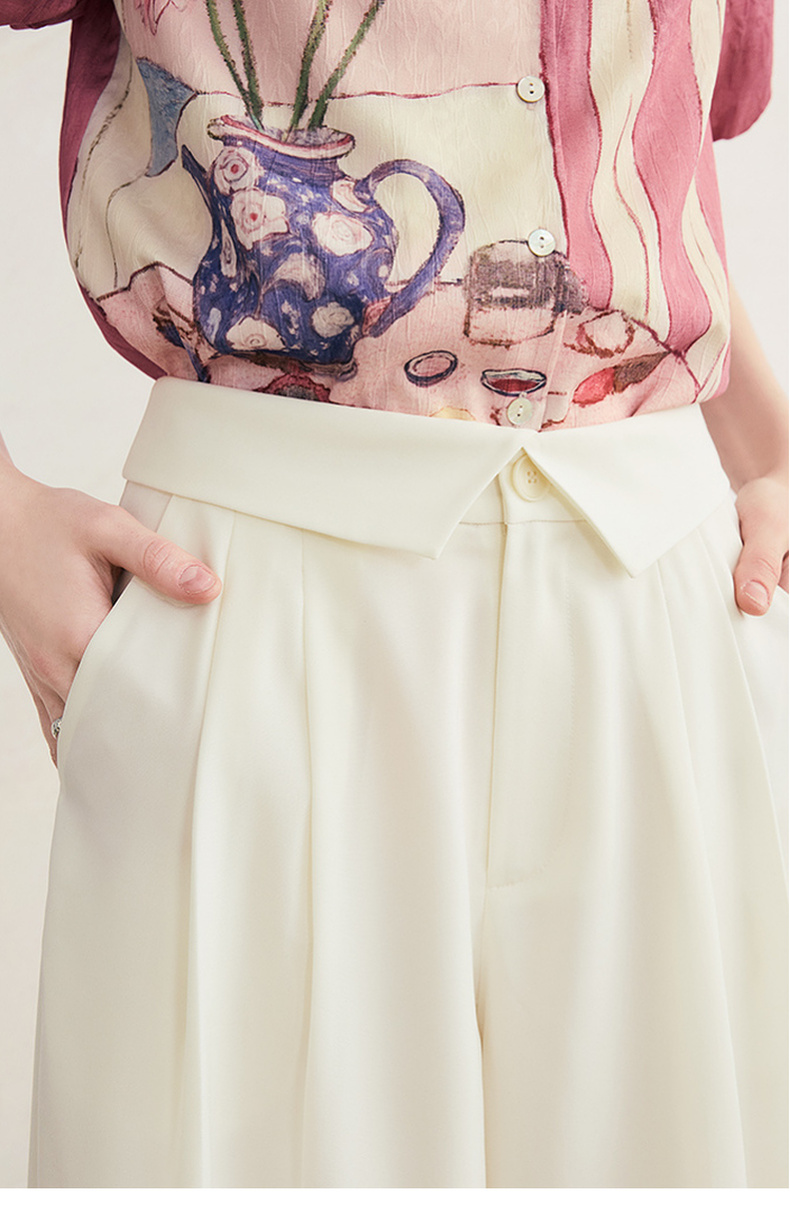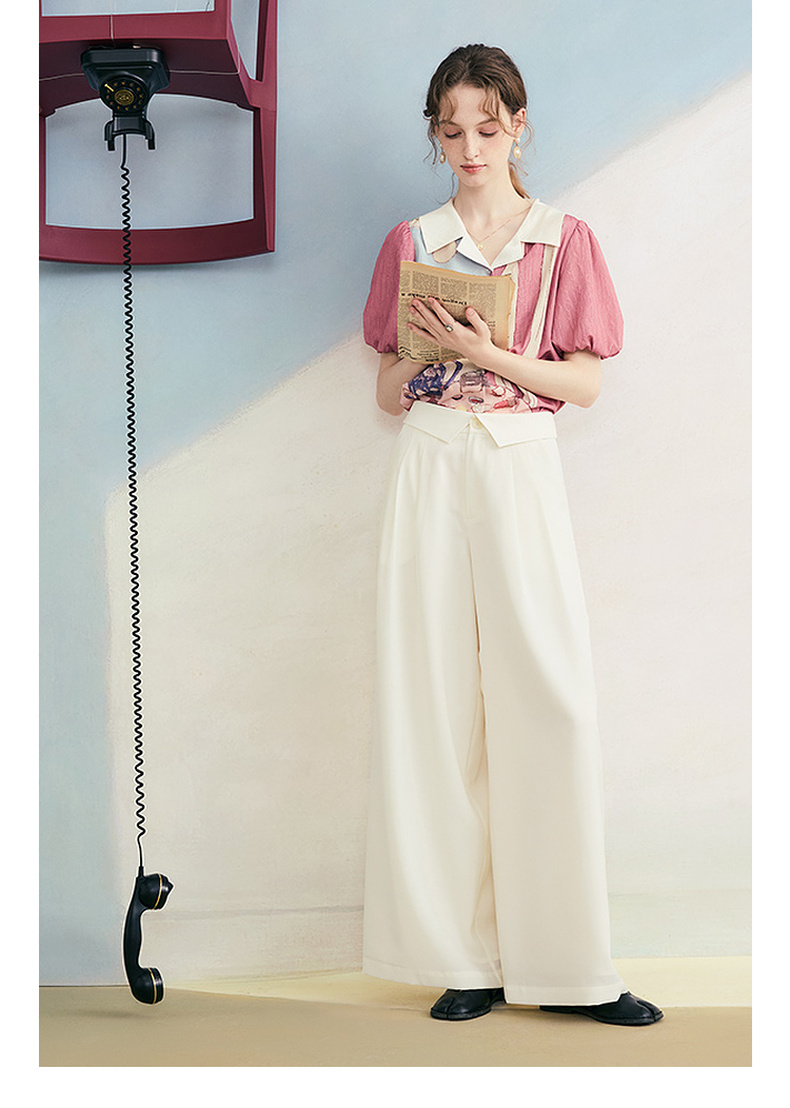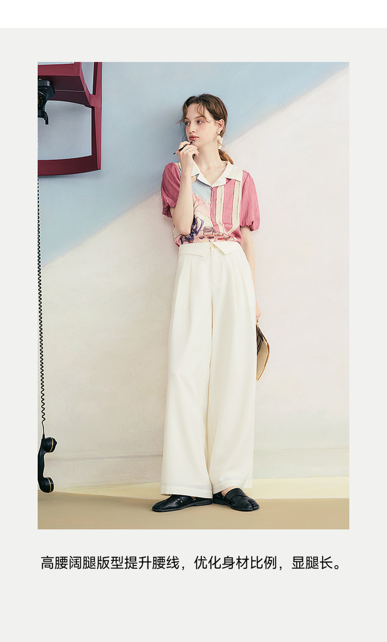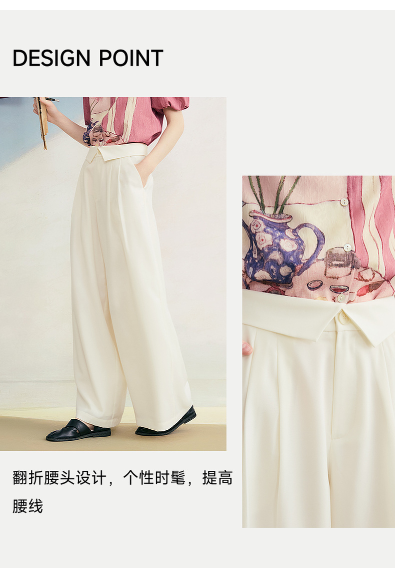 两三事 月糖溶吻 2025夏季新款折翻边米色高腰阔腿休闲裤女宽松