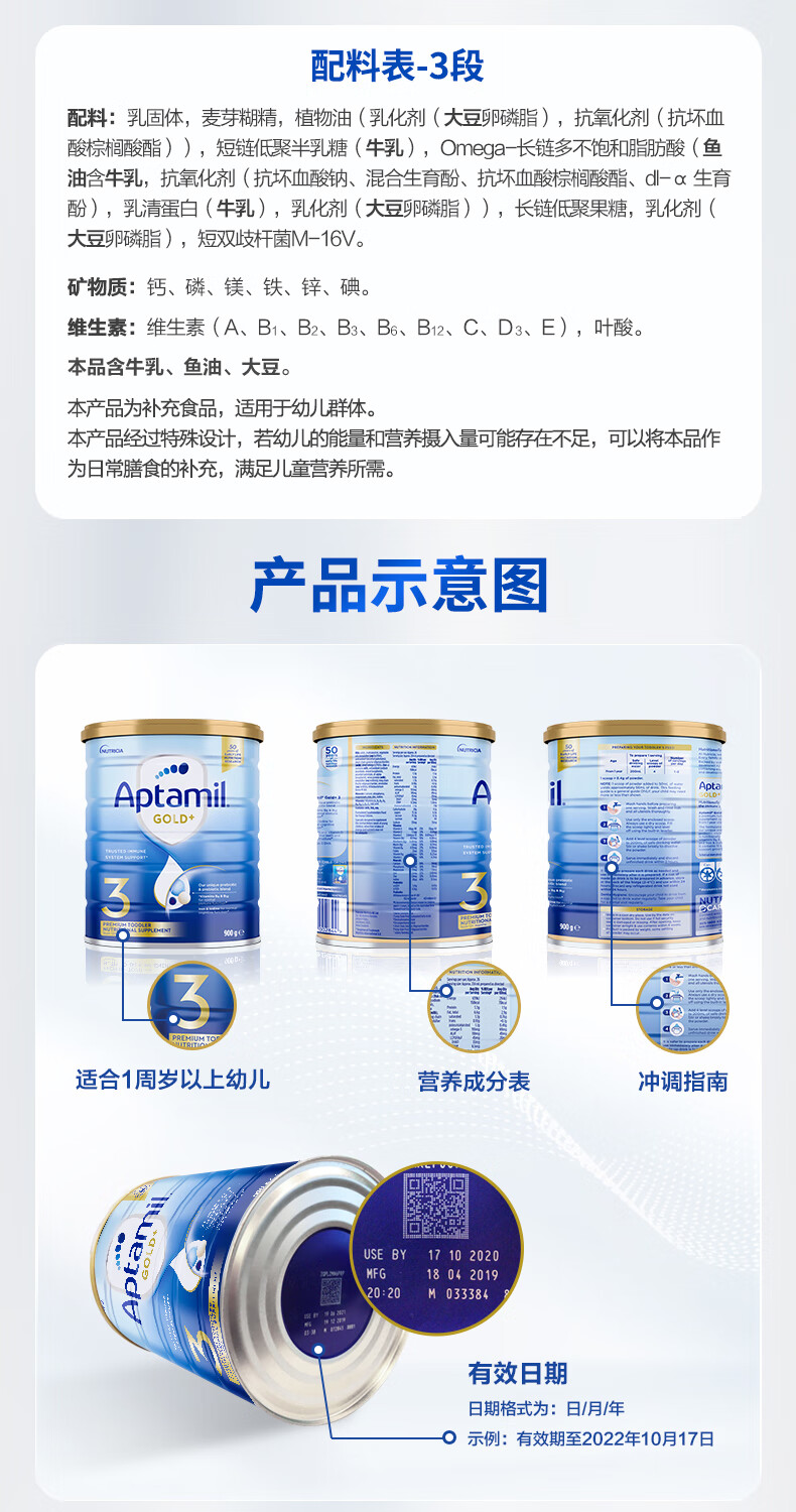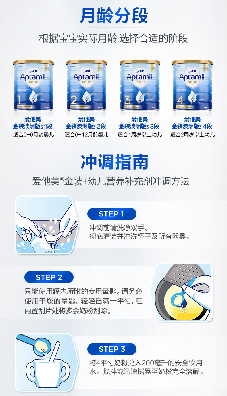 【保税备货】澳洲爱他美金装加强婴幼儿奶粉3段900g
