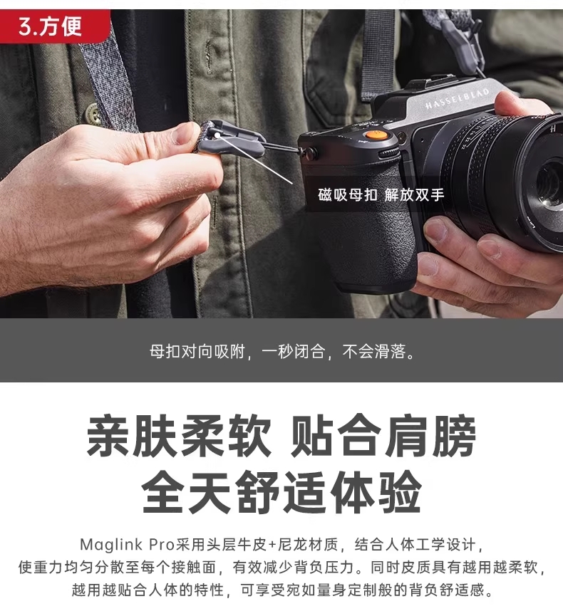 Ulanzi优篮子 FALCAM小隼Maglink磁吸快拆相机背带适用索尼佳能尼康富士相机肩带挂绳斜挎减压单反微单快扣