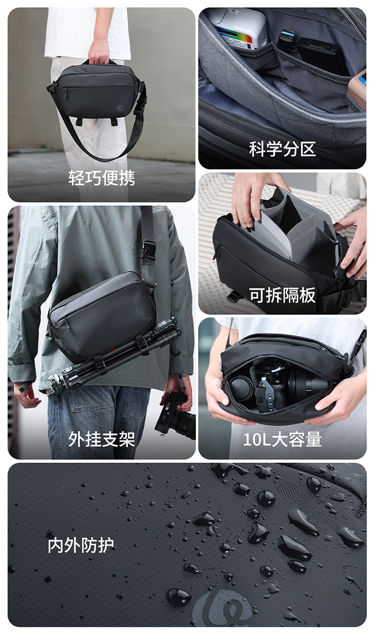 Ulanzi优篮子PB038摄影相机包城市系列旅行胸包V2大容量通勤休闲时尚斜挎包防泼水耐脏男生学生时尚单肩包