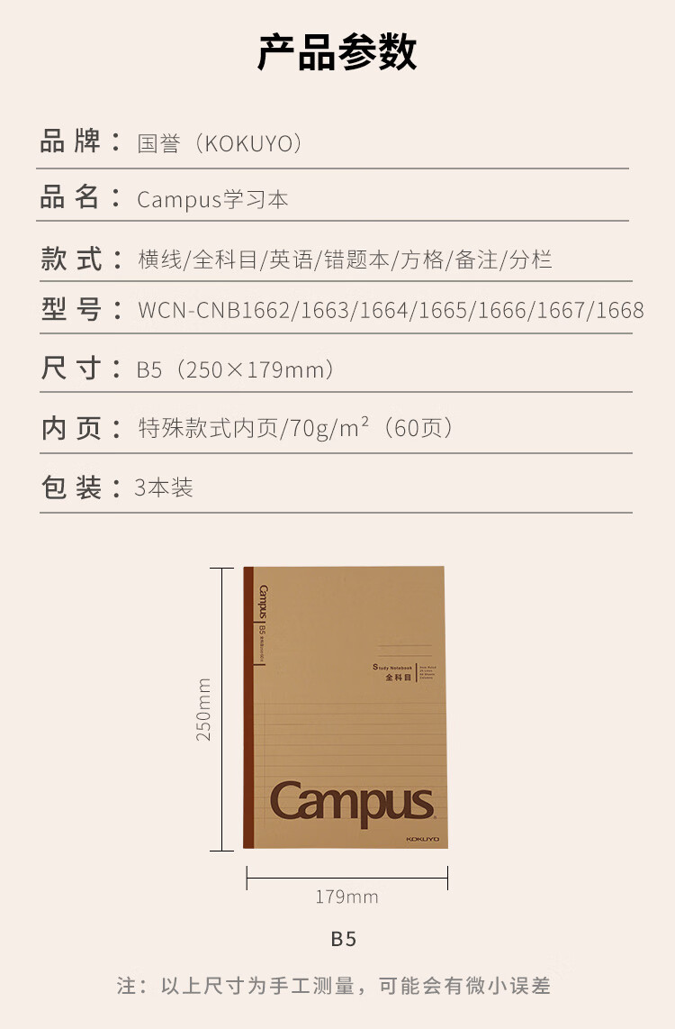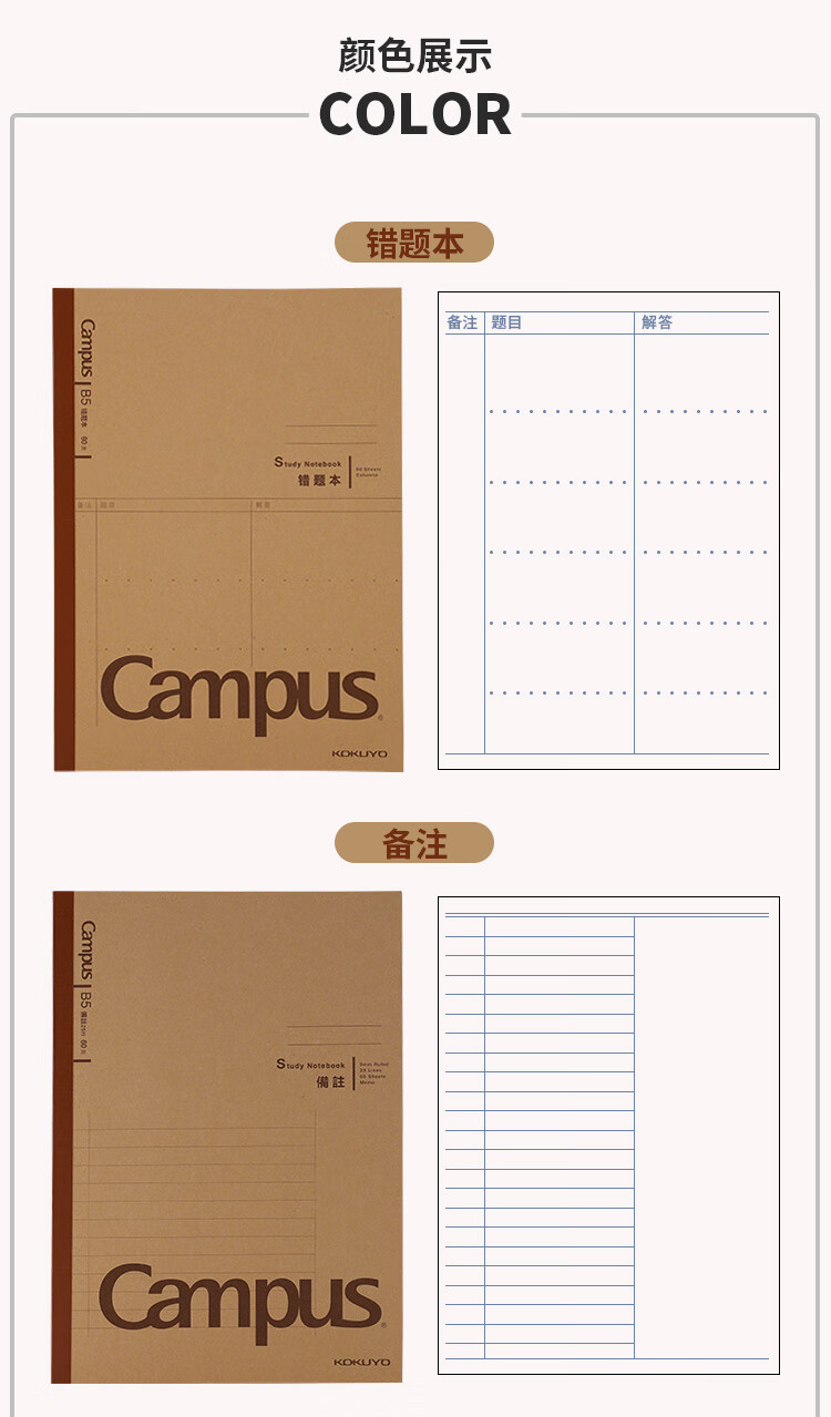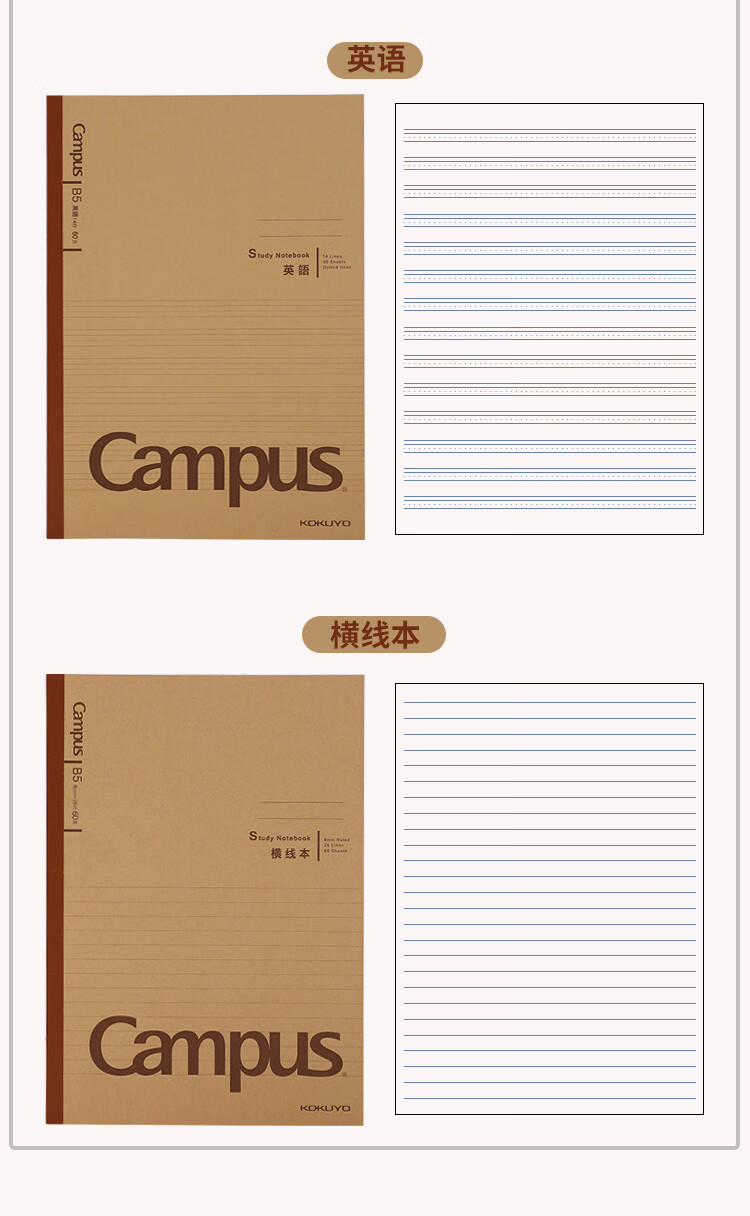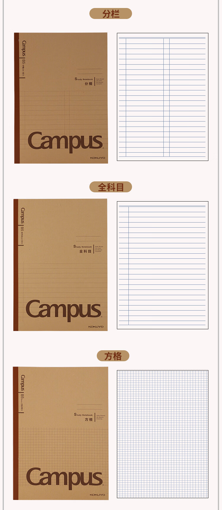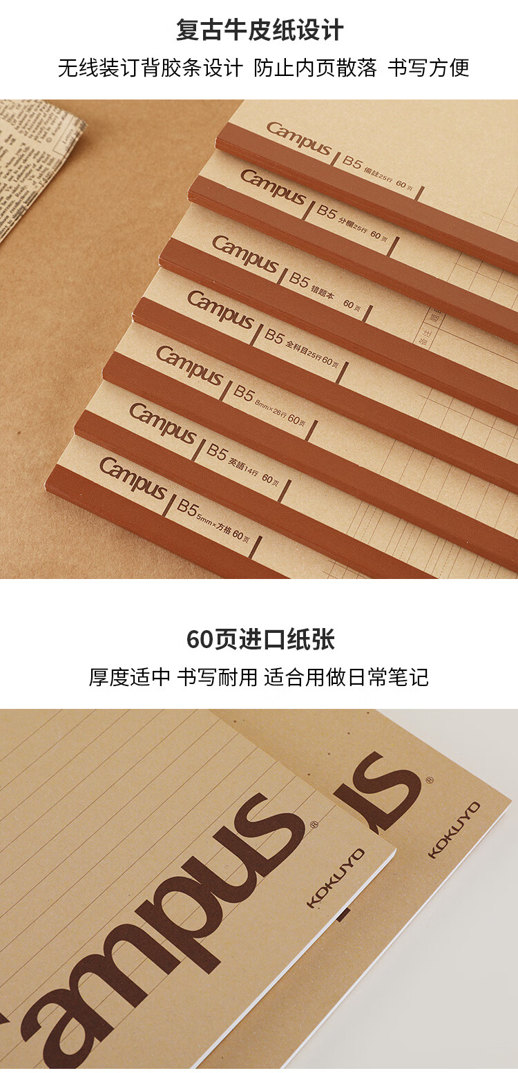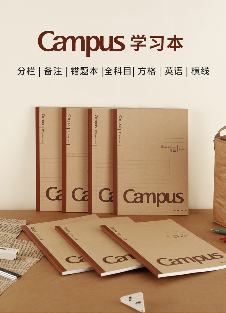 国誉CAMPUS牛皮纸笔记本分科目学习本中小学生用高效记笔记b5本子记事本