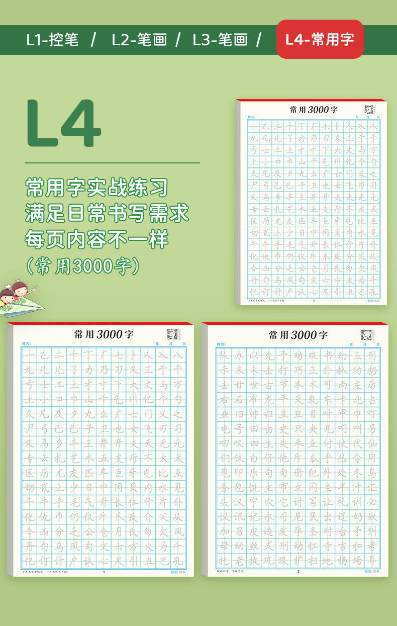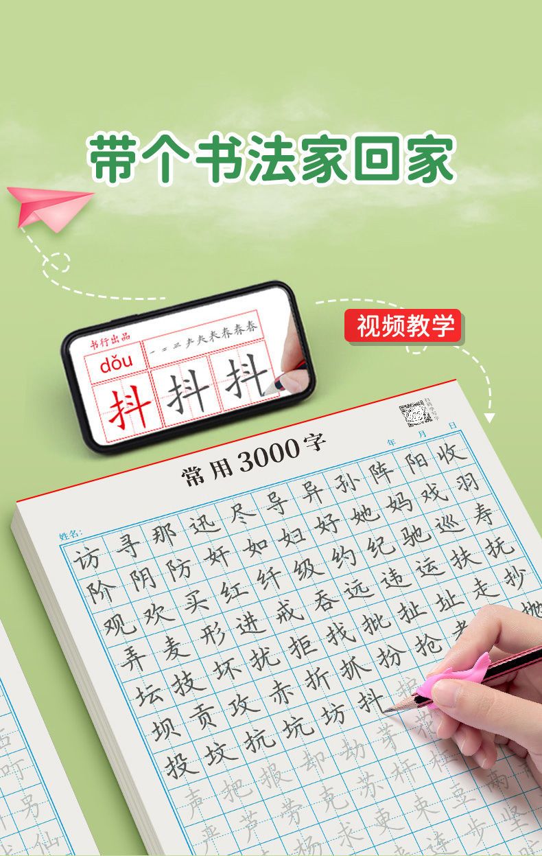 常用3000字通用版楷书入门基础练习硬笔练字帖初学者从控笔到笔画偏旁在练习常用3000字硬笔书法用纸