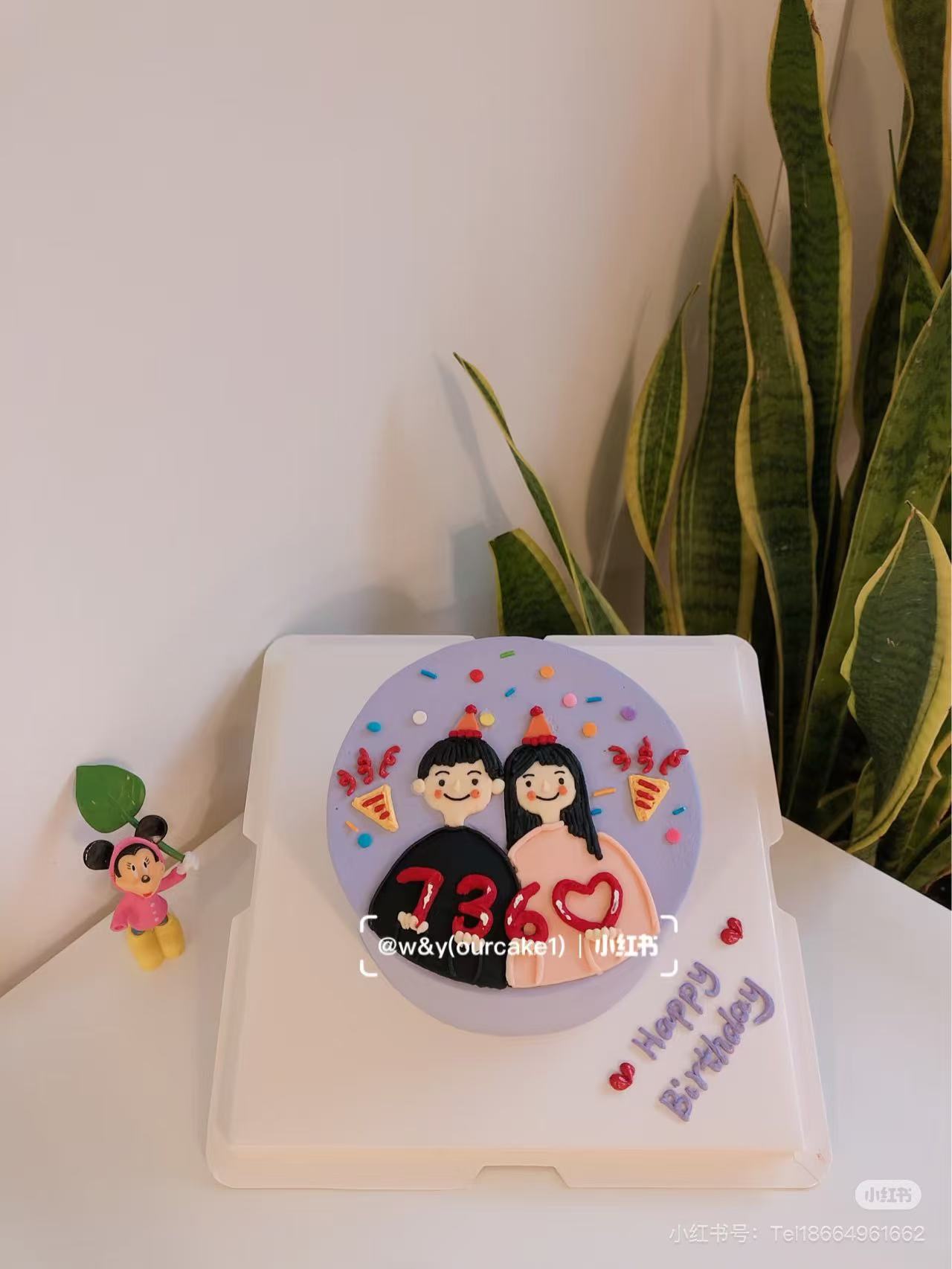 情侣手绘纪念日蛋糕 -低糖处理无添加