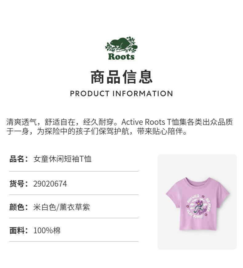 【2件9折】【ROOTS】女童休闲短袖T恤
