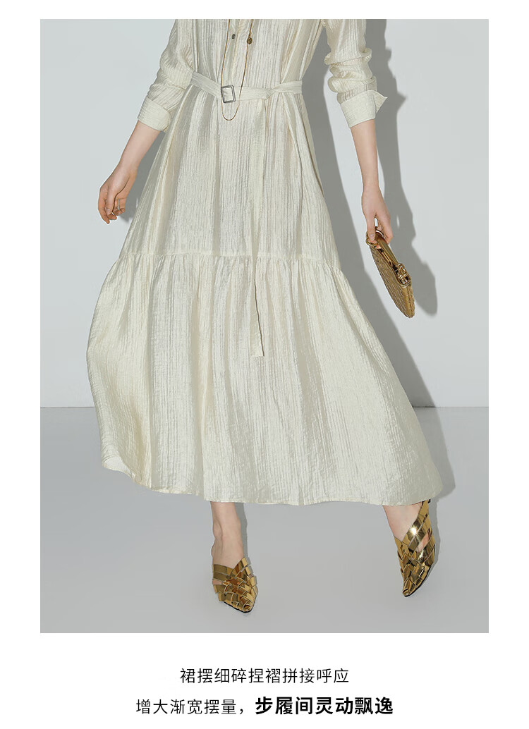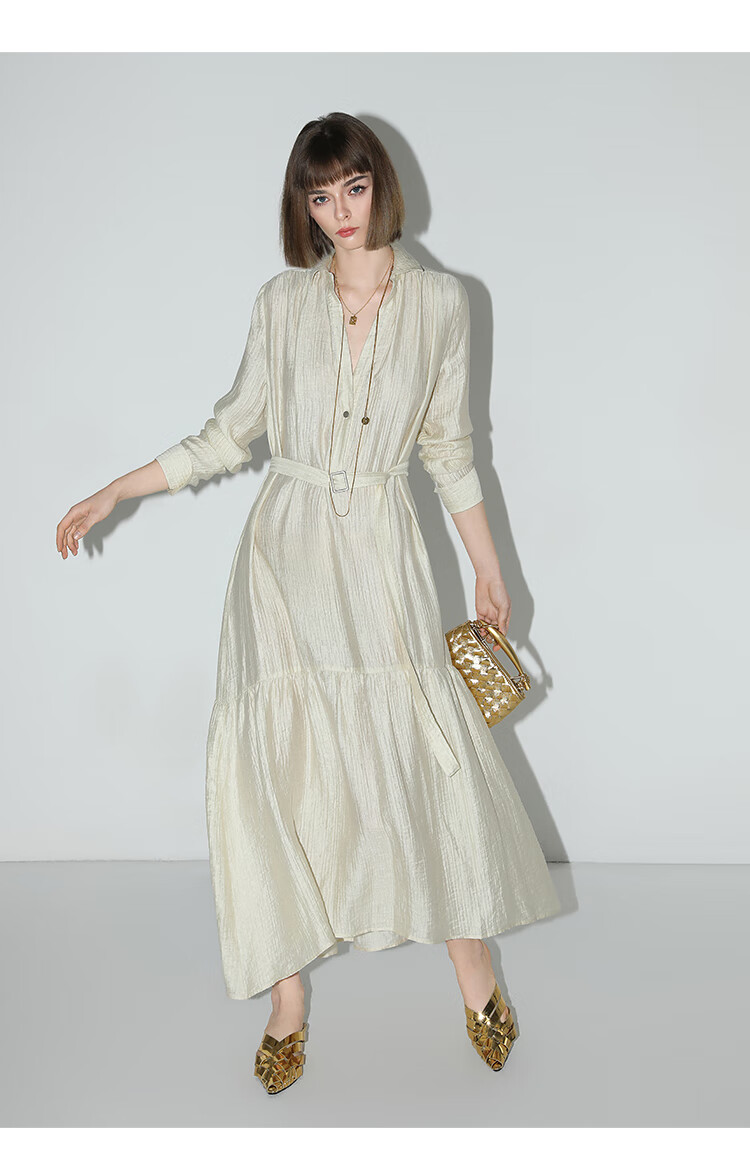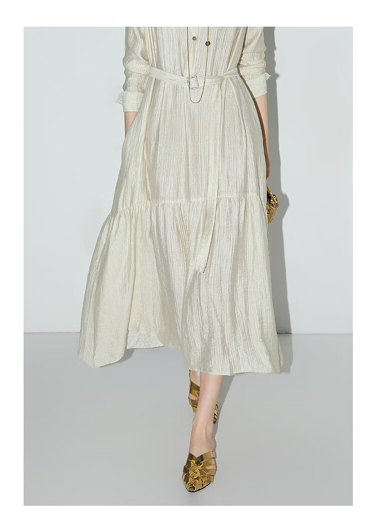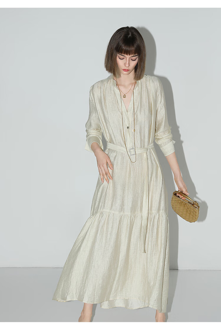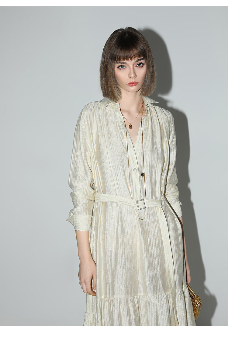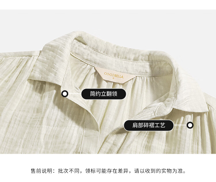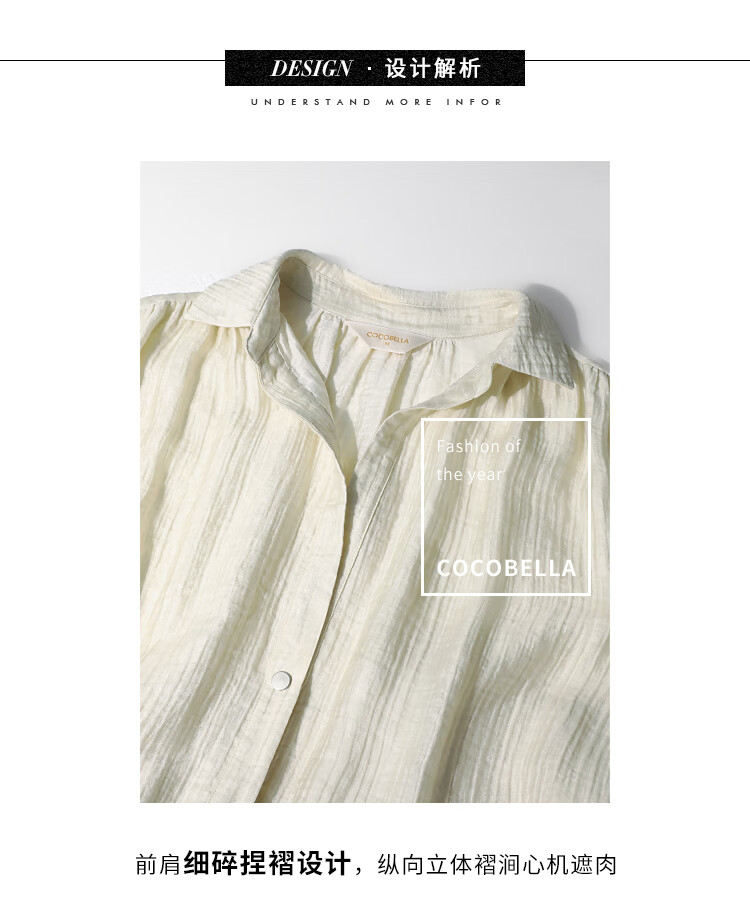 COCOBELLA肌理褶皱莱赛尔连衣裙轻熟女夏气质长袖衬衫裙FR915B