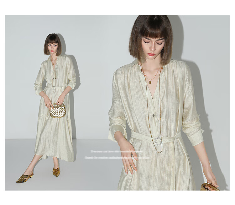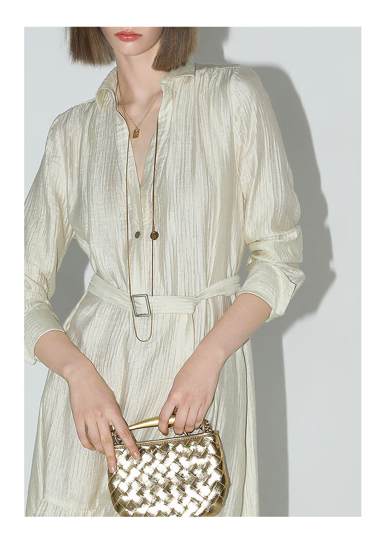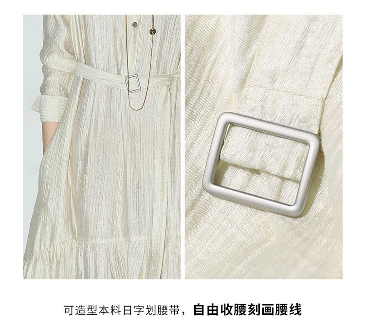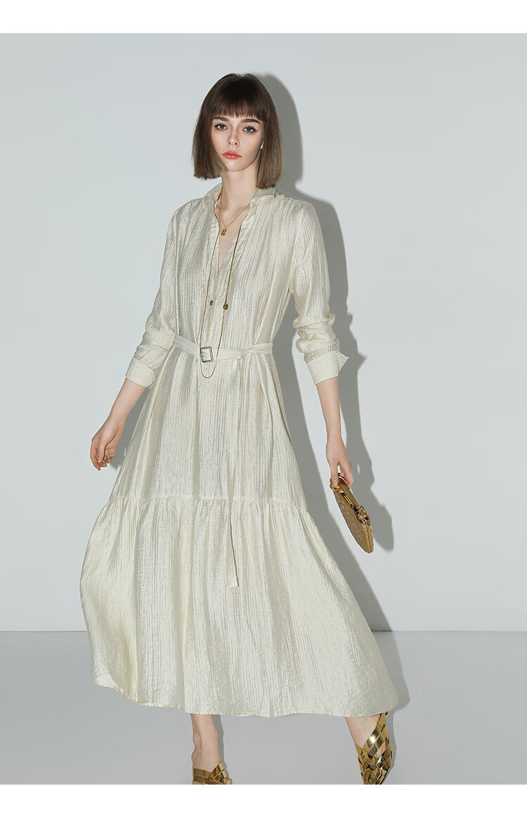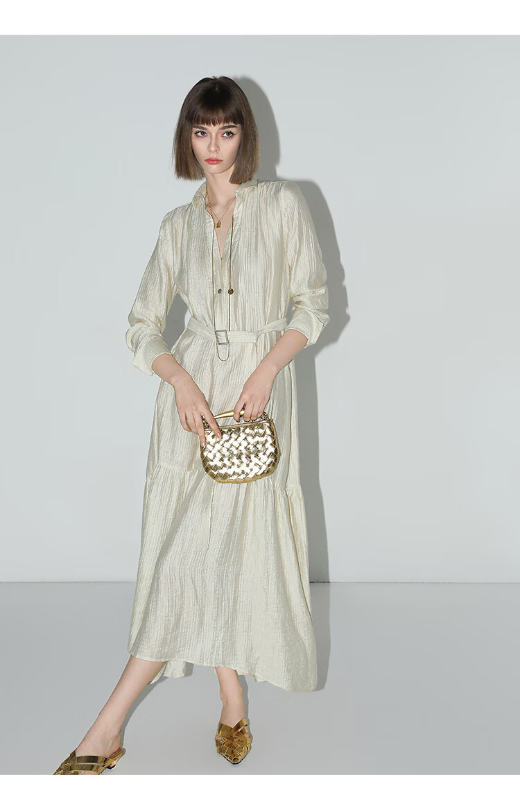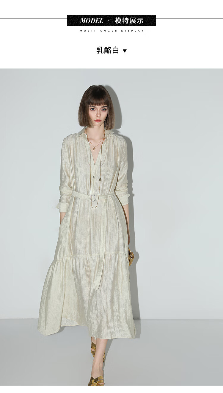 COCOBELLA肌理褶皱莱赛尔连衣裙轻熟女夏气质长袖衬衫裙FR915B