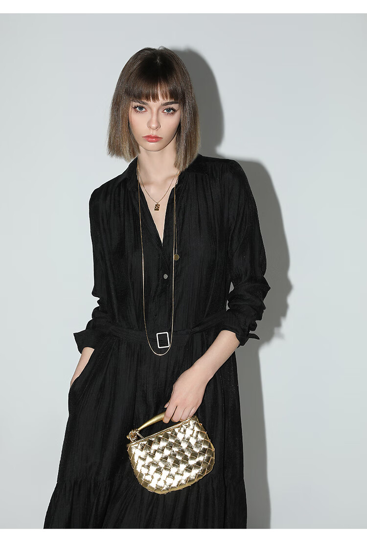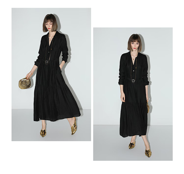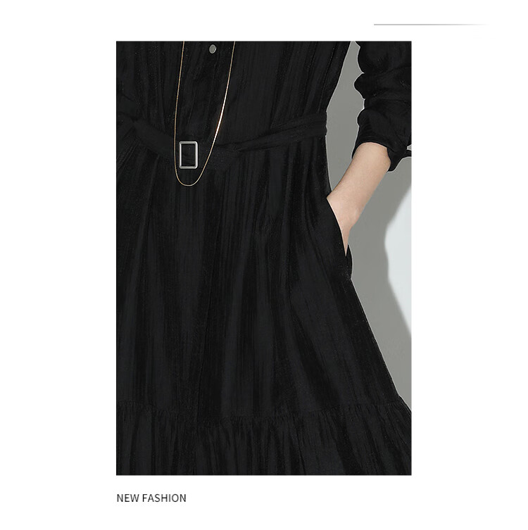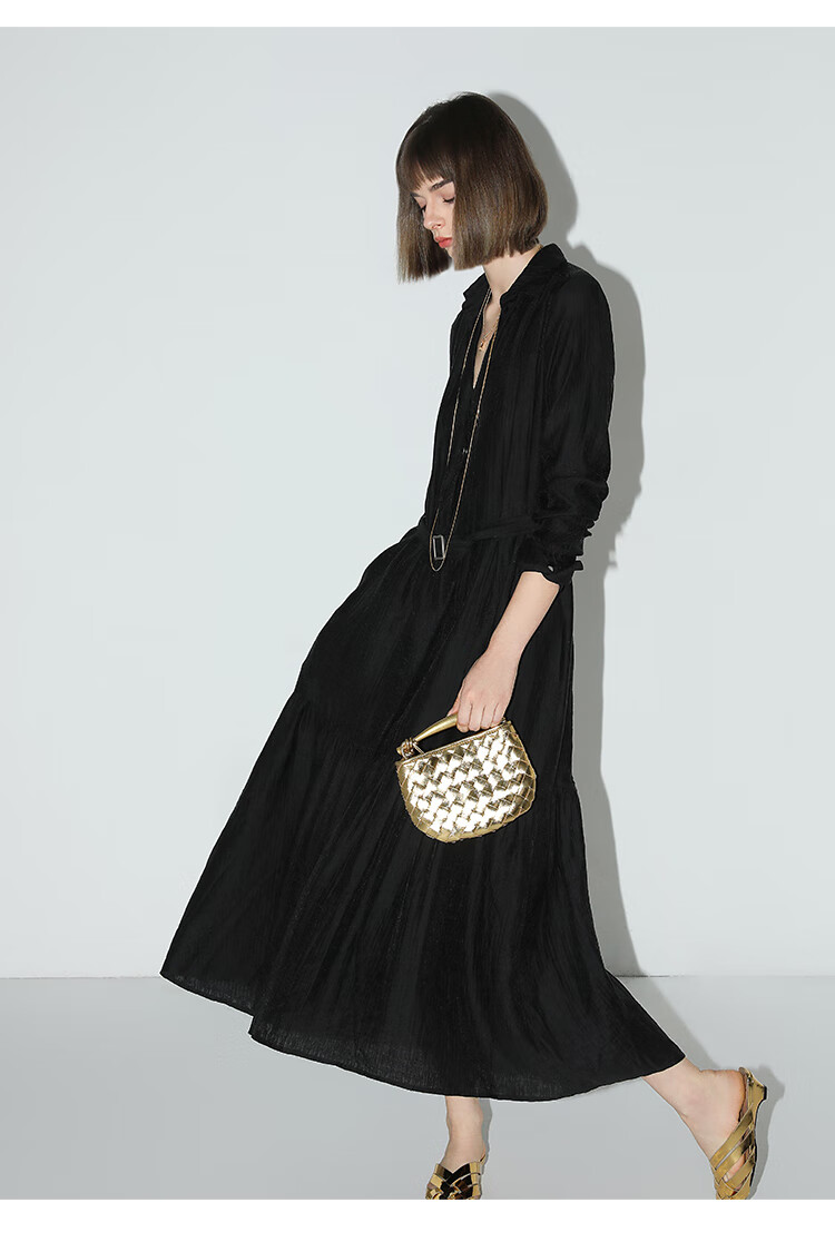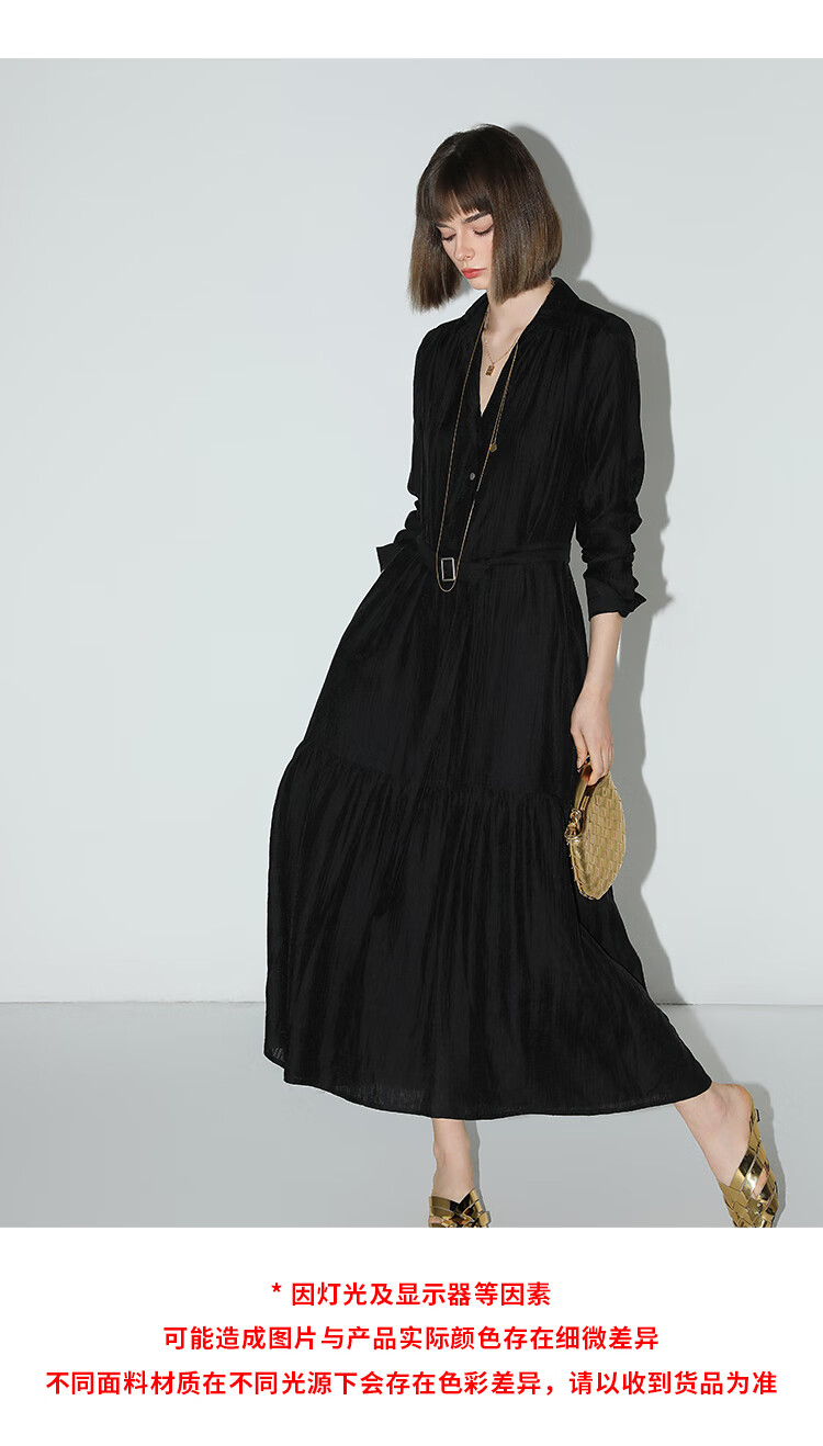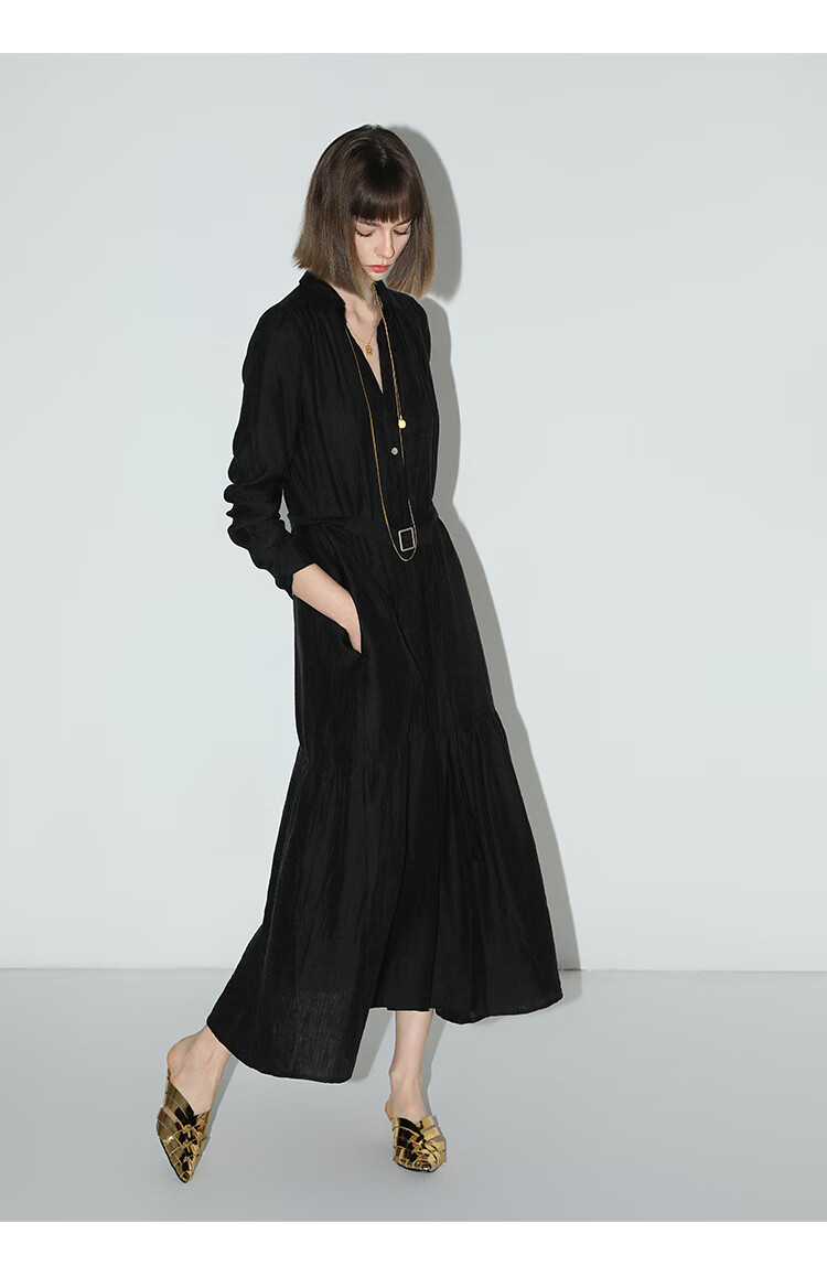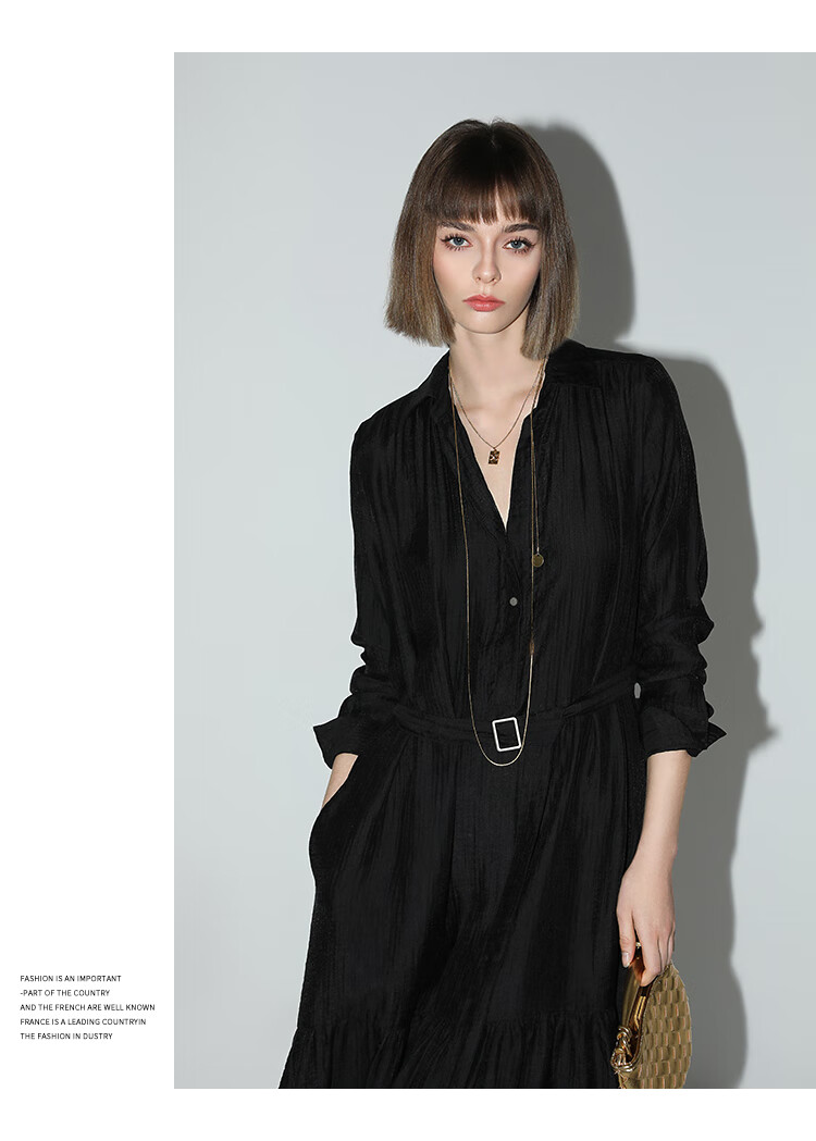 COCOBELLA肌理褶皱莱赛尔连衣裙轻熟女夏气质长袖衬衫裙FR915B