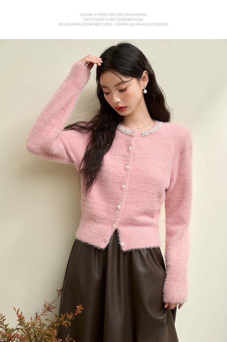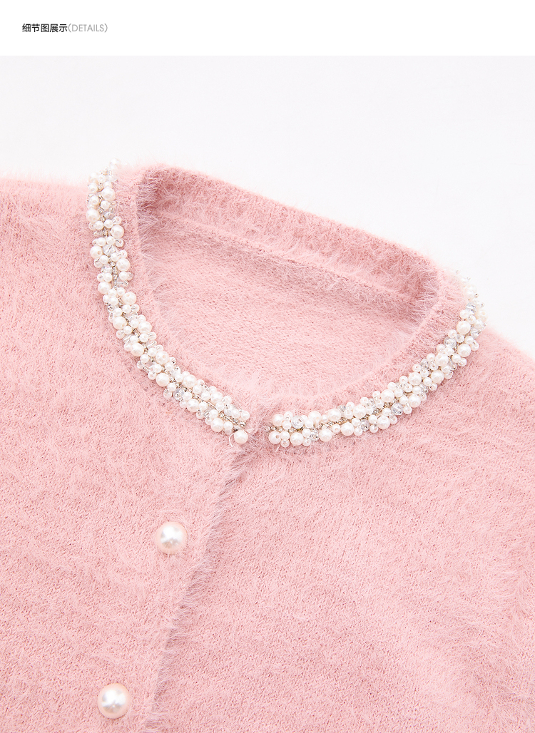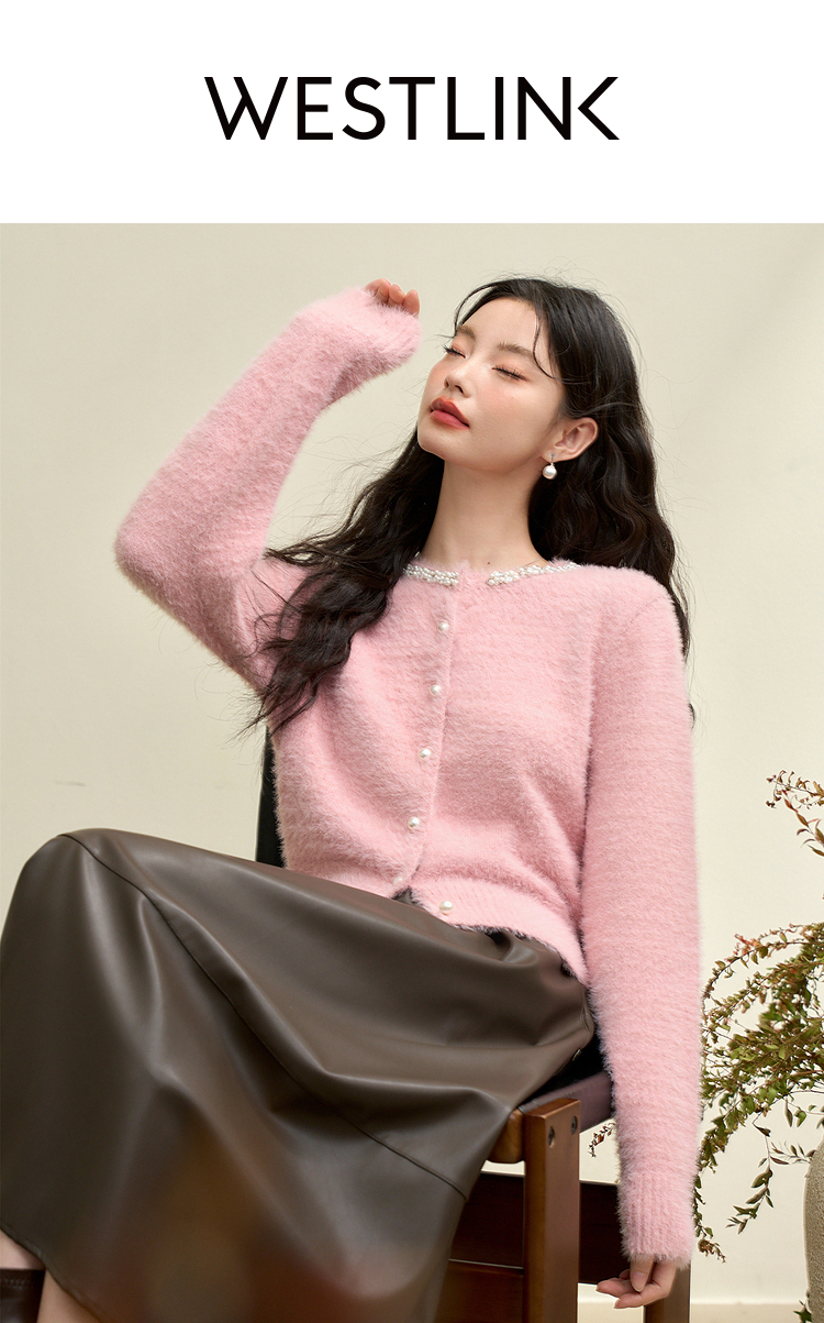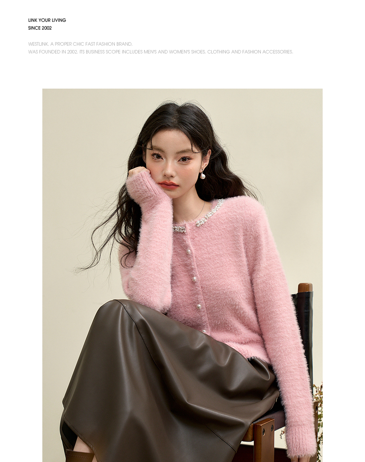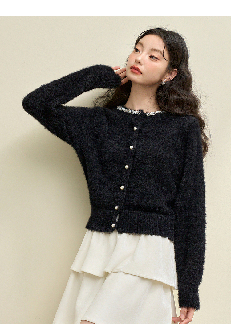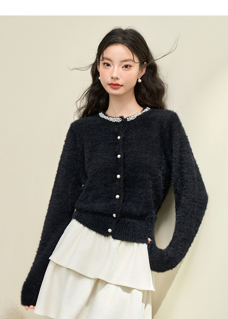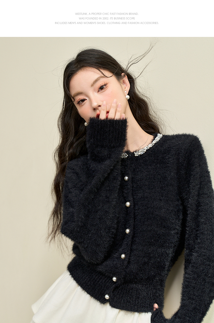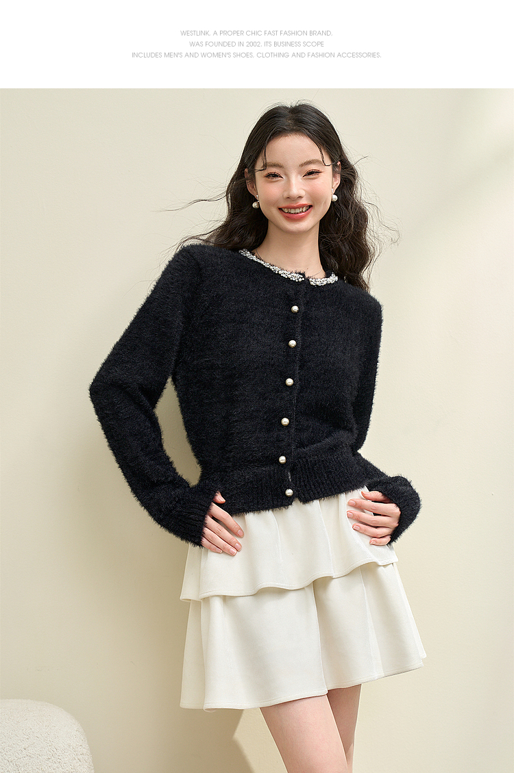 西遇重工镶钻圆领针织开衫女新款千金风高级感毛衣外套14342656