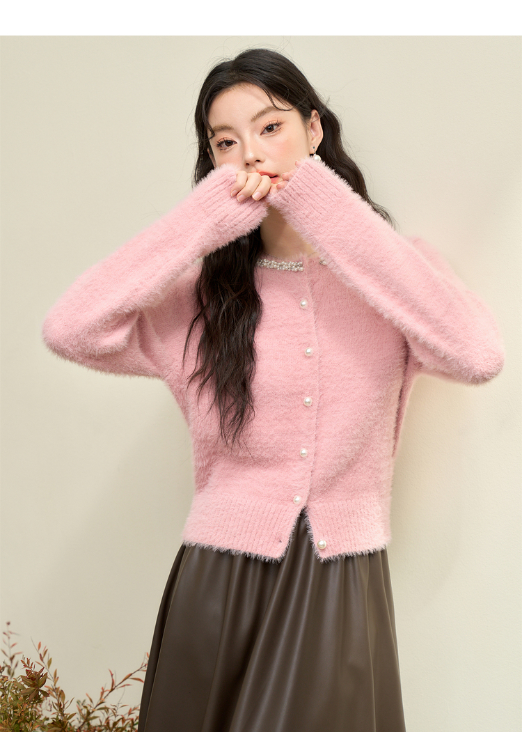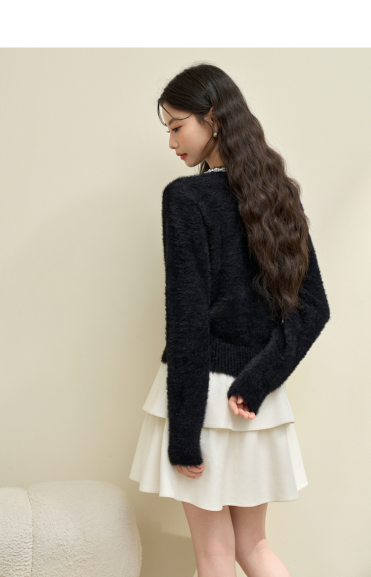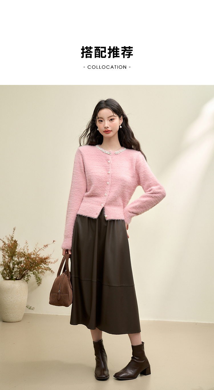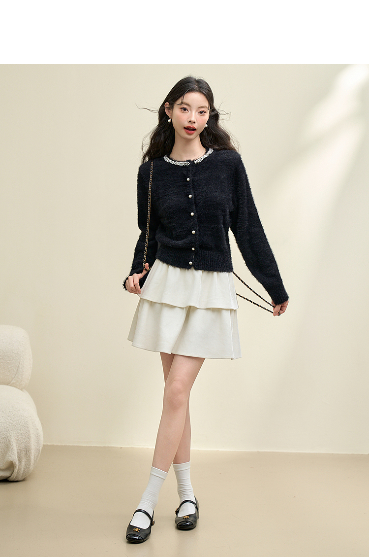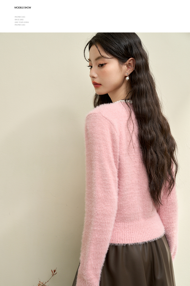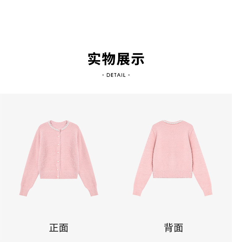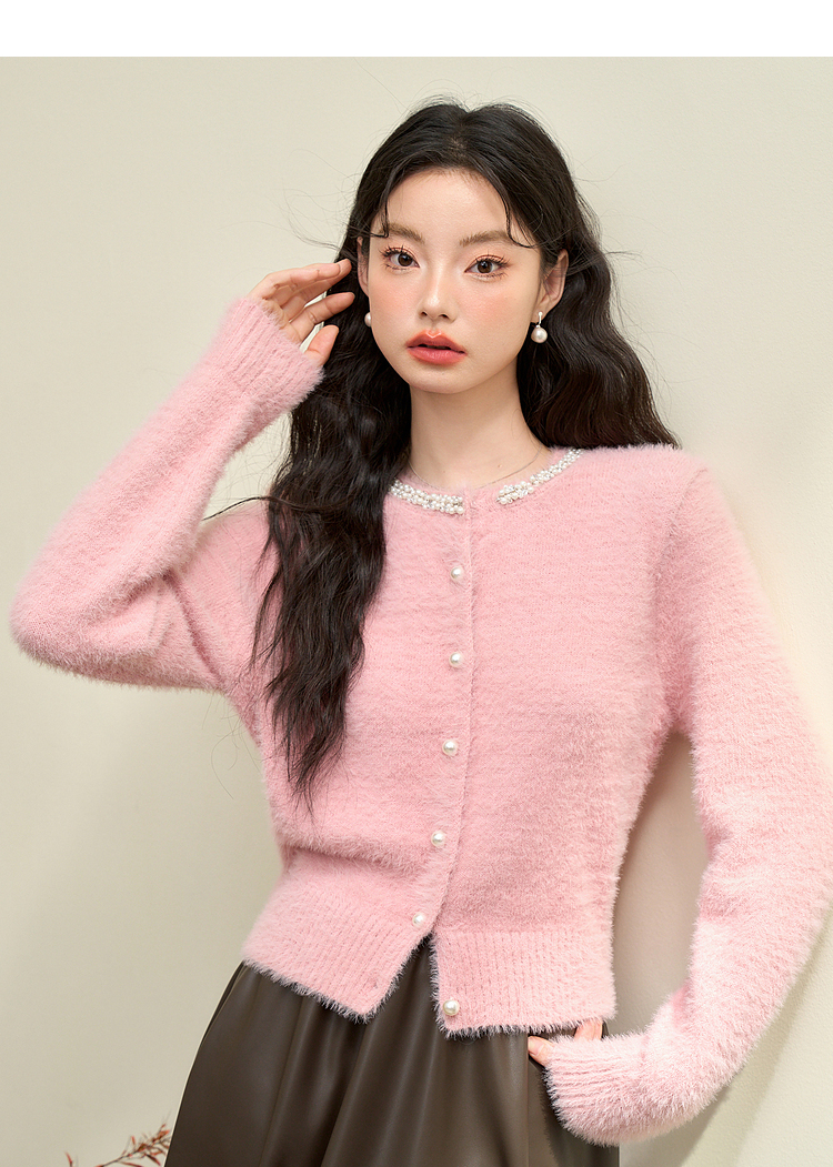 西遇重工镶钻圆领针织开衫女新款千金风高级感毛衣外套14342656